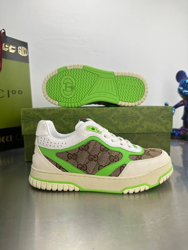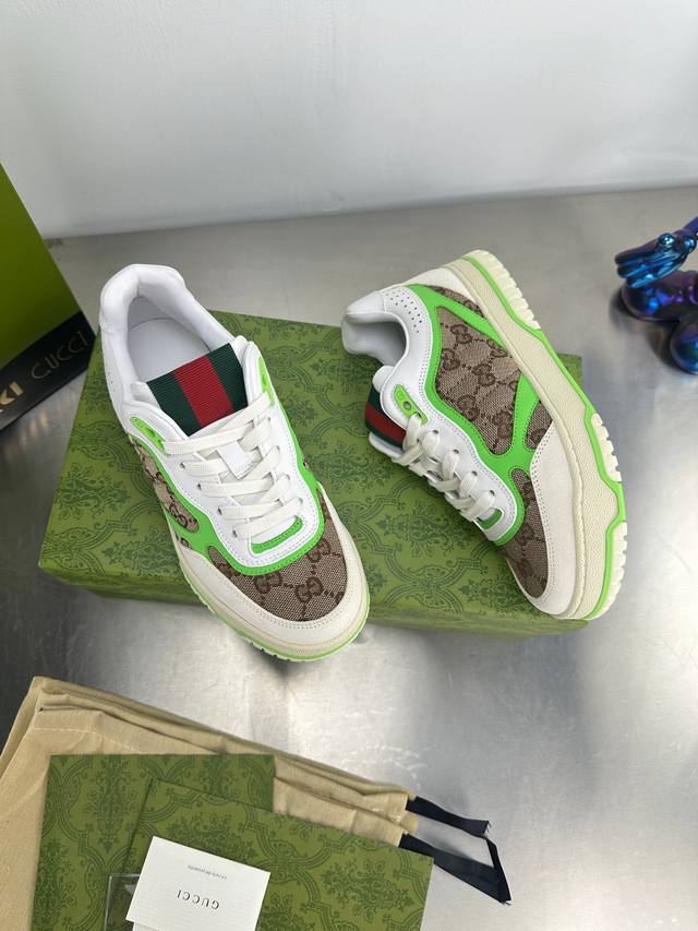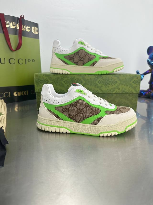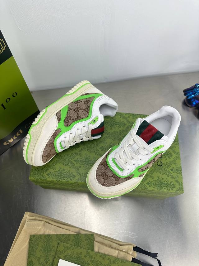 Gucci's latest hot-selling high-top and low-top distressed couple sneakers are now available. These high-top and low-top sneakers feature a basketball-inspired silhouette, cleverly incorporating perforated panels and a distressed effect, showcasing unique craftsmanship. The design incorporates interlocking double-G accessories and Gucci brand logo details, subtly paying homage to the brand's design heritage. Comes with exquisite boutique packaging. Material: Original custom imported top-grain cowhide. Lining: Imported top-grain cowhide. Sole: Original molded TPU sole. Sole thickness: 3cm. Size: Women's 35-41, Men's 38-46, Women's 41, Men's 38-46. Custom orders accepted.