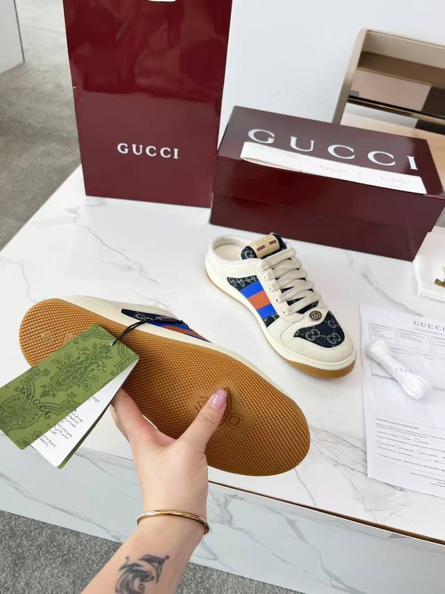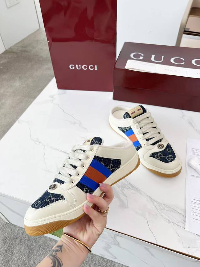 Gucci's new mules are a classic retro classic, incredibly beautiful and versatile! The terry lining is soft and comfortable, and the red and green stripes on the sides are cleverly embellished with the vintage Gucci logo. The half-slip on slip-on design is easy to put on and take off, bringing a sense of lazy summer style. Women's sizes are 35-40. Men's sizes are 39-44.