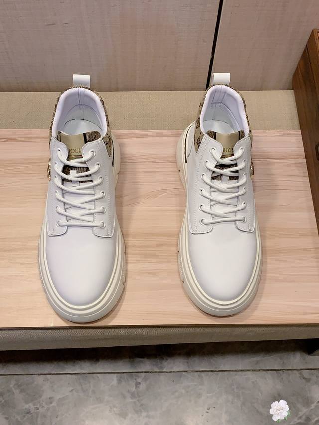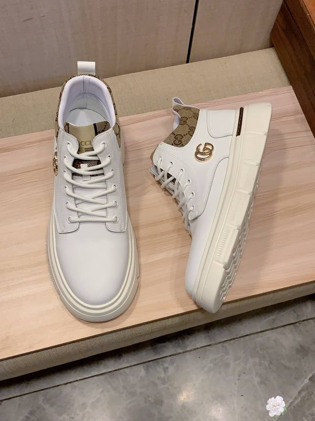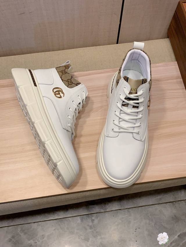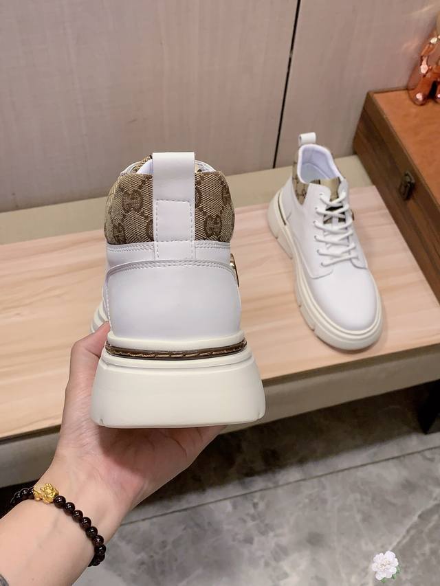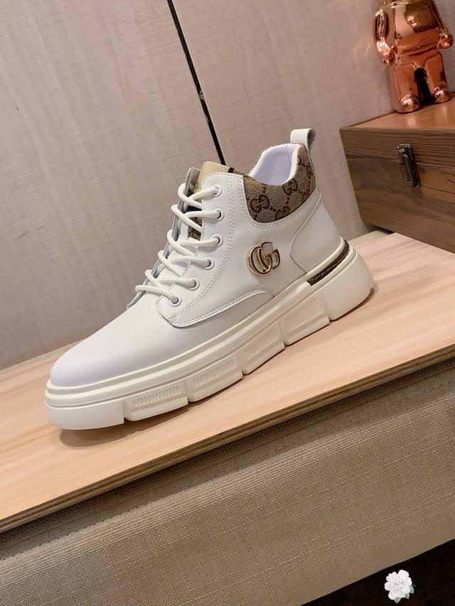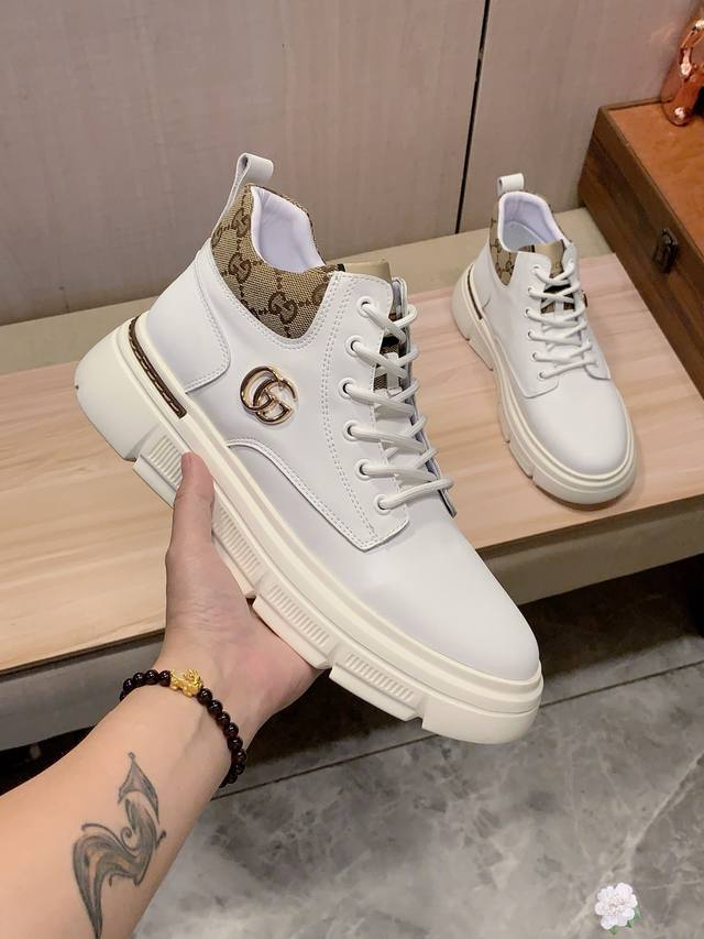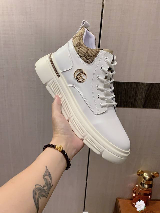 High-top New Arrival: Factory direct Gucci* latest hot-selling casual shoes, top-tier luxury brand~ top-quality import. The upper is made of imported breathable cowhide paired with a breathable sheepskin insole with exquisite workmanship. Original design, stylish and soft rubber outsole, wear-resistant and non-slip, lightweight and comfortable on the foot. Actual product photos show even better! Sizes: 38-44, 2 colors available.