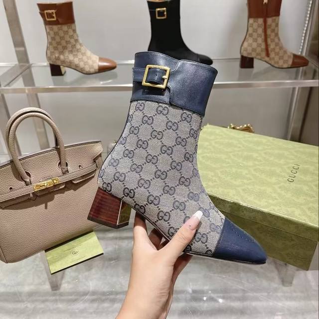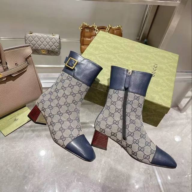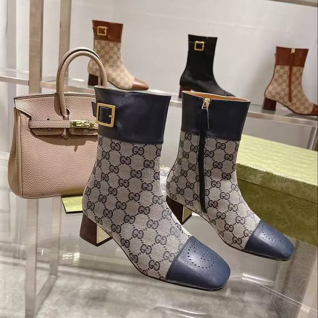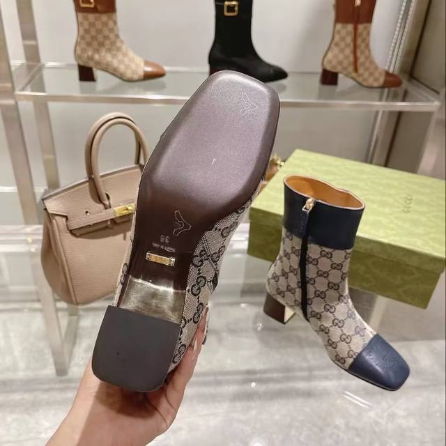 Long-term stock available. Gucci's trendy and popular style cleverly utilizes a square toe and other design elements for a fashionable look. Material: Embroidered patchwork grained cowhide, imported mixed sheepskin. Lining: Imported sheepskin insole. Heel height: 5cm. Italian genuine leather outsole, 1:1 production. Sizes: 35, 42. Notes: 40, 41, 42 are custom-made. Factory direct.