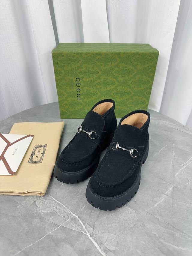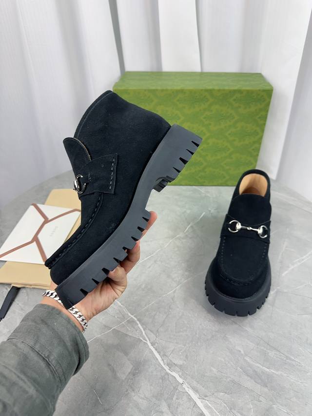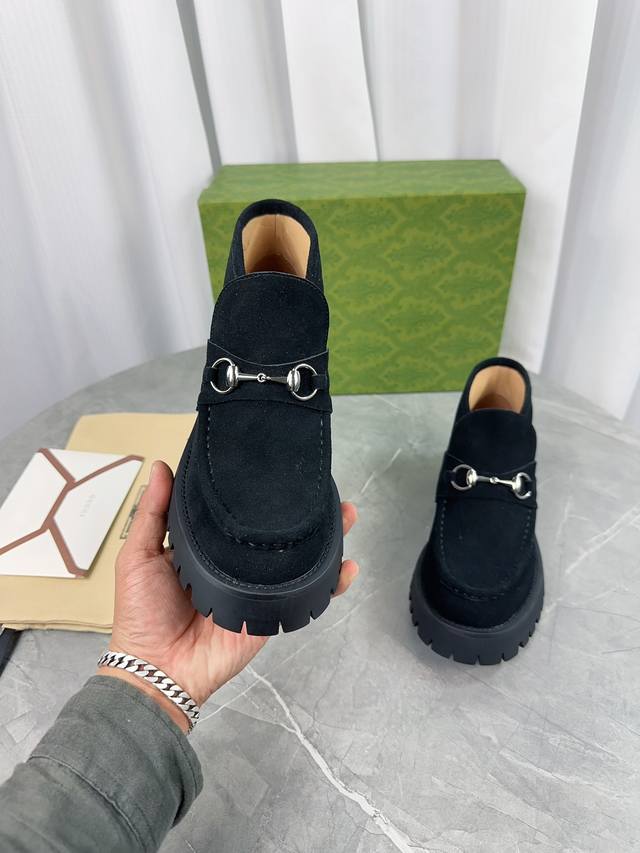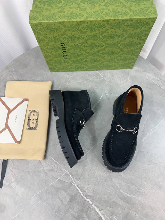 New Gucci platform loafers with double GG grooves. 1:1 replica of the original. Superb quality, classic boutique style. Upper: Original split-edge cowhide; Lining: Water-dyed cowhide; Insole: Water-dyed cowhide; Outsole: Ultra-light original sole; Platform heel: 3.5cm; Packaging: Original packaging; Sizes: 35-42, 41, 41 (Custom orders are non-refundable); Men's sizes: 38-46, 45, 46 (Custom orders are non-refundable).