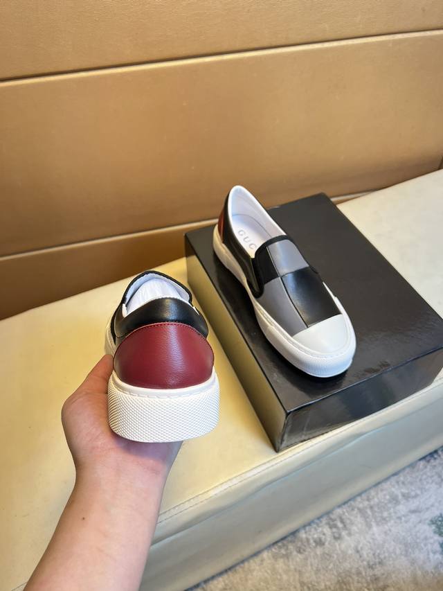 p Original Gucci quality. ~ Unique modern sneakers. A must-have for trendy casual men. Imported from Italy, this brand features imported leather and pig lining to prevent fading and rubbing. The sole is made exclusively from the original manufacturer, with a French, relaxed-style design that fits snugly and creates a super comfortable, original feel. The photos are just like the real thing, and the real thing is even better. High-quality sneakers available in men's sizes: 38-44