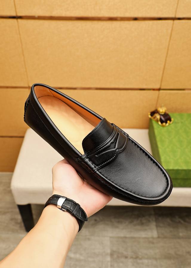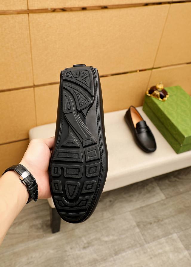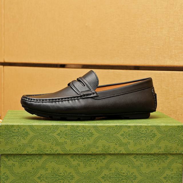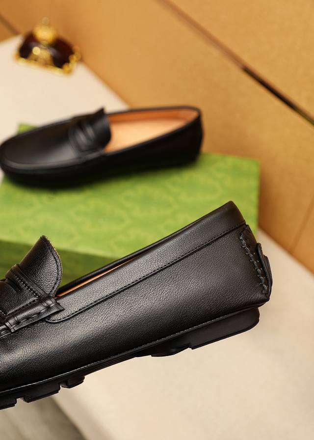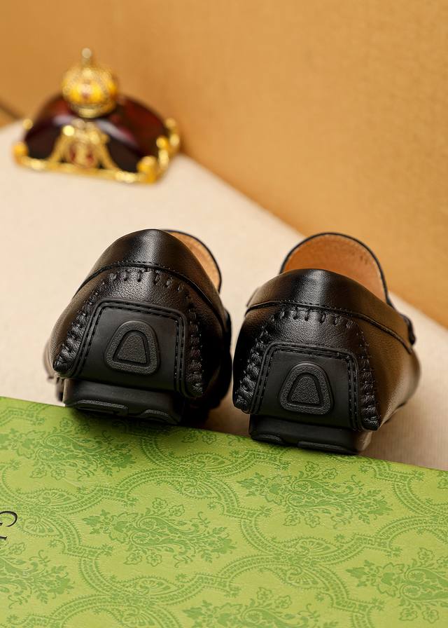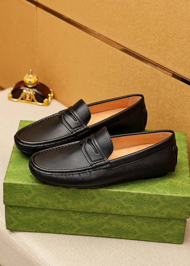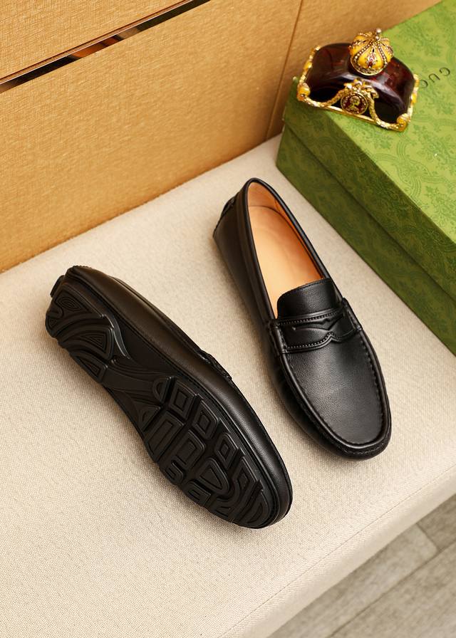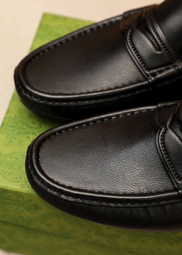 Product Brand: Gucci Driving Shoes True to Size: 38-44, 37, 45, 46 (Custom Made) Materials: Selected top-grain lychee-textured cowhide upper, imported pigskin lining. Strong 3D visual effect, rubber outsole. Colors: 3 colors available.