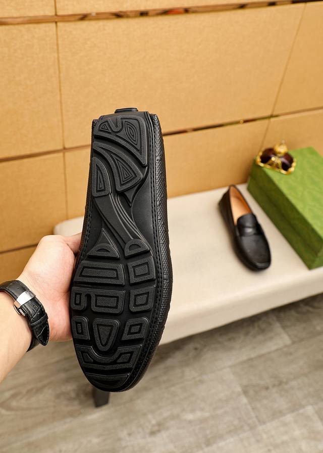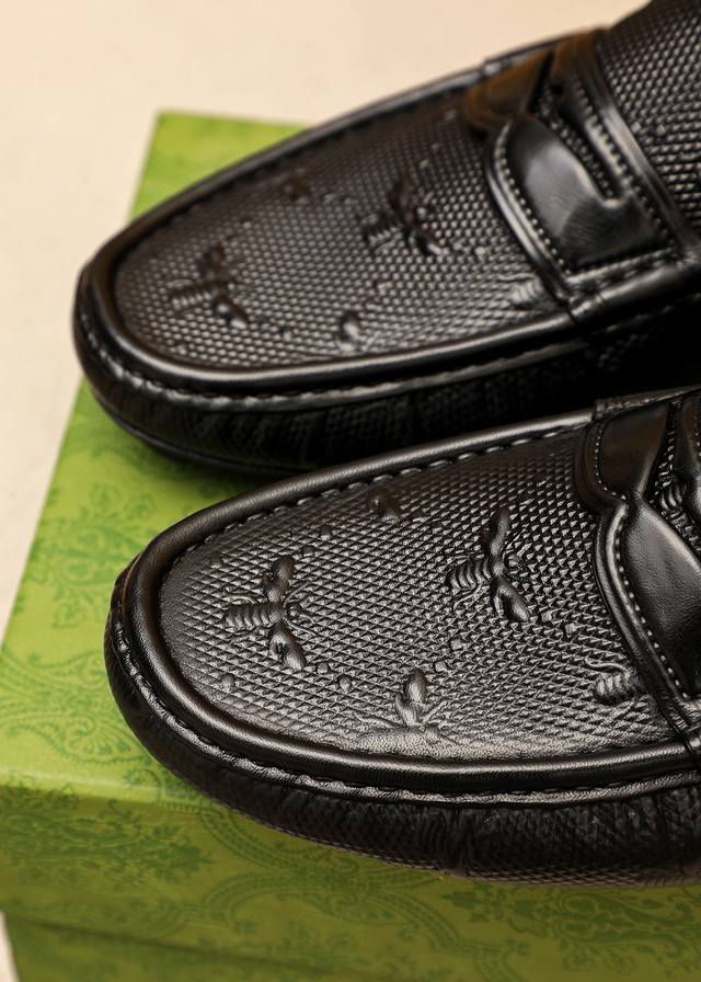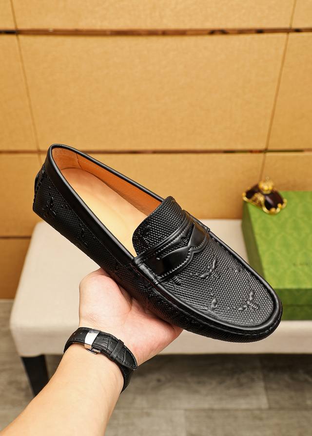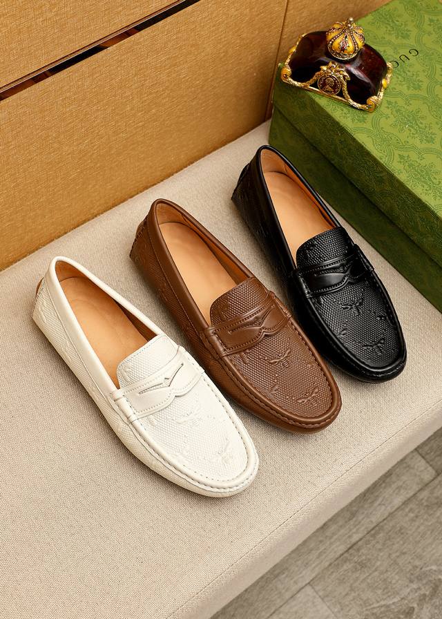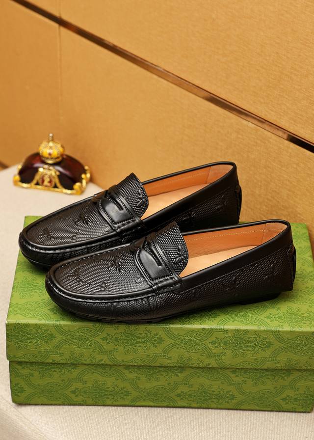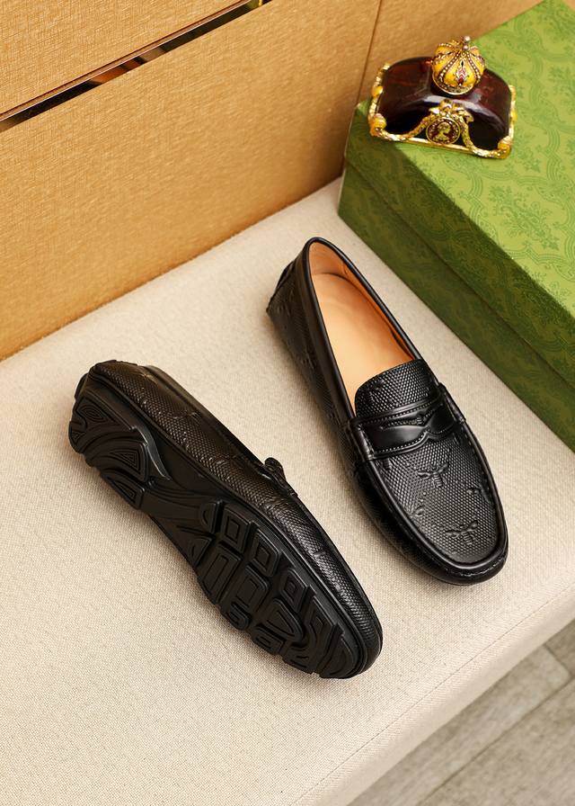 Product Brand: Gucci Driving Shoes True to Size: 38-44, 37, 45, 46 (Custom Made) Materials: Selected imported top-grain calfskin embossed upper, imported pigskin lining. Strong 3D visual effect, rubber outsole. Colors: 3 colors available.