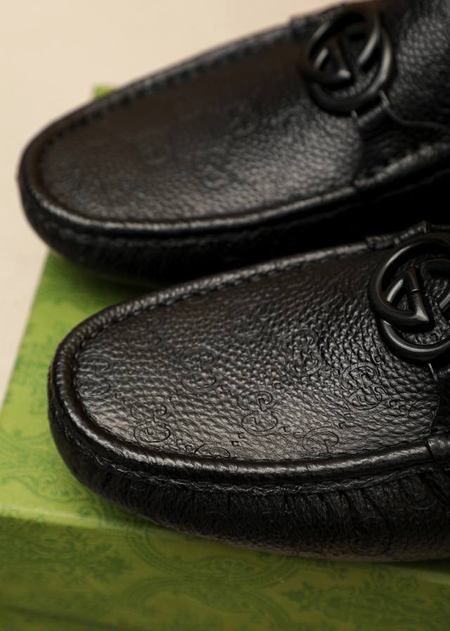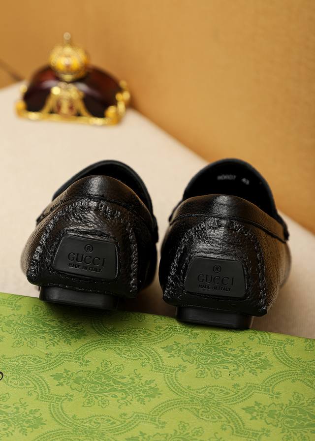 Product Brand: Gucci Driving Shoes True to Size: 38-44, 45 (Custom Made) Materials: Selected imported top-grain calfskin embossed upper + luxurious hardware buckles, imported sheepskin lining. Strong three-dimensional visual effect, original outsole. Colors: 2 colors available.