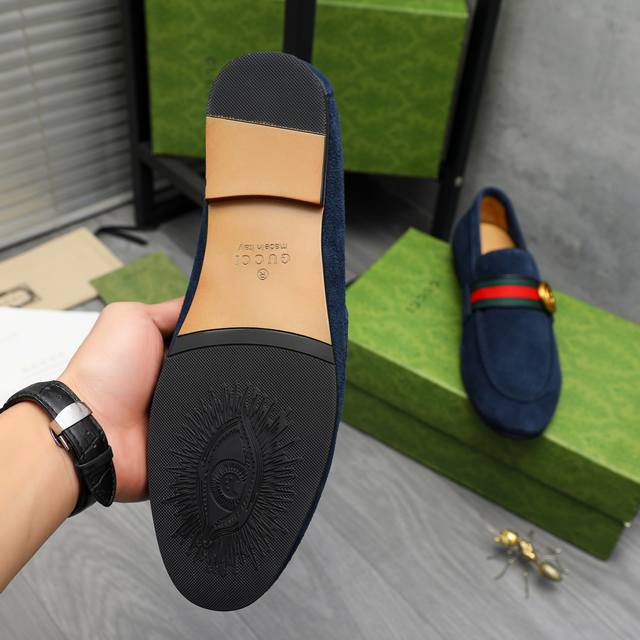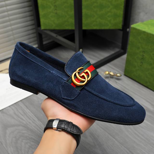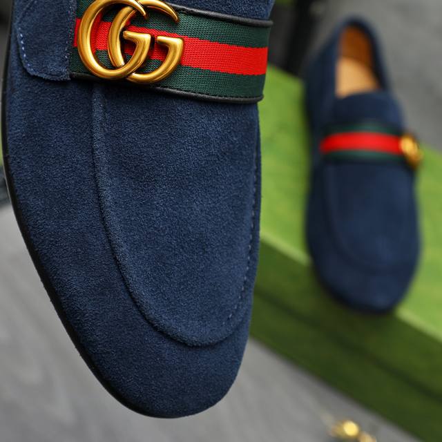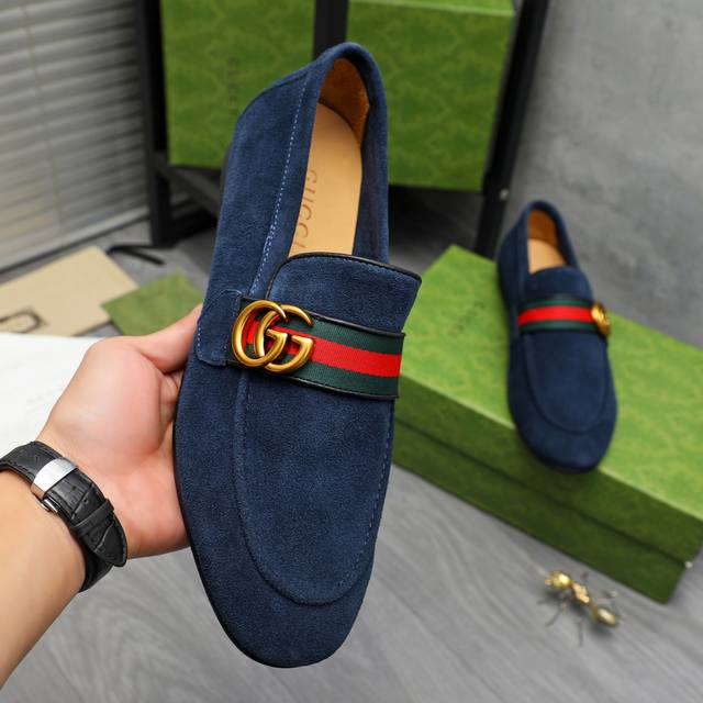 Product Trademark: Gucci Business Casual Leather Shoes True to Size: 38-46 38, 45, 46 are custom-made and non-refundable. Product Material: Selected suede cowhide upper with webbing, cowhide lining, original rubber outsole.