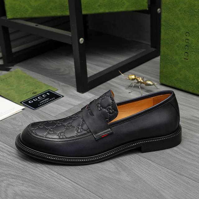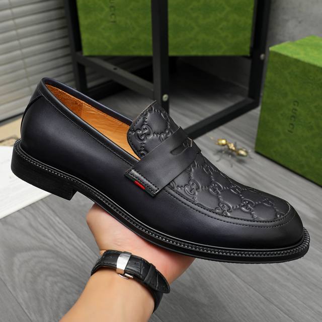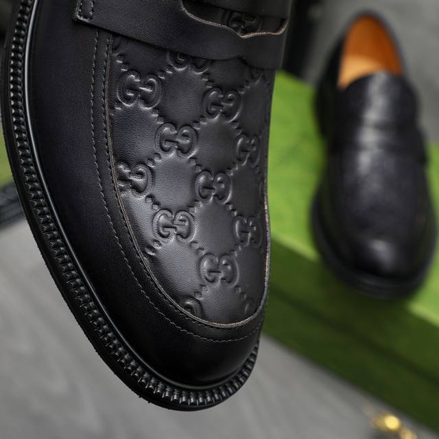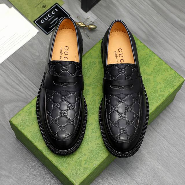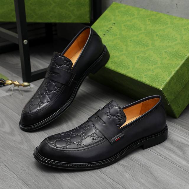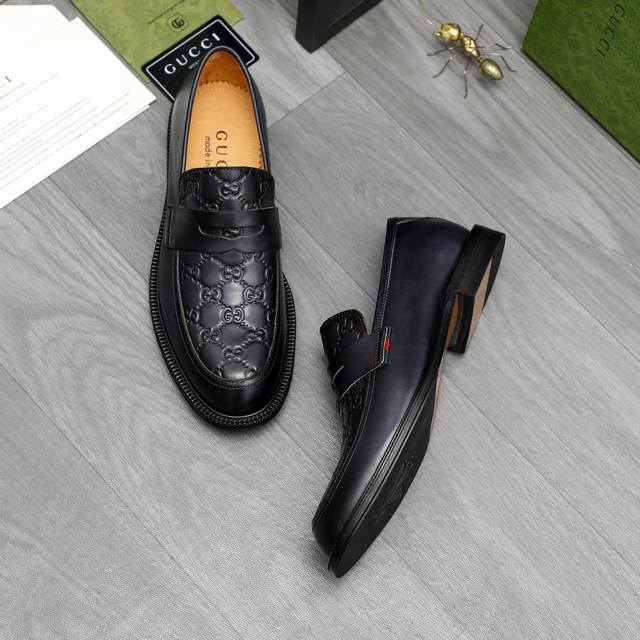 Product Trademark: Gucci Business Slip-on Leather Shoes True to Size: 38-46 38, 45, 46 Custom orders are non-refundable/non-exchangeable Material: Selected cowhide embossed upper, cowhide lining, original rubber outsole