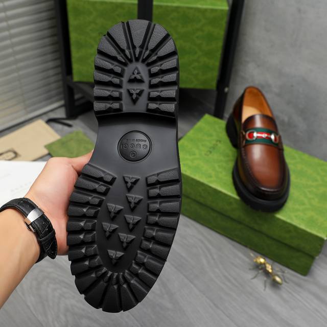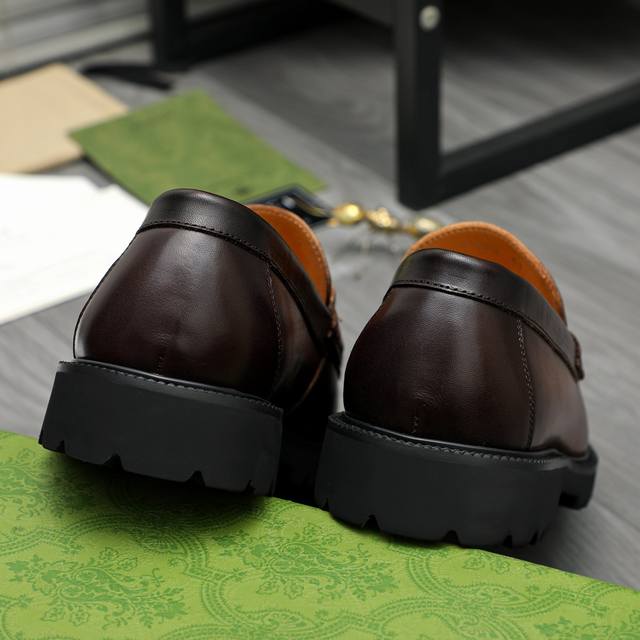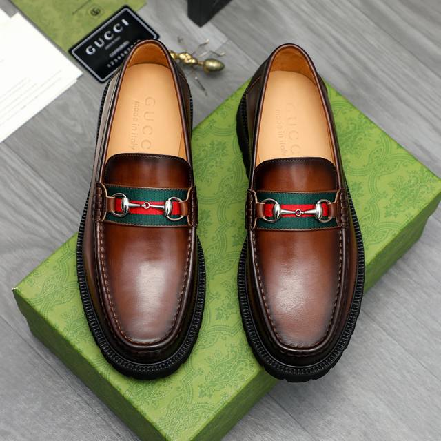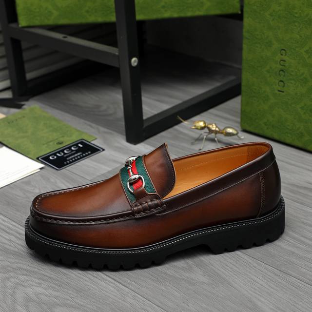 Product Trademark: Gucci Business Slip-on Leather Shoes True to Size: 38-46 38, 45, 46 are custom-made and non- refundable . Material: Selected distressed cowhide upper, cowhide lining, non-slip rubber outsole.