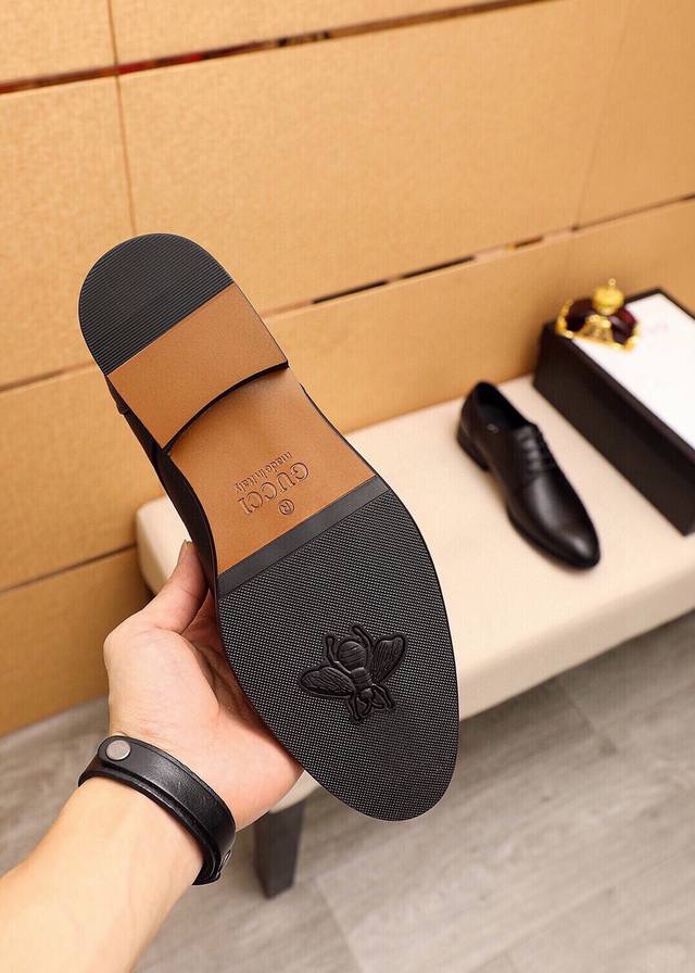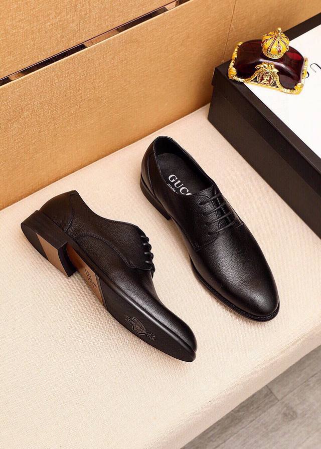 Product Trademark: Gucci Casual Business Leather Shoes DDD True Sizes: 39-44, 38, 45, 46 (Custom Made) DDD Product Materials: Selected imported top-grain lychee-textured calfskin upper, imported sheepskin lining. Strong three-dimensional visual effect, original combination outsole DDD Colors: 1 color available DDD