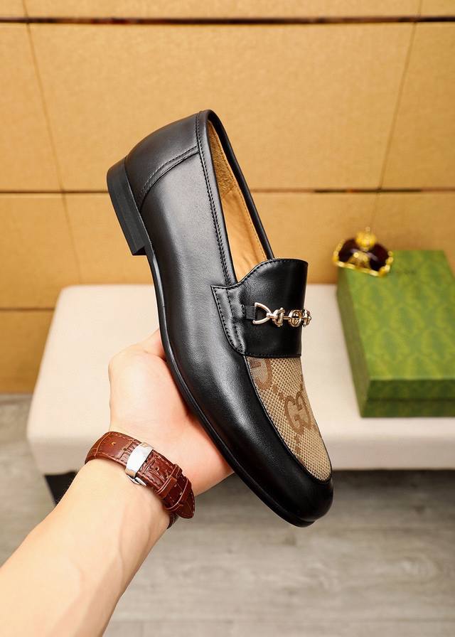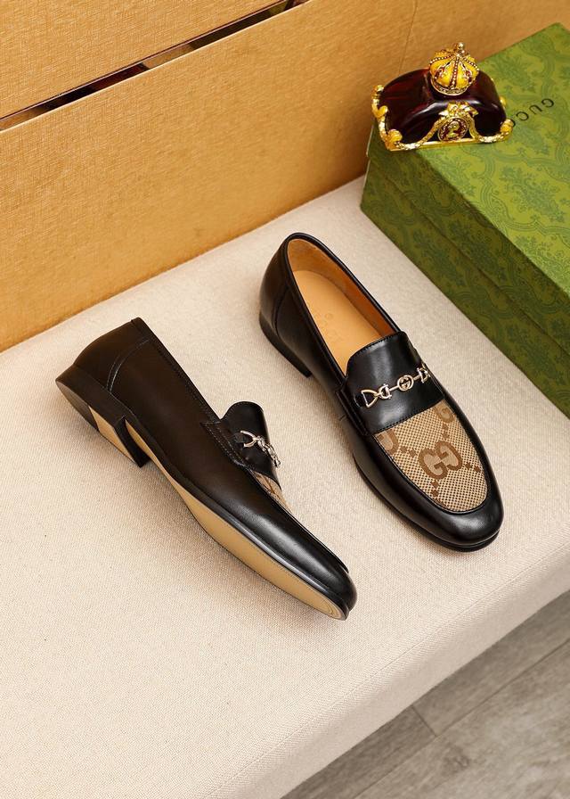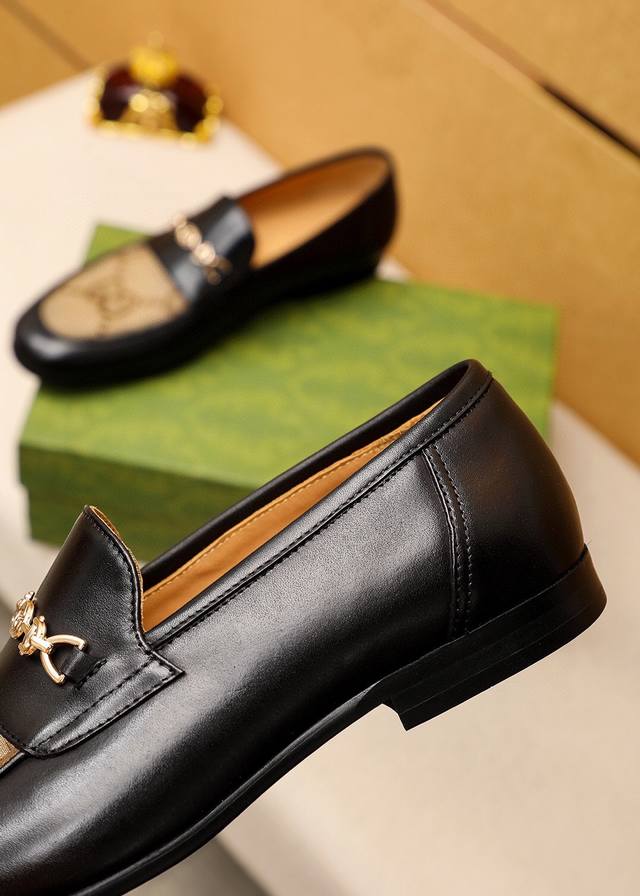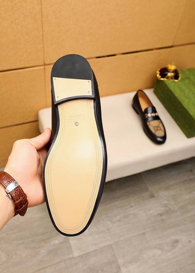 Product Trademark: Gucci Casual Leather Shoes DDD True Sizes: 38-44, 45 (Custom Made) DDD Product Materials: Selected imported top-grain calfskin upper + classic hardware buckles, imported water-dyed cowhide lining. Strong three-dimensional visual effect, original combination outsole DDD Colors: 2 colors available DDD