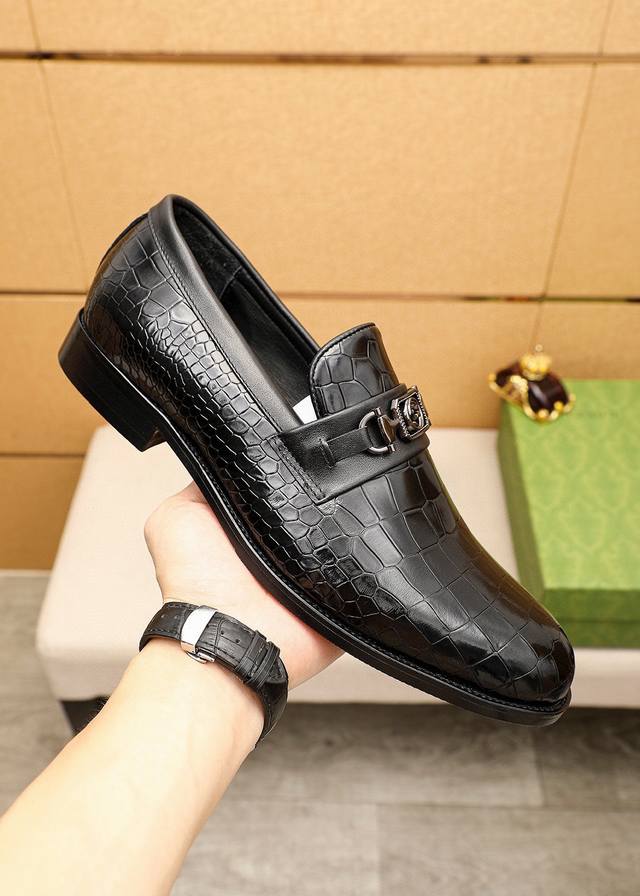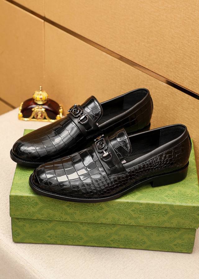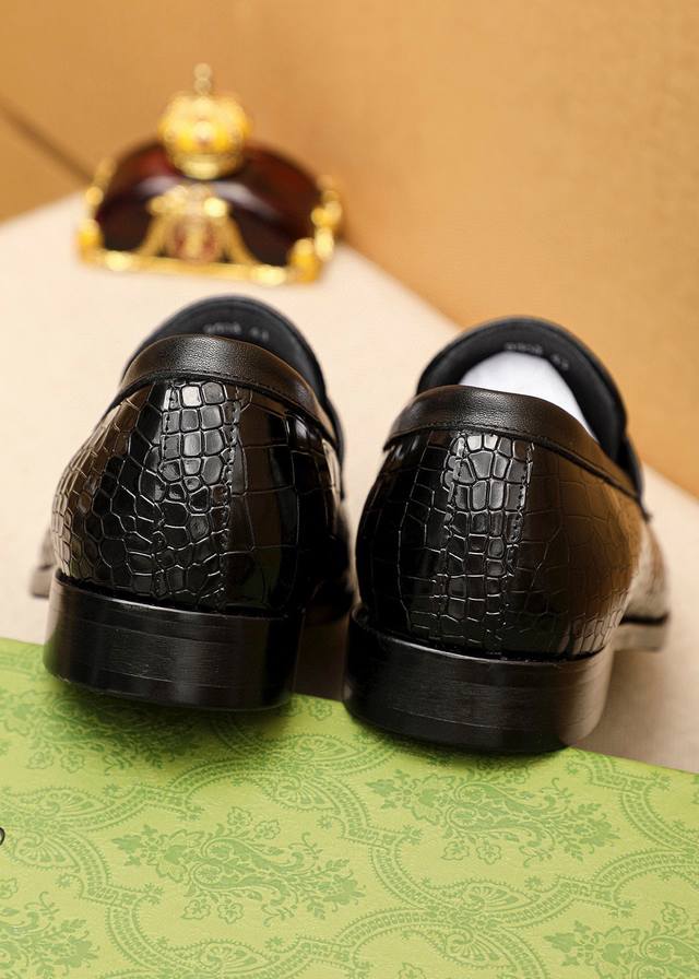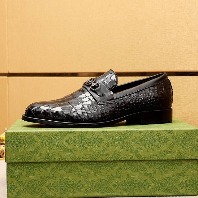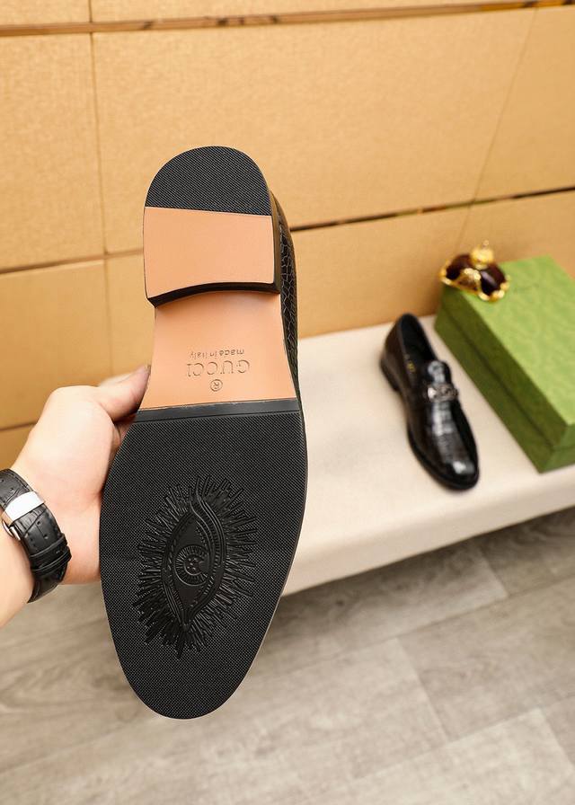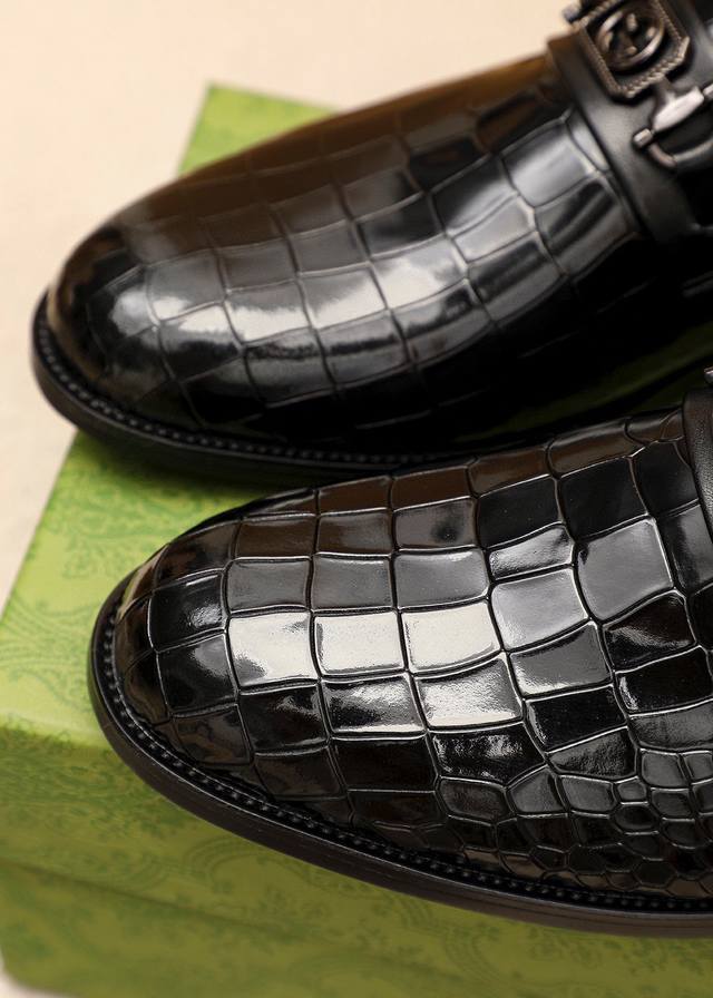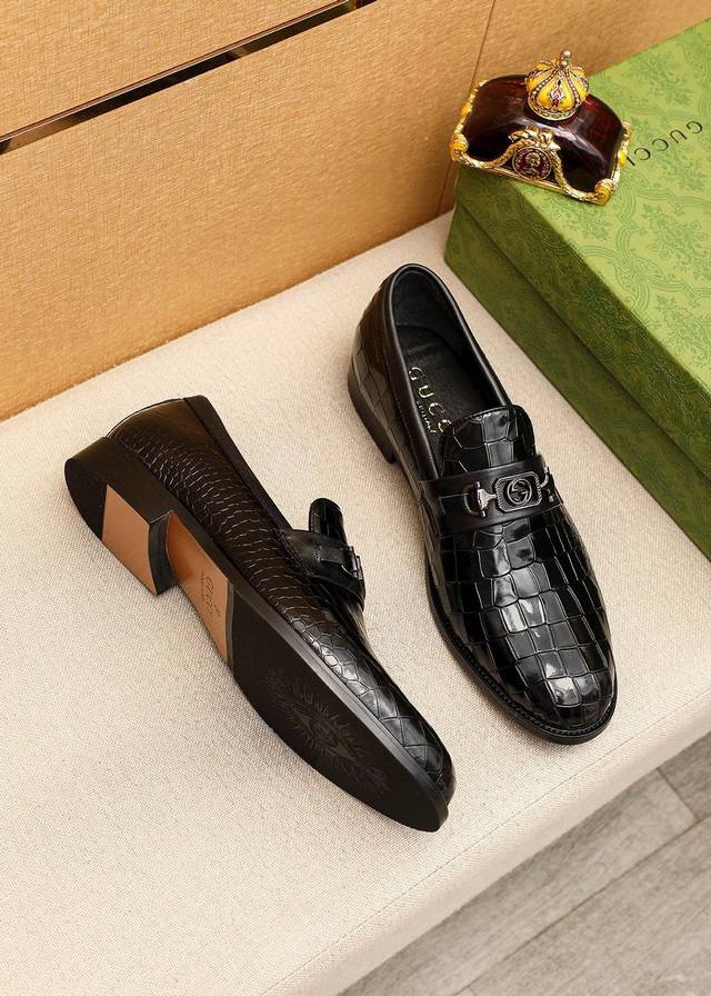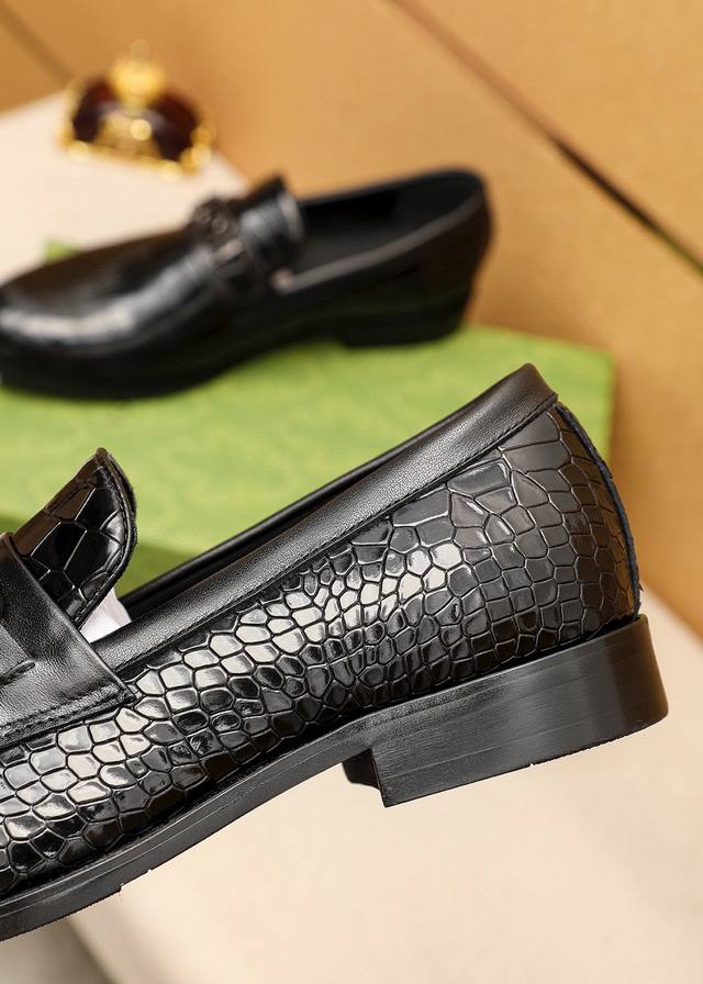 Product Trademark: Gucci Casual Leather Shoes DDD True Sizes: 38-44, 45-46 (Custom Made) DDD Product Materials: Selected imported top-grain split-edge embossed cowhide upper + luxurious hardware buckles, imported water-dyed cowhide lining. Strong three-dimensional visual effect, combination outsole DDD Colors: 1 color available DDD