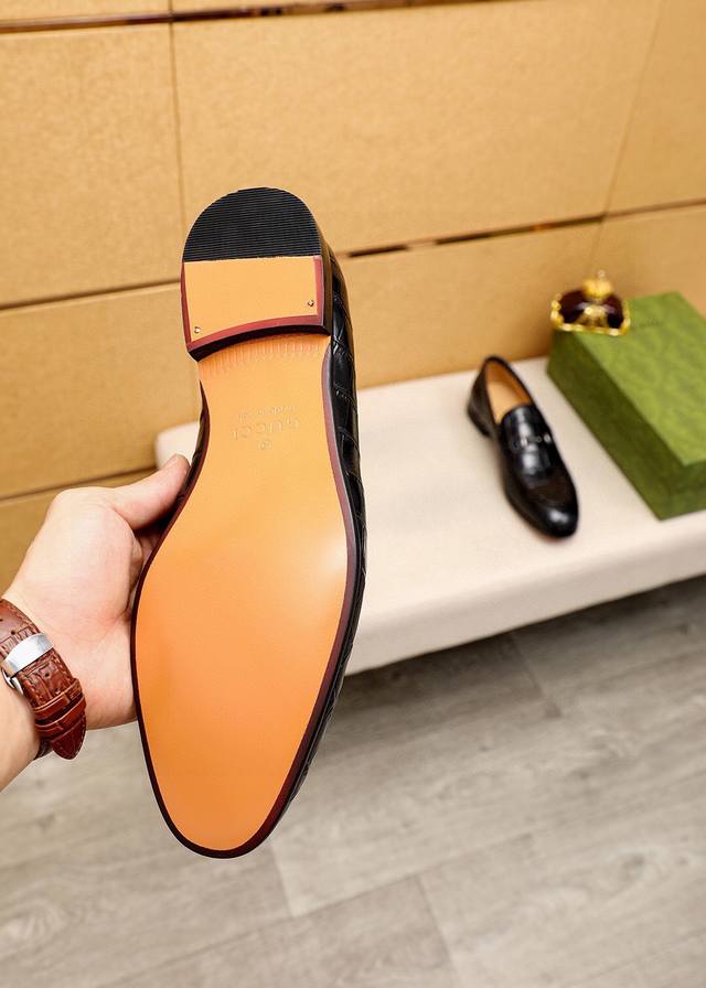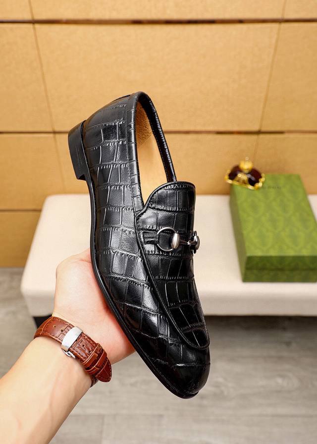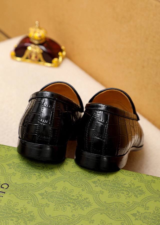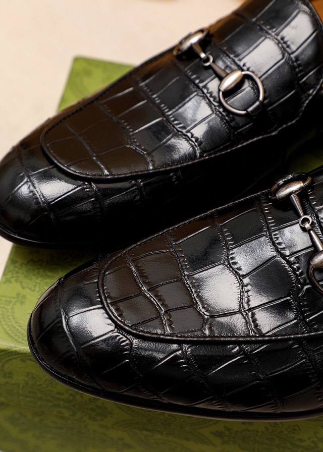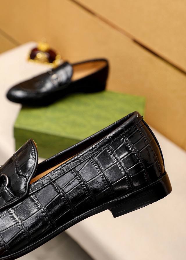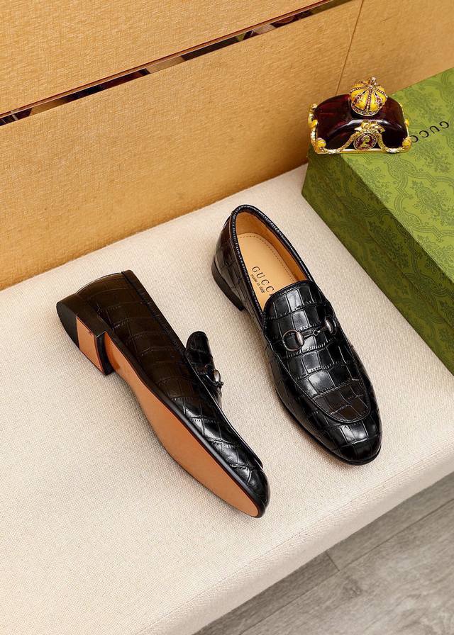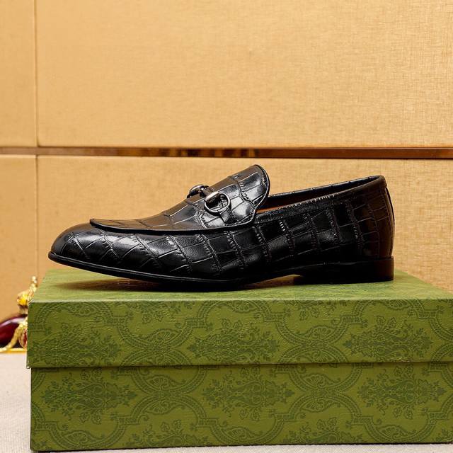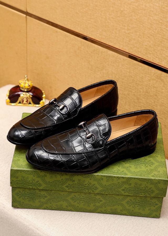 Product Trademark: Gucci Casual Leather Shoes True to Size: 38-44, 45, 46, 47 (Custom Made) Materials: Selected imported top-grain calfskin embossed upper + classic hardware buckles, imported cowhide lining. Strong three-dimensional visual effect, original combination outsole. Colors: 2 colors available.