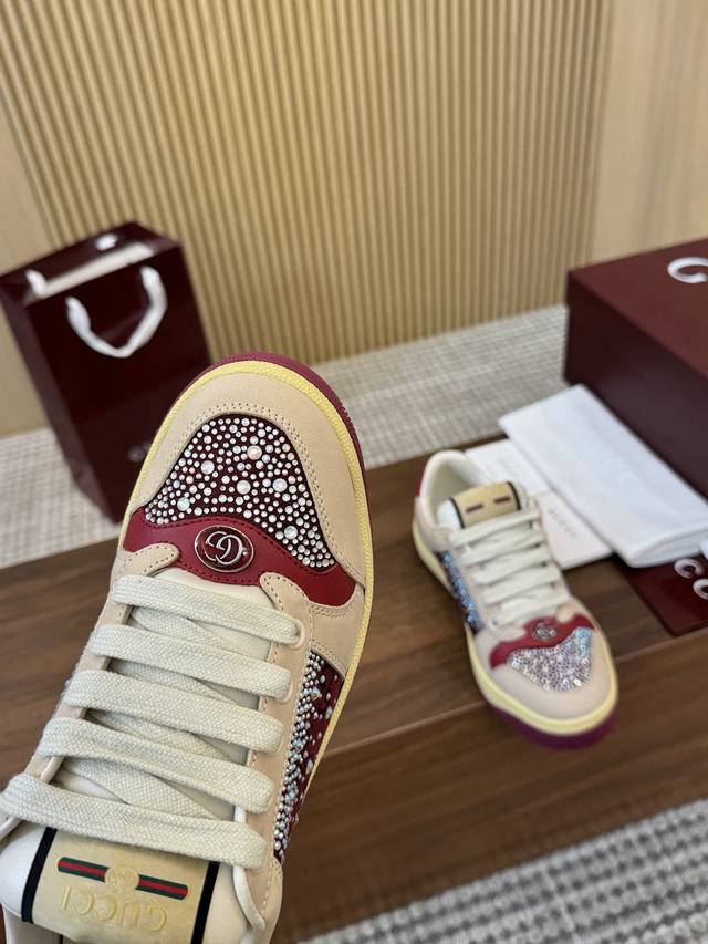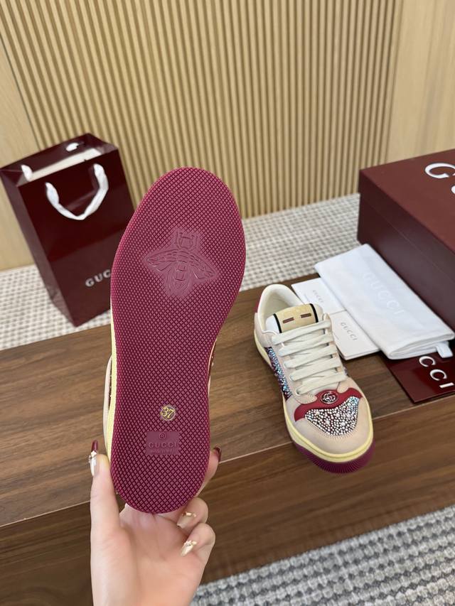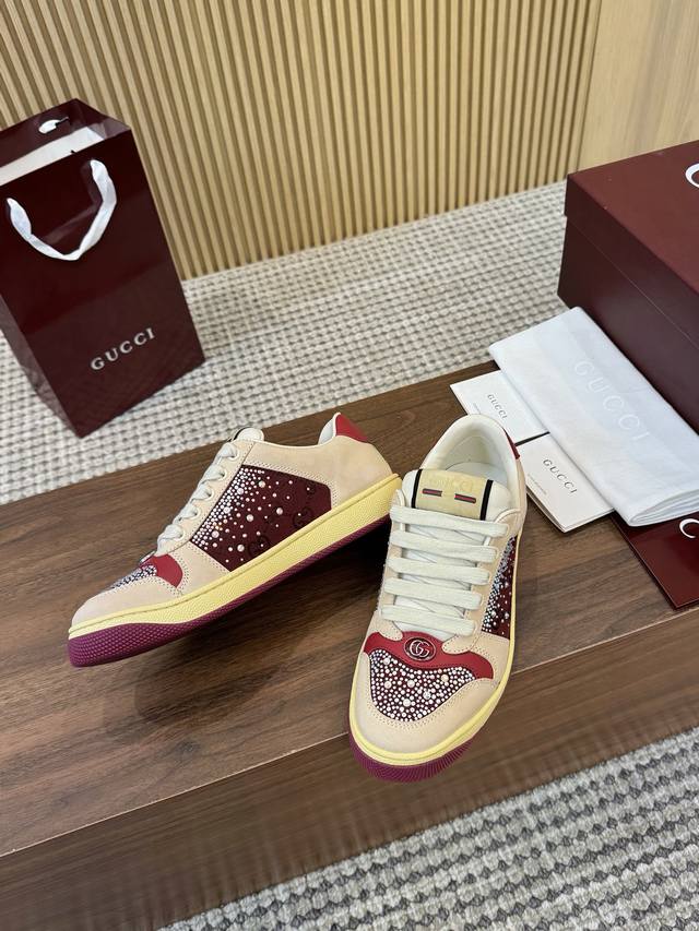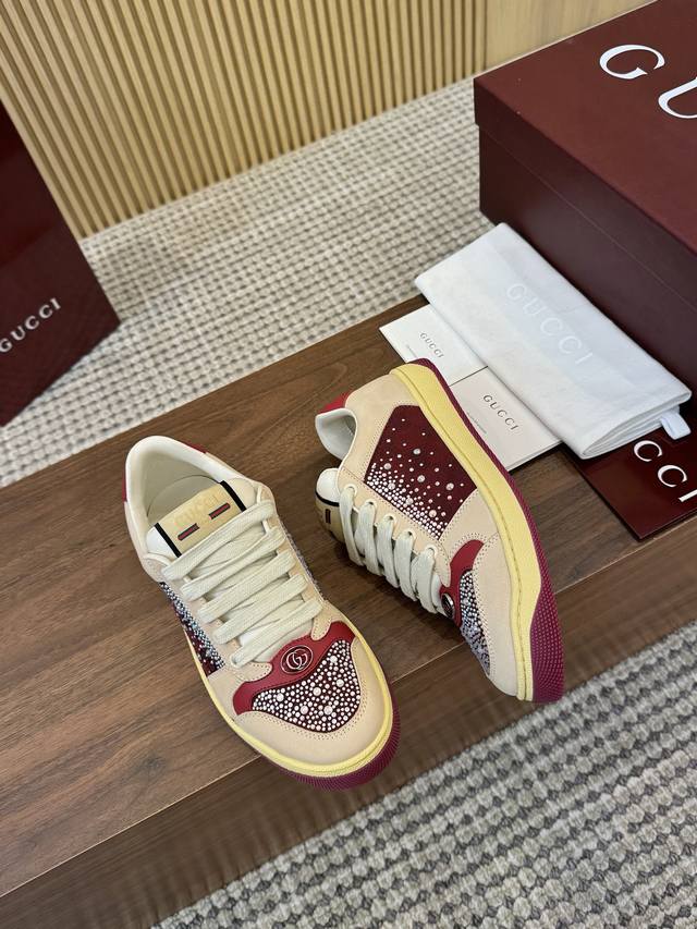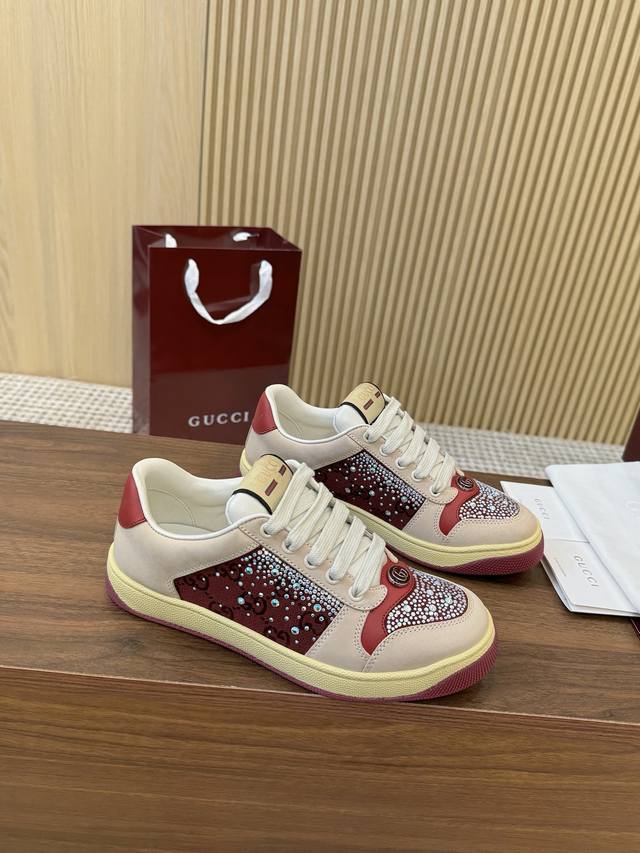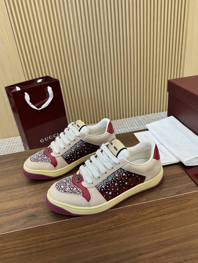 Real Price Gucc Classic Dirty Shoes Top Factory Quality, Impeccable 1:1 Replica from Brick Stores, Incredibly Comfortable to Wear, Retro Distressed Elements, Vintage Label on Tongue, Double Globes, Full of Gucc Elements. Material: Retro G Fabric + ABS Rhinestones. Lining: Breathable Sheepskin. Outsole: Durable TPU. Size: Women's 35-41, Men's 39-45.