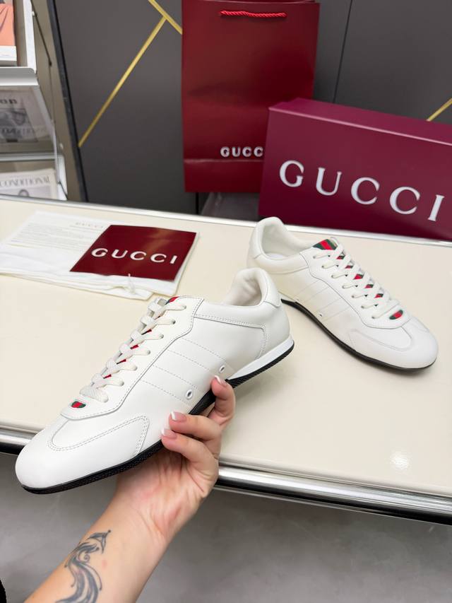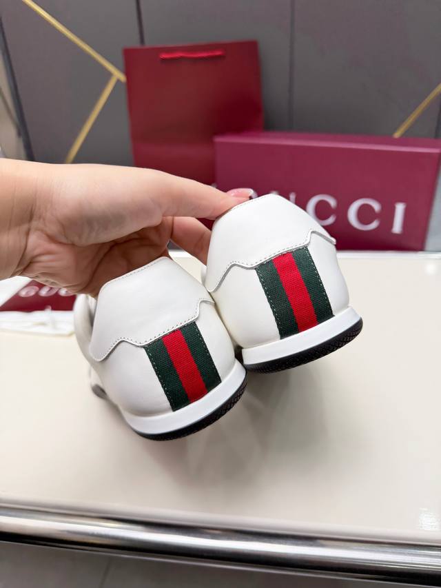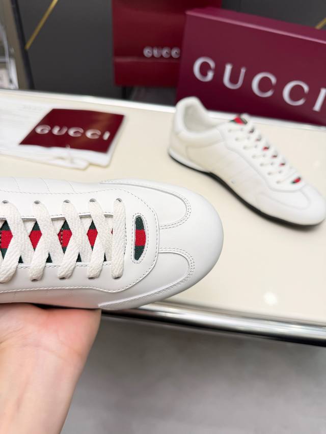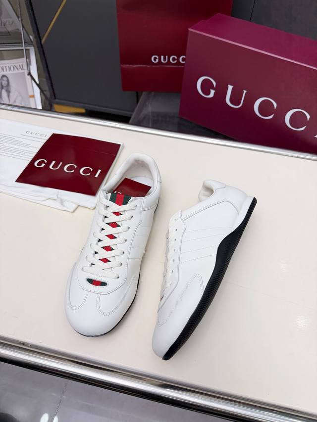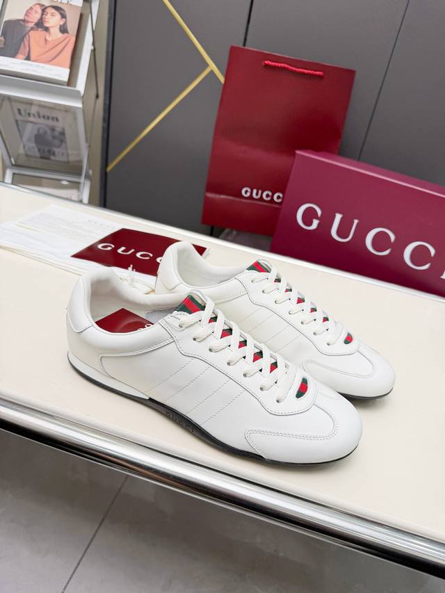 Real Price Gucci New Couple Shift All-Season Sneakers. Lightweight design reinterprets sporty style, with a clean silhouette adding to its natural charm. Adorned with striped webbing, it exudes refined quality with every movement. The shoe's design is simple and retro, lightweight and versatile, easily handling both commuting and everyday wear. Women's 35-40, Men's 40-45. (DDD)