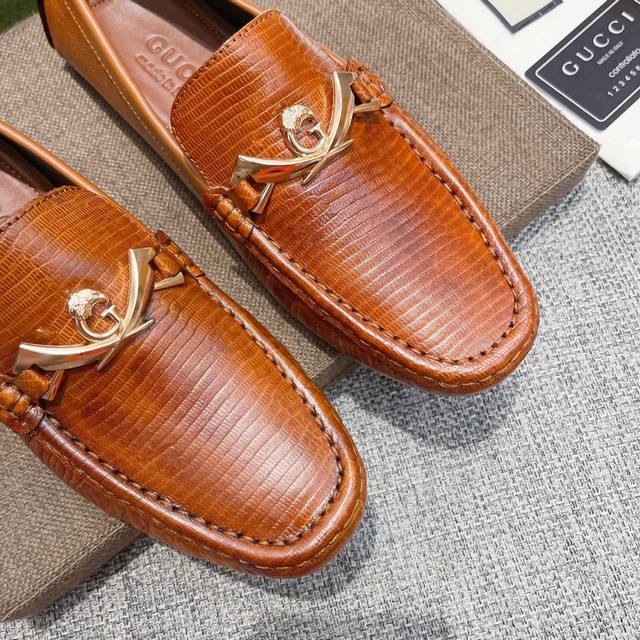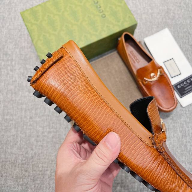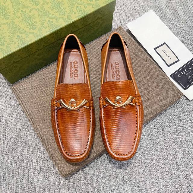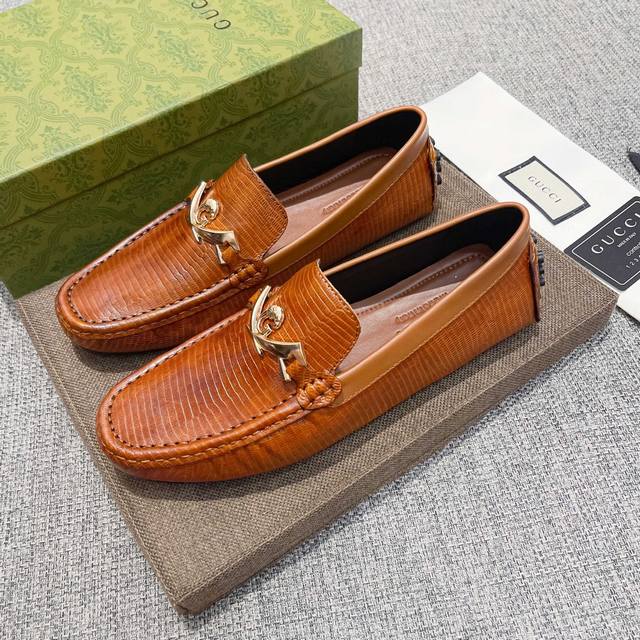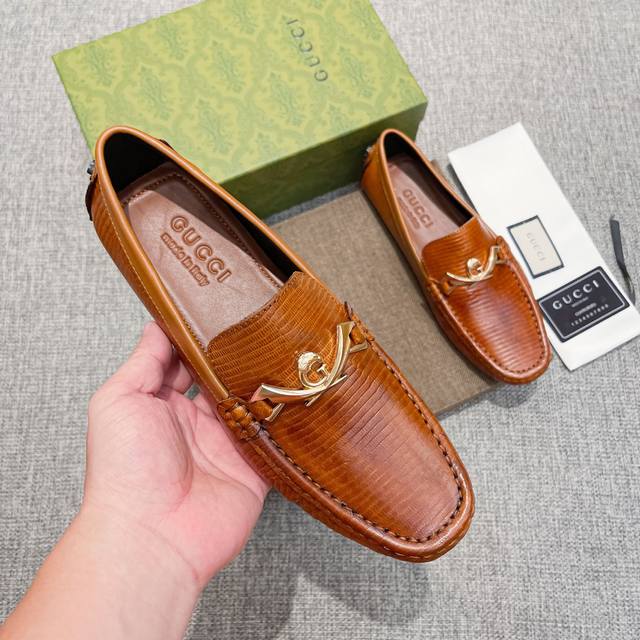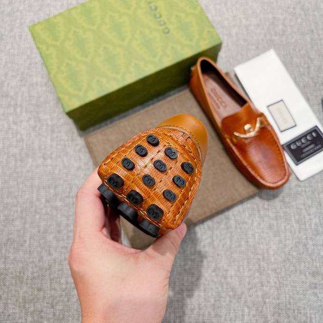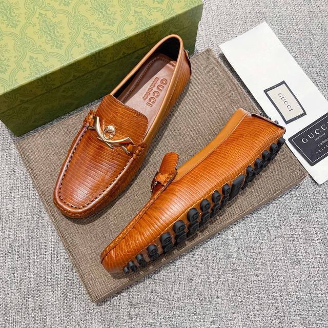 This is a high-end, best-selling Gucci driving shoe from the official website. The upper is made of imported top-grain cowhide, exuding luxury and sophistication. The lining is also made of genuine top-grain cowhide, and the sole is made of original imported durable rubber. A classic choice for men's elegance, this shoe features exquisite craftsmanship and comfortable wear. The sexy design of the upper showcases the brand's understated elegance and high-end style. Whether you're focused at work, enjoying leisure time with family, or experiencing a refined lifestyle in the city or countryside, this series highlights true masculine charm. [Striving] Standard sizes 37-46