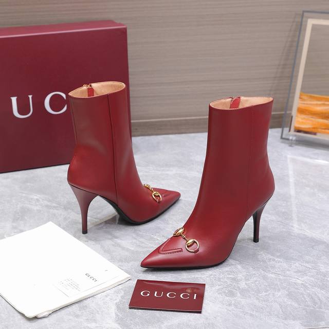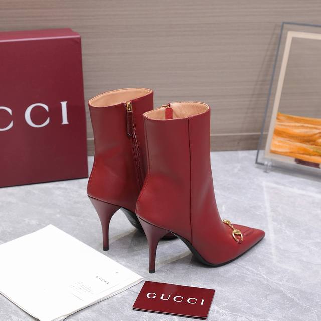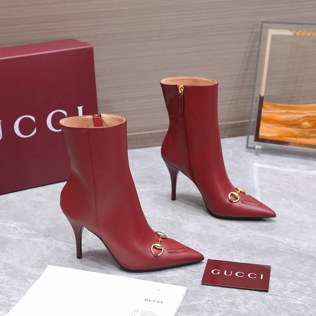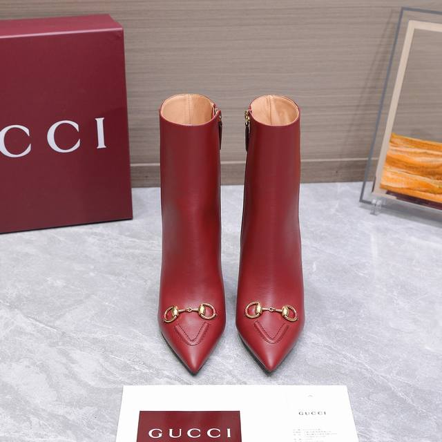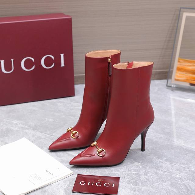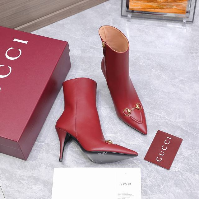 2025 New Gucci High-Heeled Ankle Boots Pointed Toe Ankle Boots Nude Boots