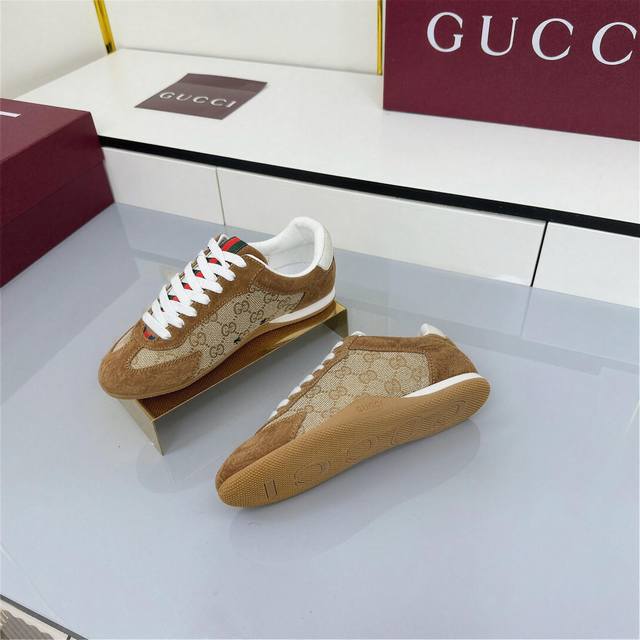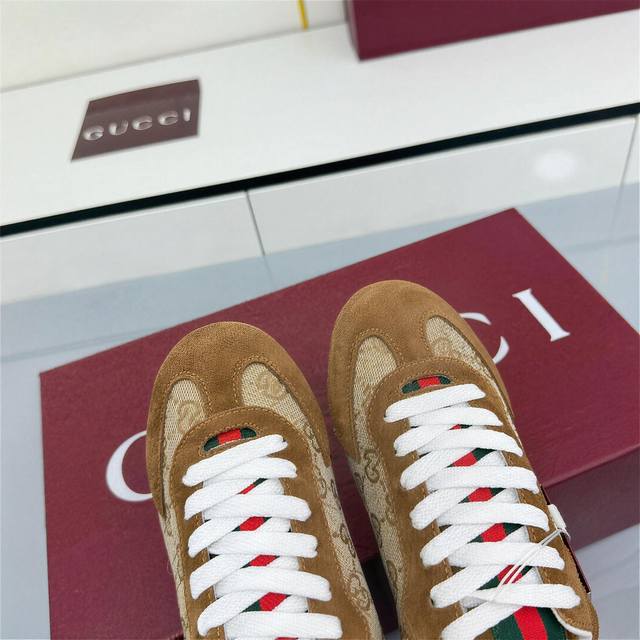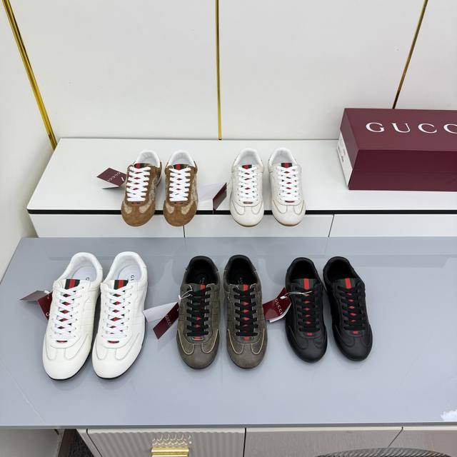 Top Version: Gucci Shift series retro sports shoes, casual athletic shoes, 2025 early autumn new couple style. Original purchase and development. The Gucci Shift series is newly launched, with a lightweight design that reinterprets sporty style. The clean silhouette adds to the natural feel, showcasing exquisite texture with every movement. The webbing details are like a continuous ribbon running through the entire design, and the side stitching details add a finishing touch. Comes with exquisite boutique packaging. Material: Original custom imported top-grain cowhide. Lining: Original custom soft sheepskin lining. Outsole: Original molded anti-slip TPU material. Size: Couple style: 35-45, Men's 45 custom-made.