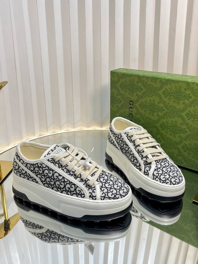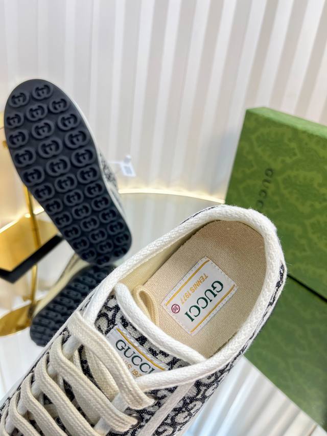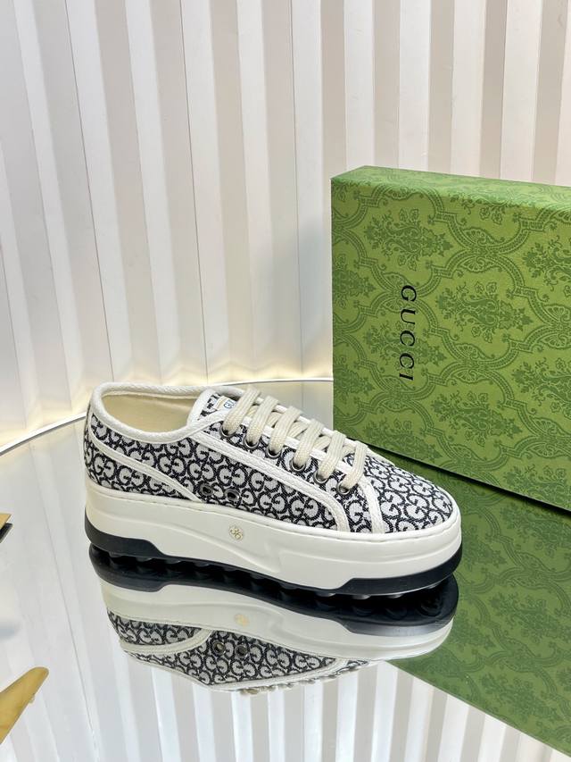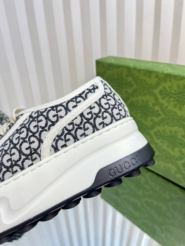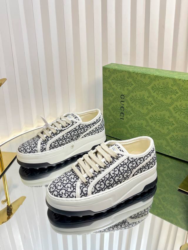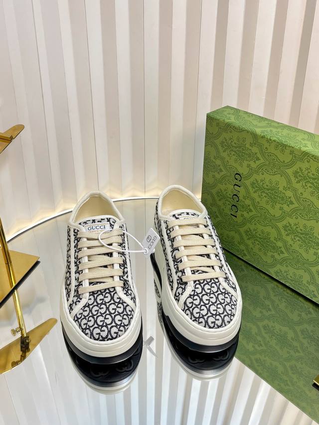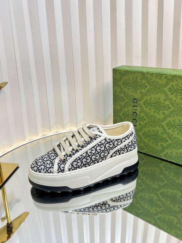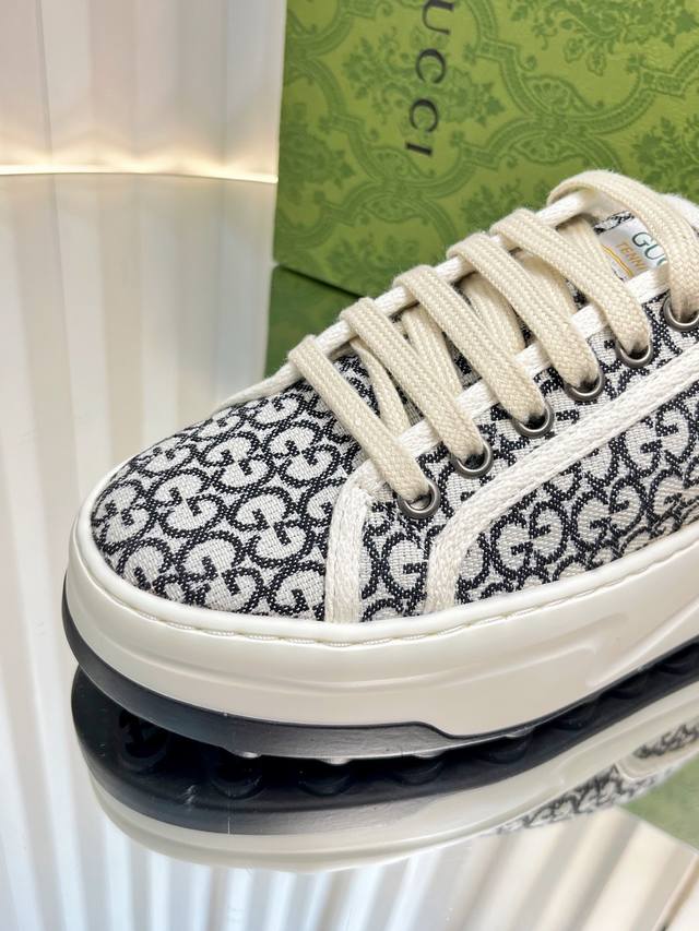 Top-tier women's/couple's Gucci sneakers, the latest hot-selling item from Gucci. This eye-catching piece draws inspiration from the world of tennis. These sneakers are made from classic GG canvas in tonal beige and ebony, with a thick sole and contrasting fabric piping for a modern aesthetic. Upper: Classic GG canvas; Outsole: Interlocking double-G rubber outsole, 5.3cm high! Sizes: Women's 35-40, Men's 39-44. Women's 34, 40, 41, Men's 45. Custom orders are available, but returns and exchanges are not accepted.