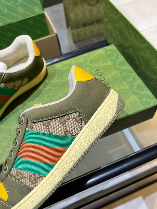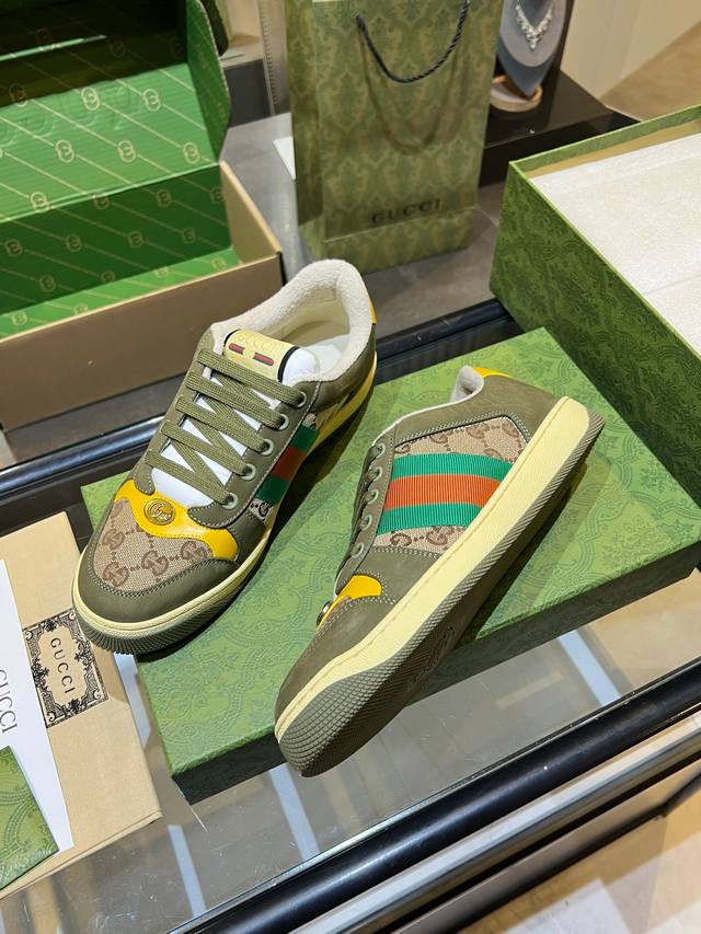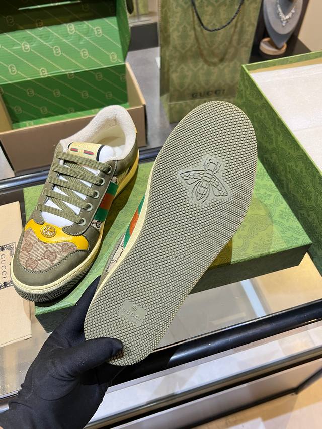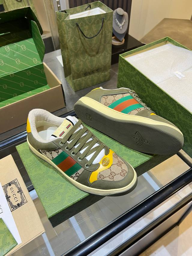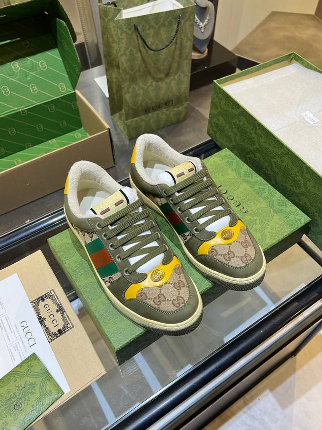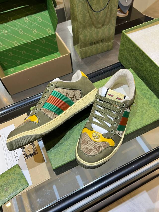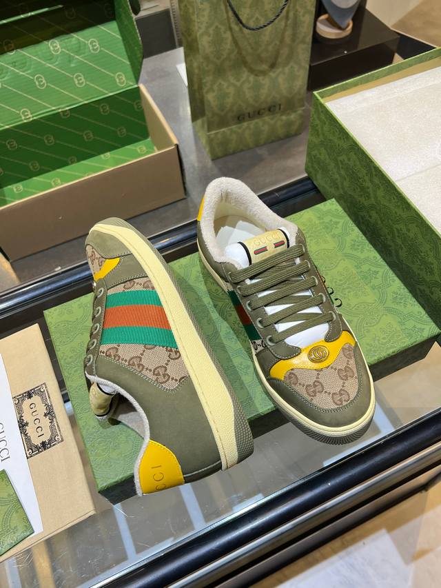 Gucci distressed shoes, top-quality factory, impeccable 1:1 replica, incredibly comfortable to wear. Features include a vintage distressed design, a washed retro label on the tongue, and a metallic double Gucci logo (99% identical to the original). The shoes are covered in Gucci elements; the terry cloth lining and 3mm latex insole make them far more comfortable than genuine leather shoes. The eco-friendly TPU outsole is durable, soft, and elastic. The inner tongue uses imported elastic bands for excellent tension without constricting the foot. I only develop shoes based on the original; only shoes made with the original can be perfectly replicated, far surpassing other versions on the market. Every stitch is tight and full. The adjustment process is meticulous, requiring hundreds of revisions to achieve the perfect fit for all foot shapes. Women's sizes 35-40 - Men's sizes 39-45.