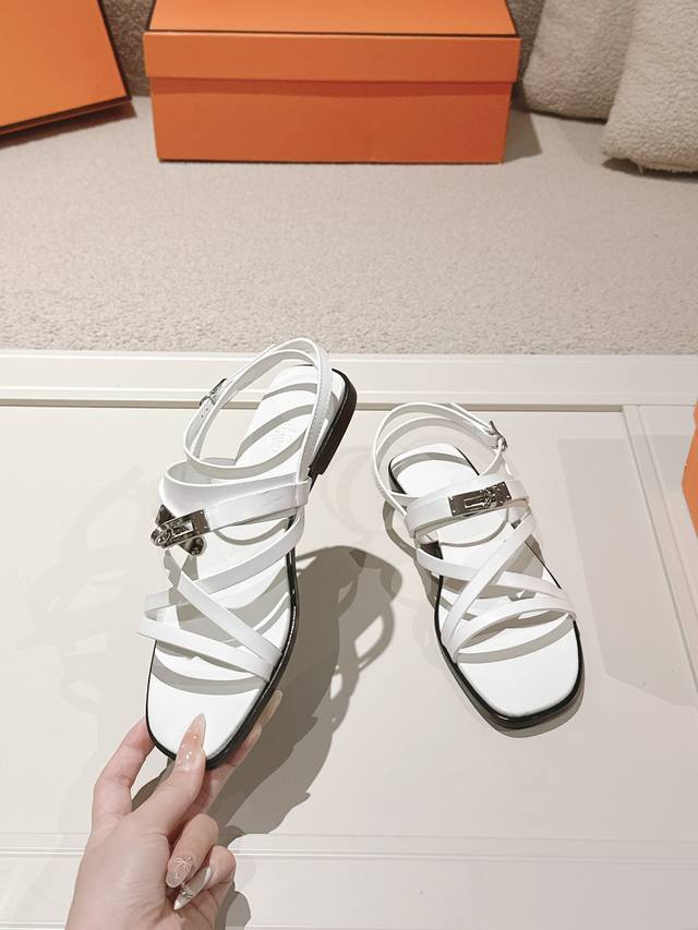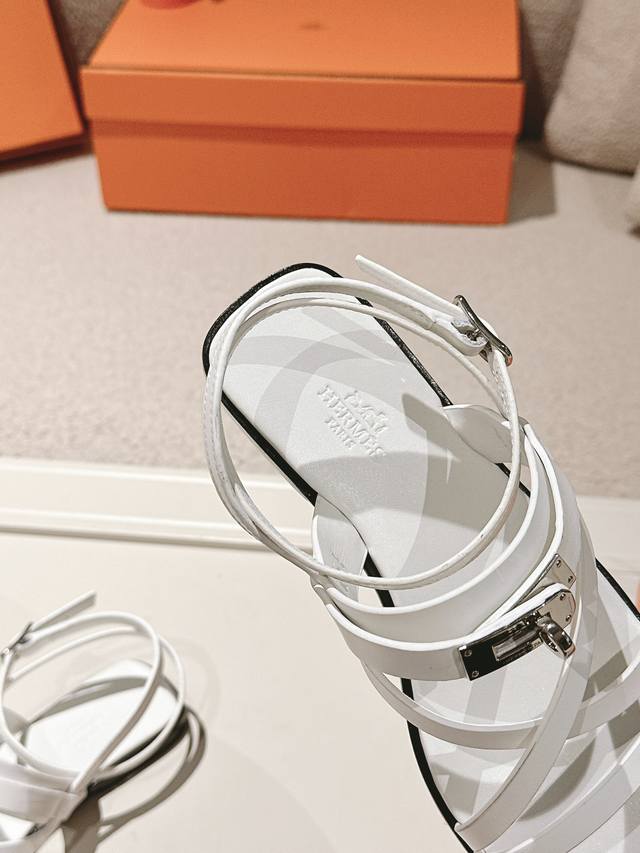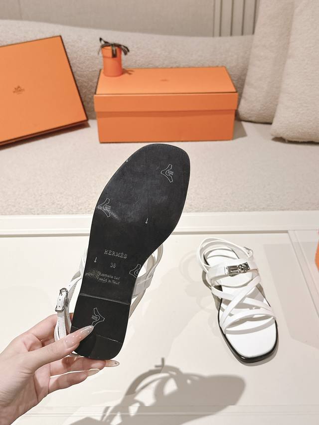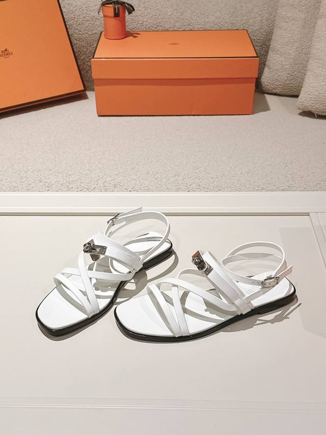 Premium Quality Hermes June Sandal Series H-Shaped Kelly Buckle Thin Strap Roman