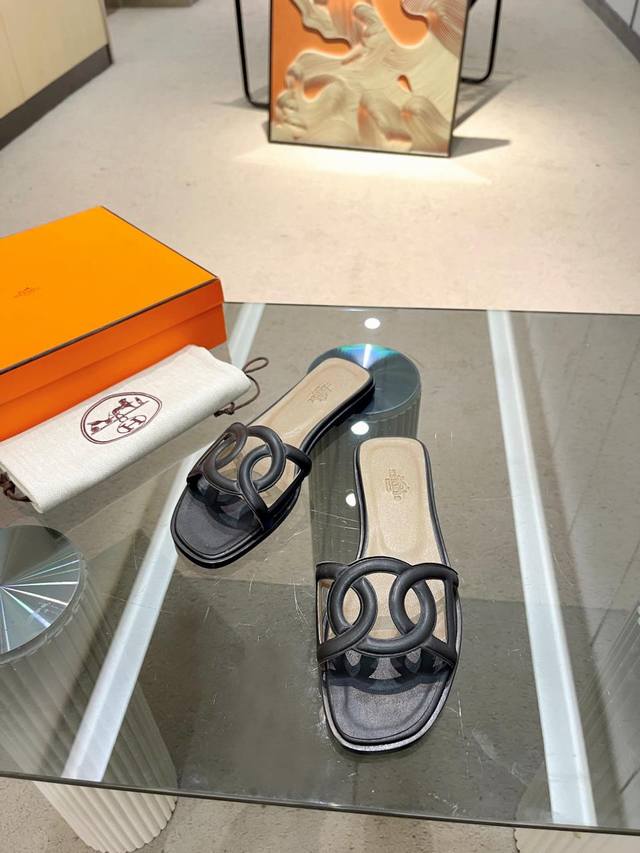 Top-quality factory-made Hermes* F021 2025Ssh new flat fur slippers. Exceptional