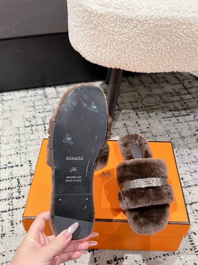Top version;: : Hermes Oran fur slippersClassic sheepskin fur slippers, gentle t