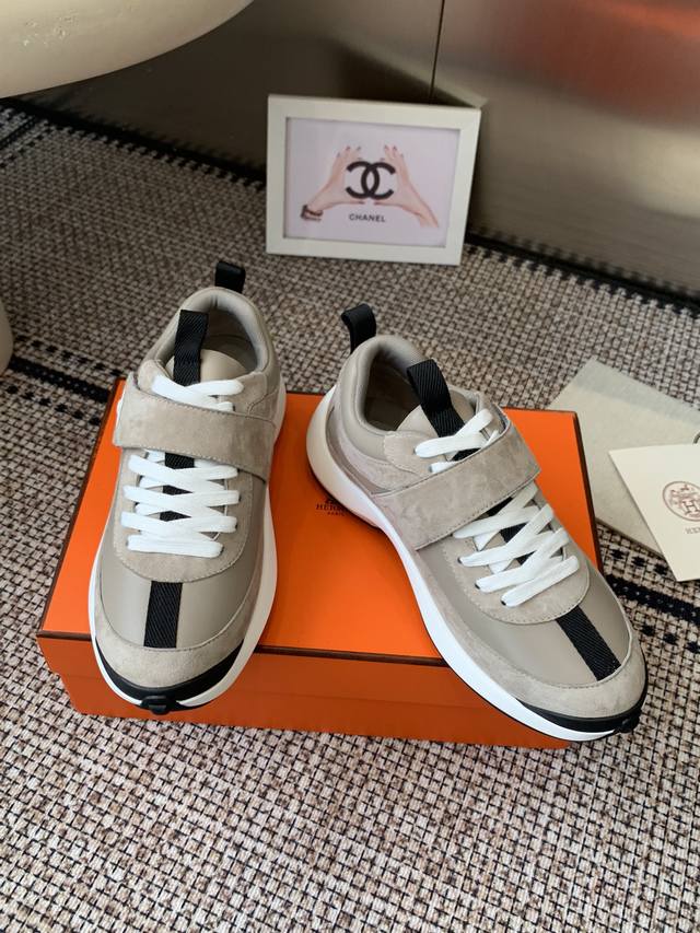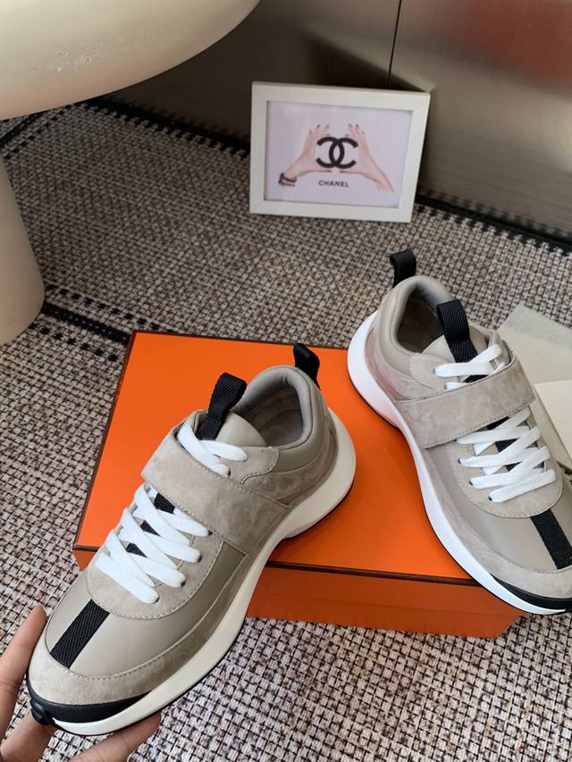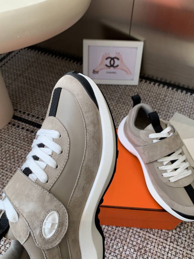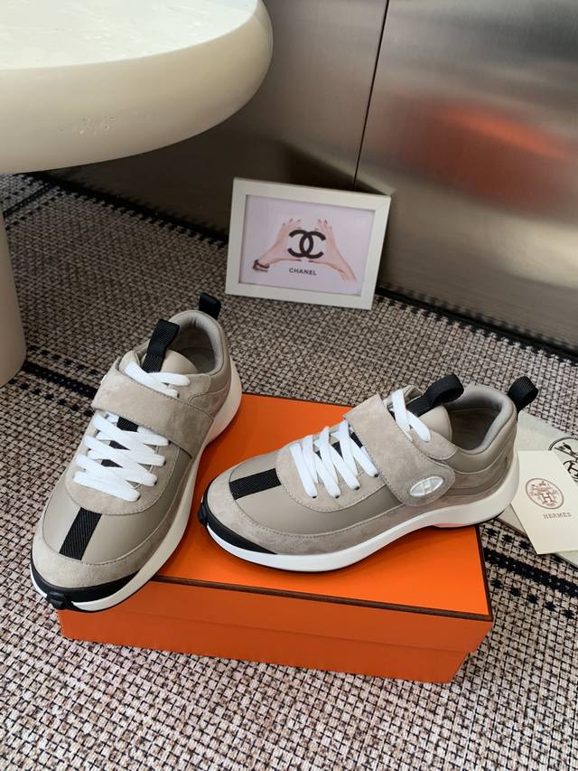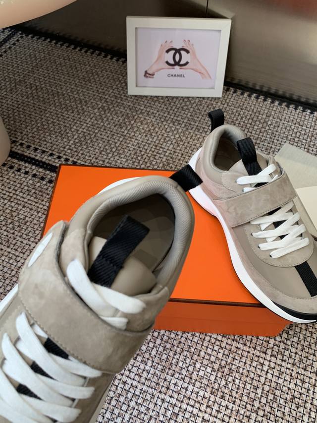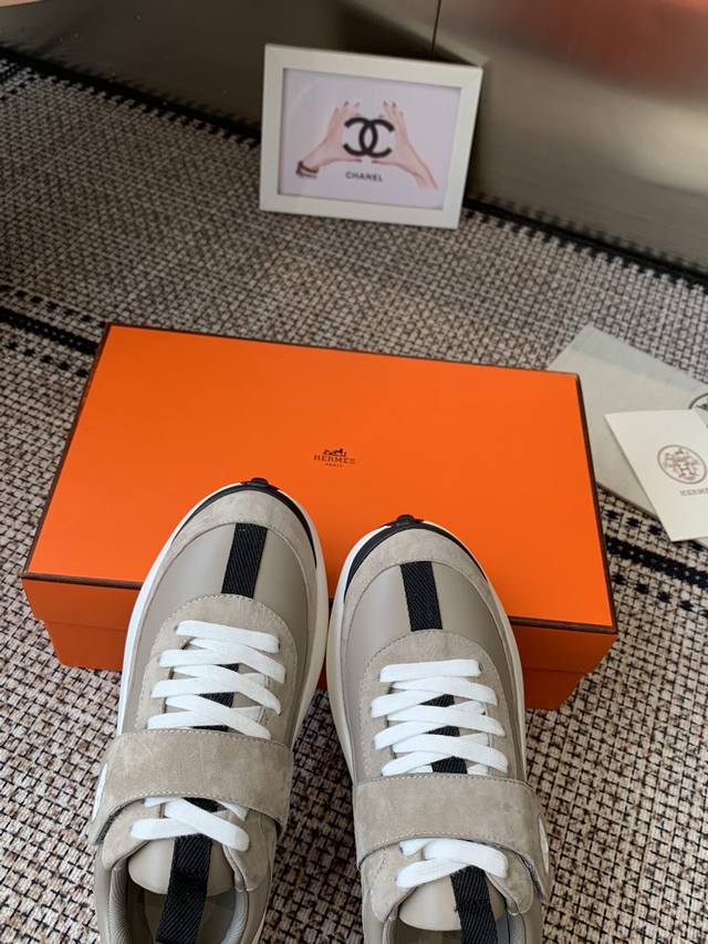 Hermes Khea Velcro Lace-up Derby Sneakers. The Hermes Khea lace-up sneakers feat