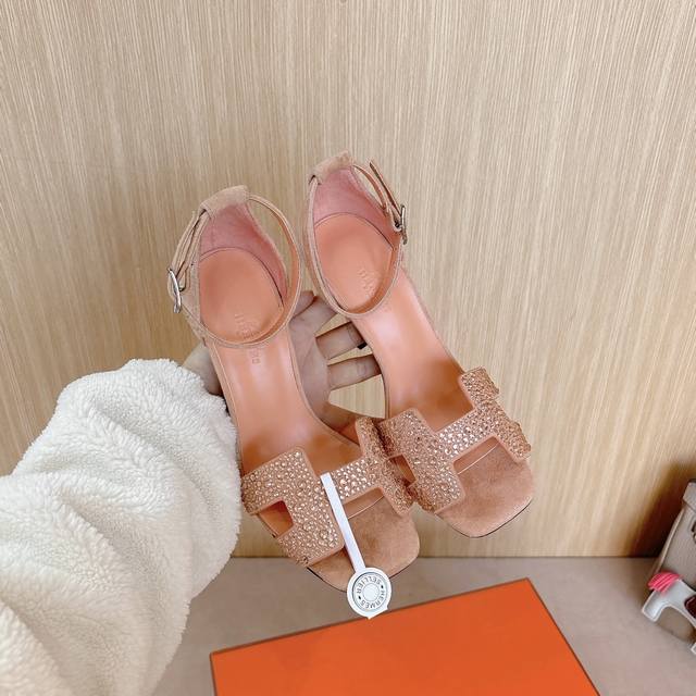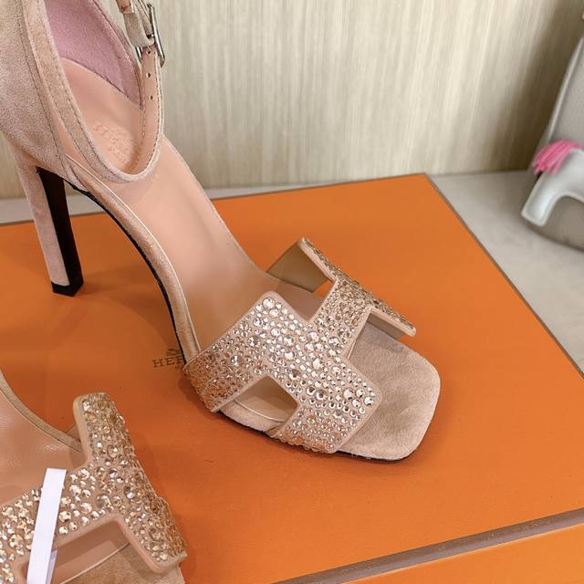 10.5Cm group picture diamond surface factory price p Hermes Joy 105 high-heeled sandals are fashionable and versatile with H-toe, super comfortable, every detail is done to the extreme with the same color iconic pure shoe buckle design, simple and smooth to create a fashionable and soft shape. Original calfskin original 1:1 exclusive private model heel original leather outsole