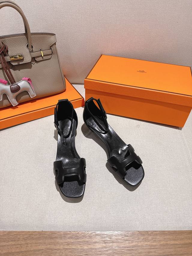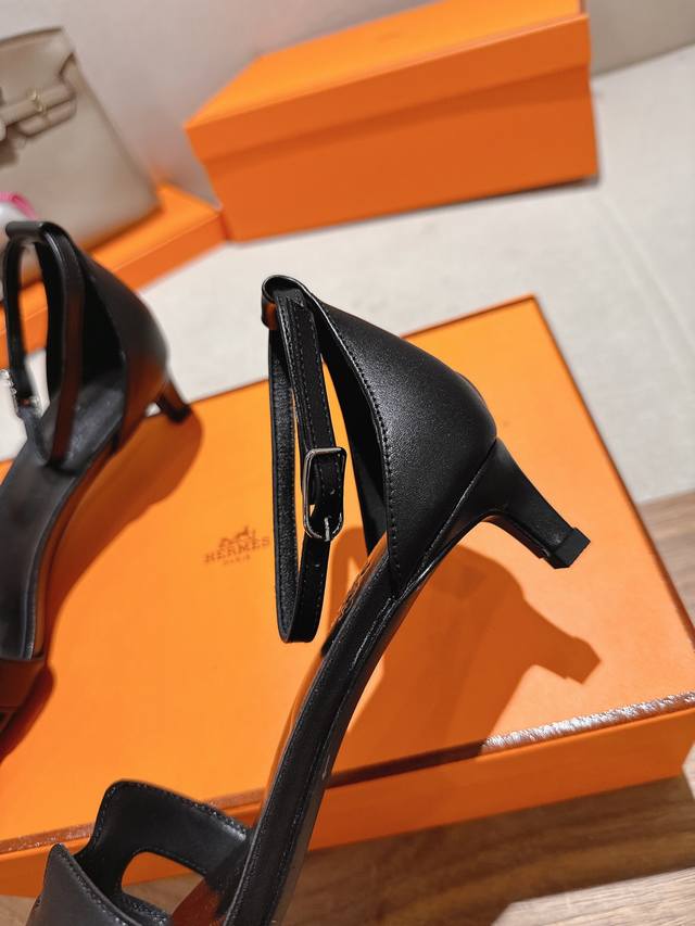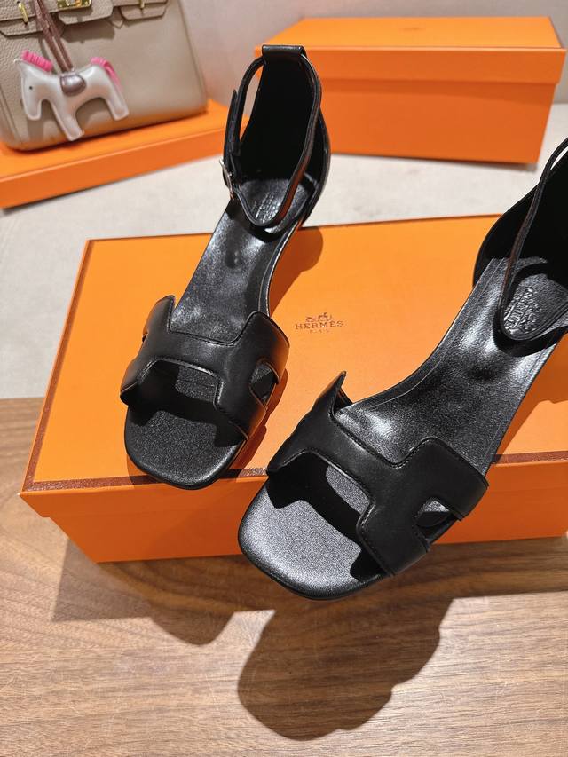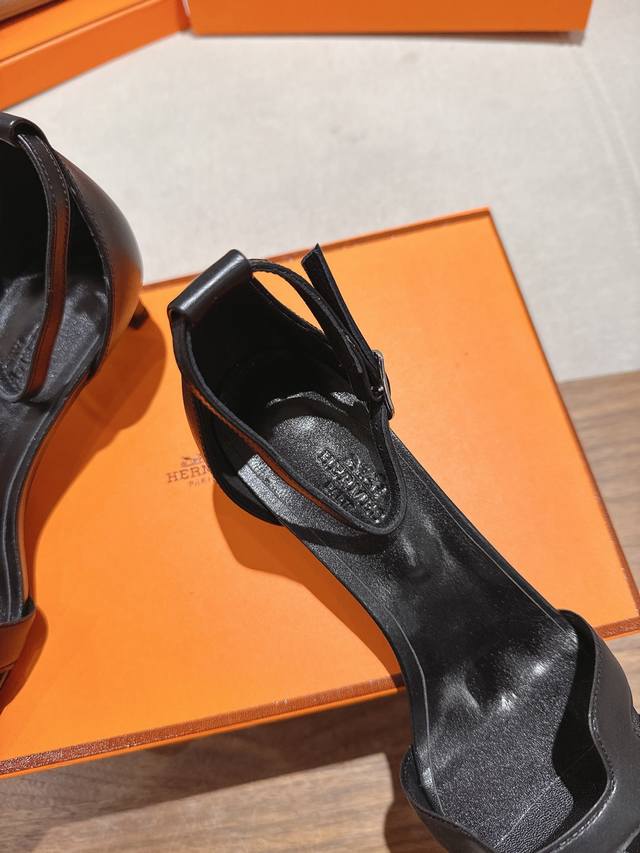 4.5cm square toe leather upper, factory price P Hermes Joy 105 high-heeled sandals, fashionable and versatile, with an H-shaped toe for super comfort. Every detail is meticulously crafted. The iconic pure buckle design in the same color tone creates a simple and smooth, fashionable and feminine look. Original calfskin, original 1:1 private mold, original genuine leather outsole
