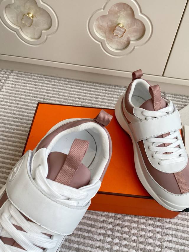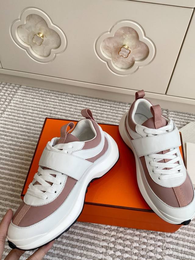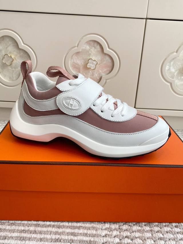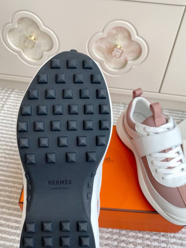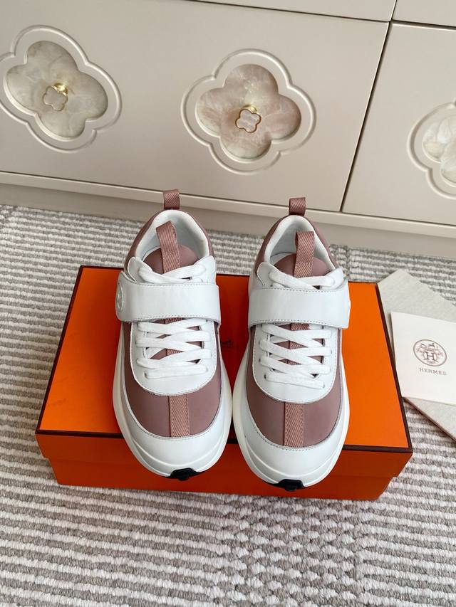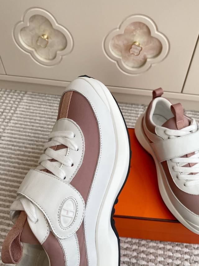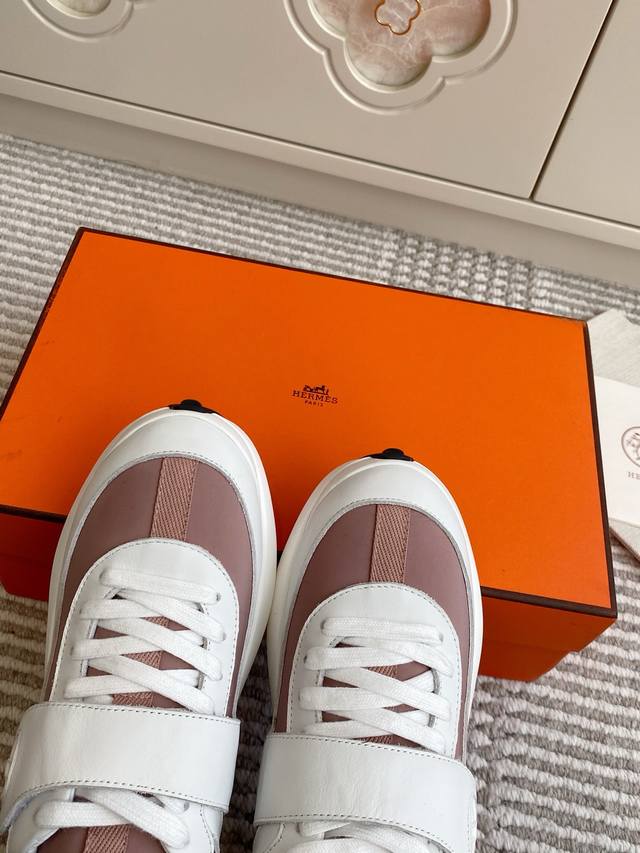 Batch of men's and women's Hermes 25Ss H new Loop Sneakers, couple style, Velcro leather casual sports shoes. Original imported quality, using original imported calfskin, suede, parachute material, sheepskin lining, leather Velcro upper, and lightweight geometric sole. Lightweight, comfortable, soft, easy to wear, and stylish. Size: 35-46 (Women's 40-41, Men's 45-46), custom made.