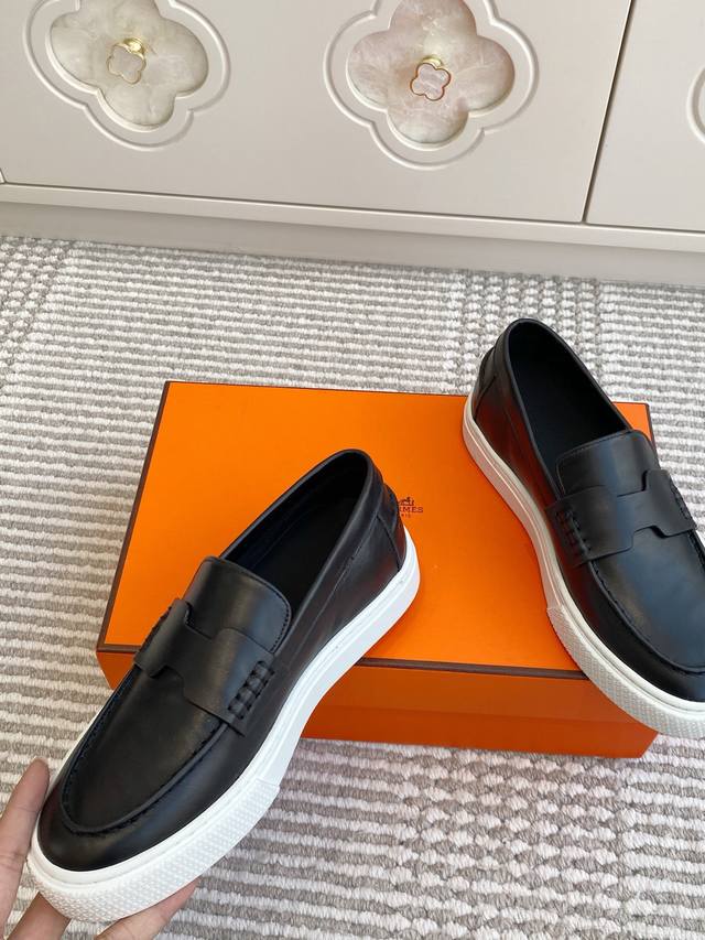 Batch of men's and women's Hermes platform slip-on loafers, top quality, classic
