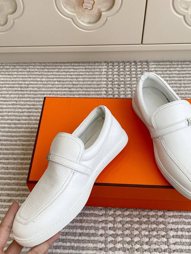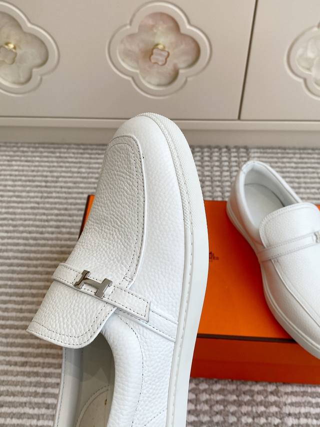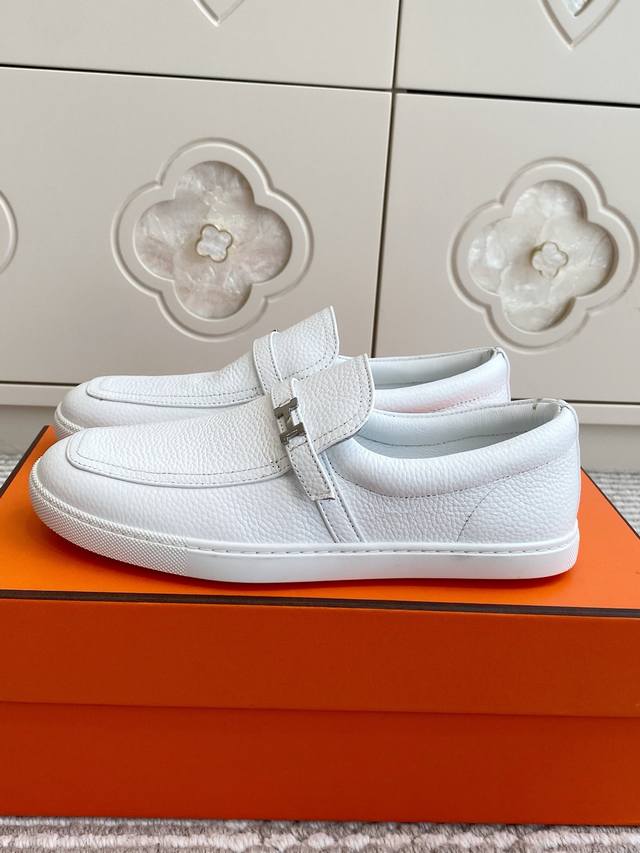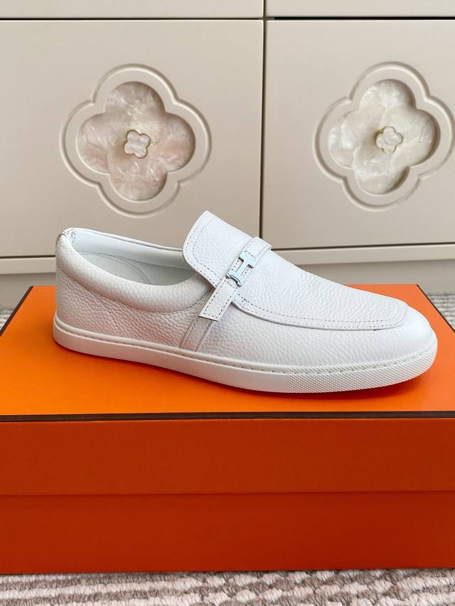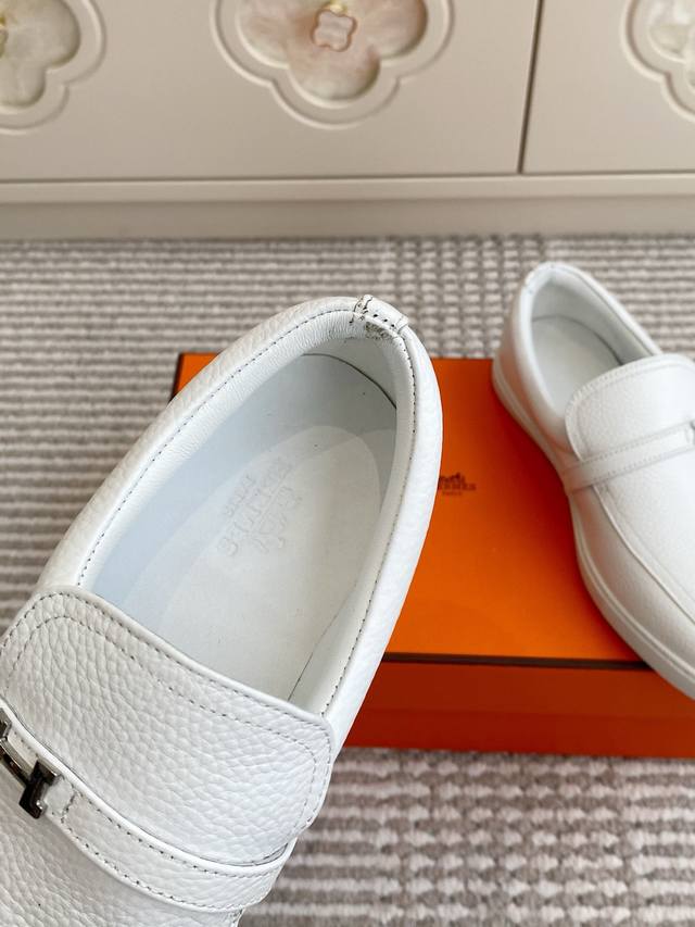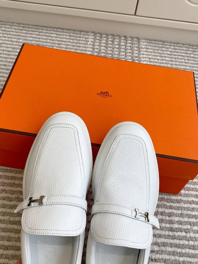 Batch of men's and women's Hermes slip-on loafers with H buckle, top quality, classic mini "H" buckle rubber sole.
