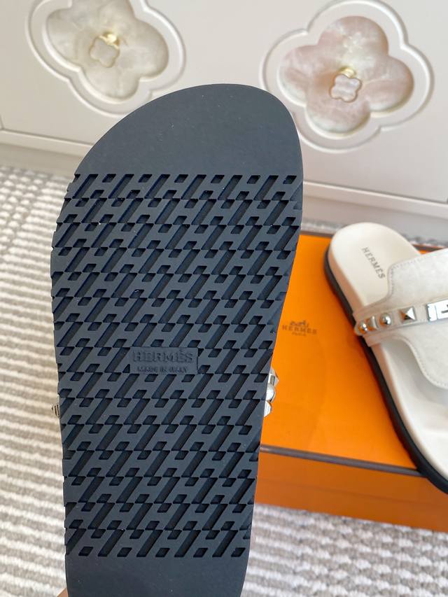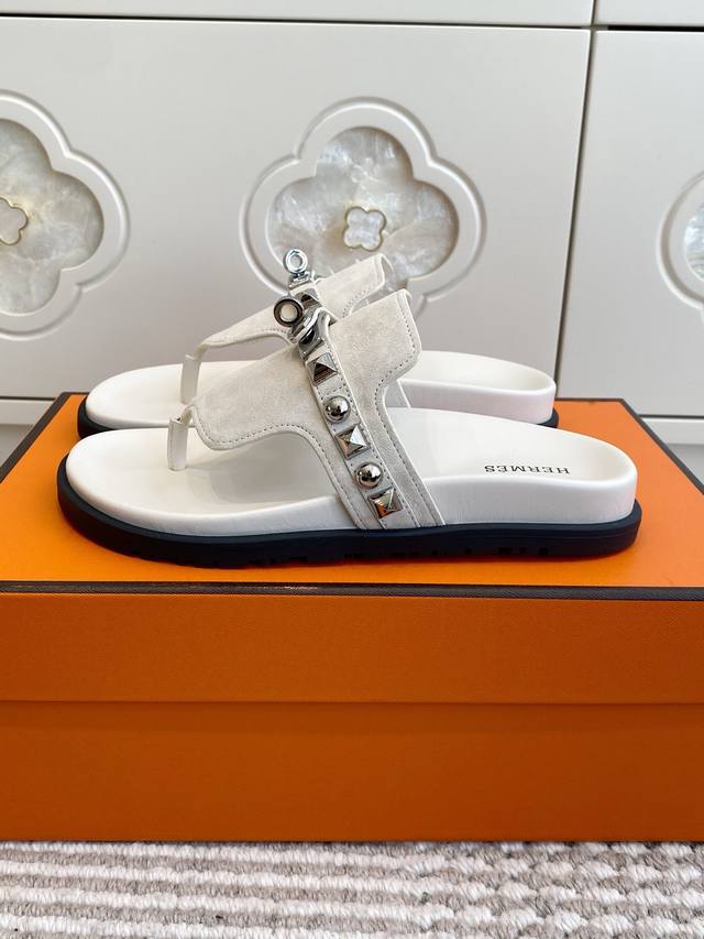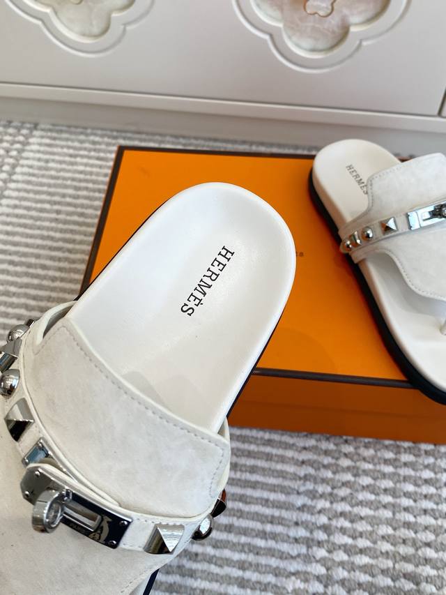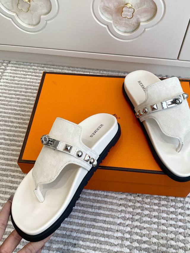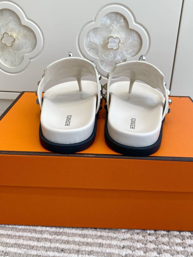Couple's Hermes Empire Series Kelly Buckle Flip-Flops, Top Quality Calfskin Slippers with Ergonomic Sole and Kelly Buckle. Upper: Imported Calfskin, Original Mold Outsole. Unisex: Sizes 35-45, 46 (Custom Made).