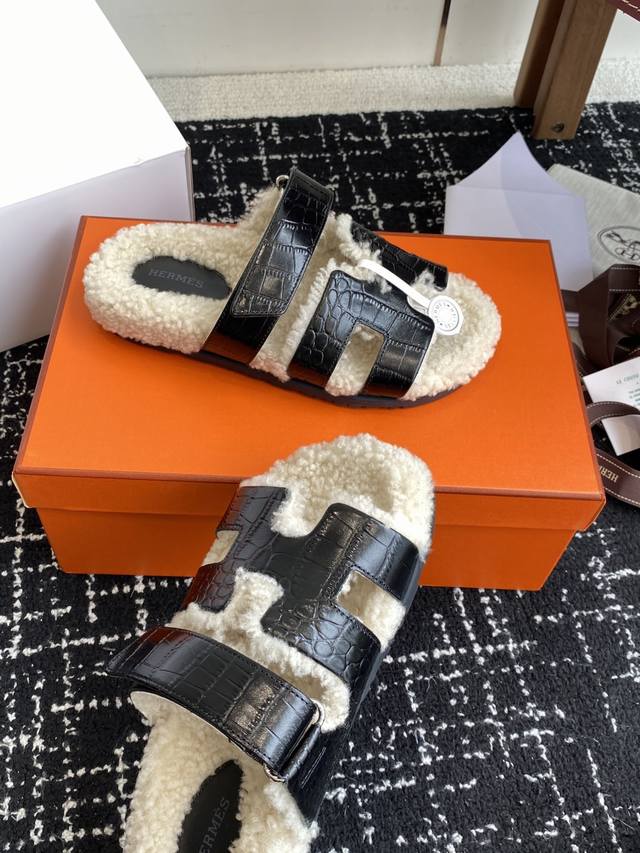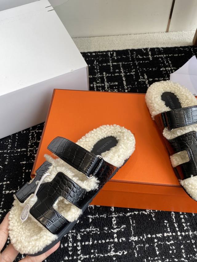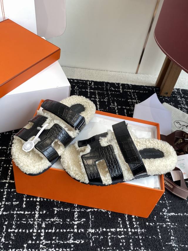 Hermes A wave of surprises Hermes fur slippers, a truly fashionable top-quality product, light luxury Hermes teddy fur slippers, so soft and beautiful.......