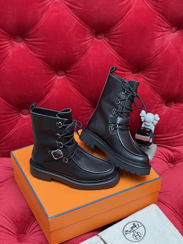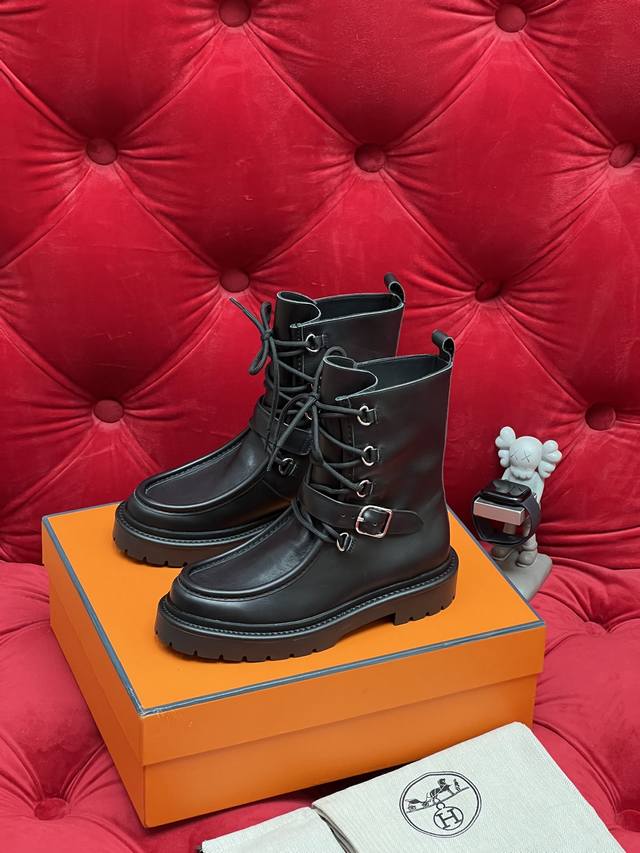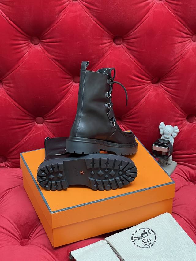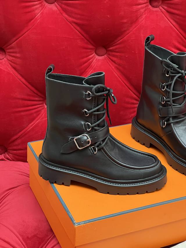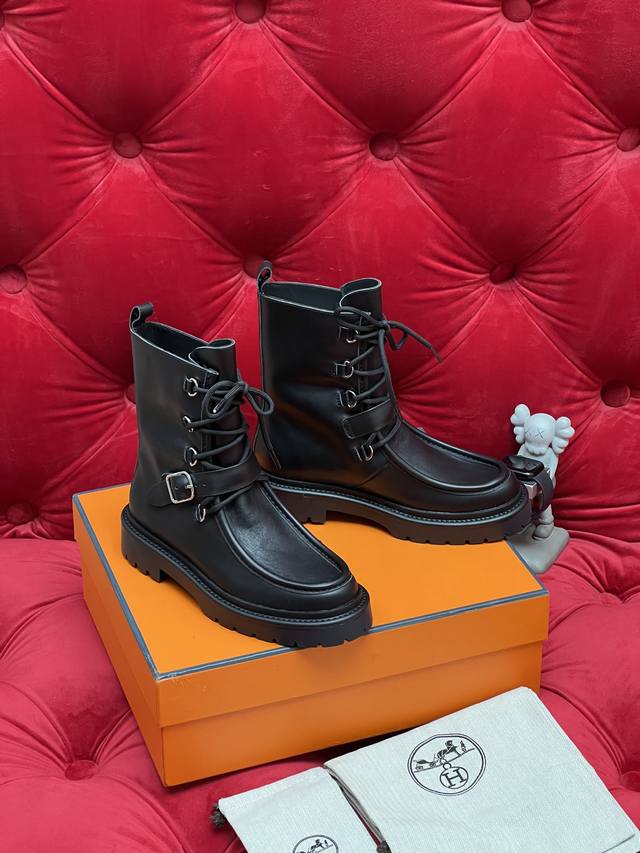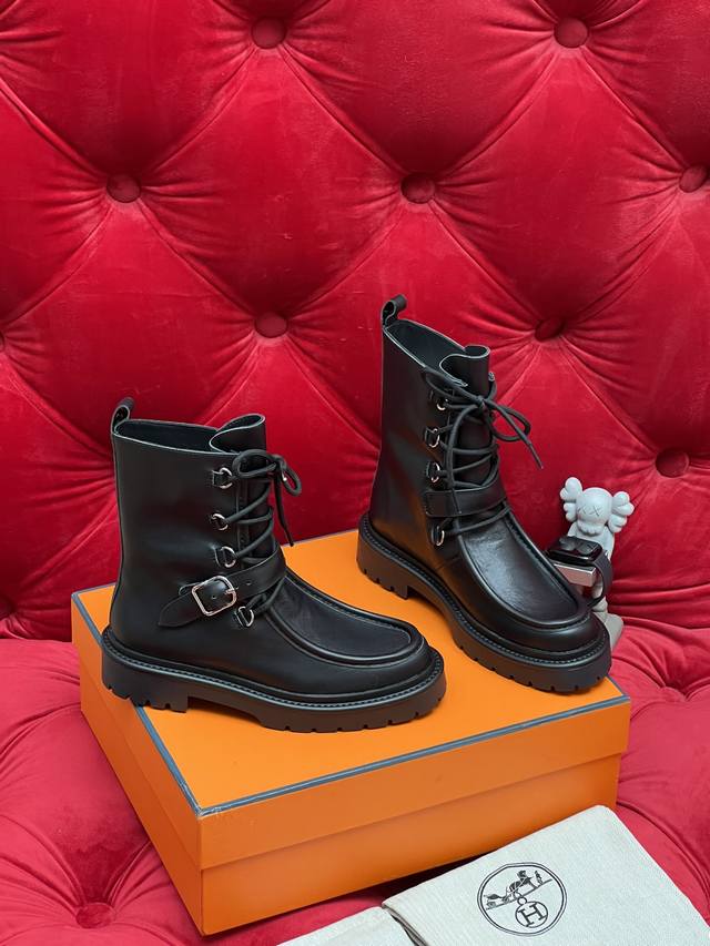 Exclusive Real Shot Top Version* Hermes 26 DDD New 2026 Autumn/Winter Runway Style Land Ankle Boots Lace-up Short Boots Series DDD Upper: Original Specific Calfskin Nylon DDD Lining: Imported Calfskin DDD Outsole: Original Mold Customized Non-slip Outsole DDD Heel Height: 4cm DDD Size: 35-39 40. Custom-made, no returns or exchanges DDD