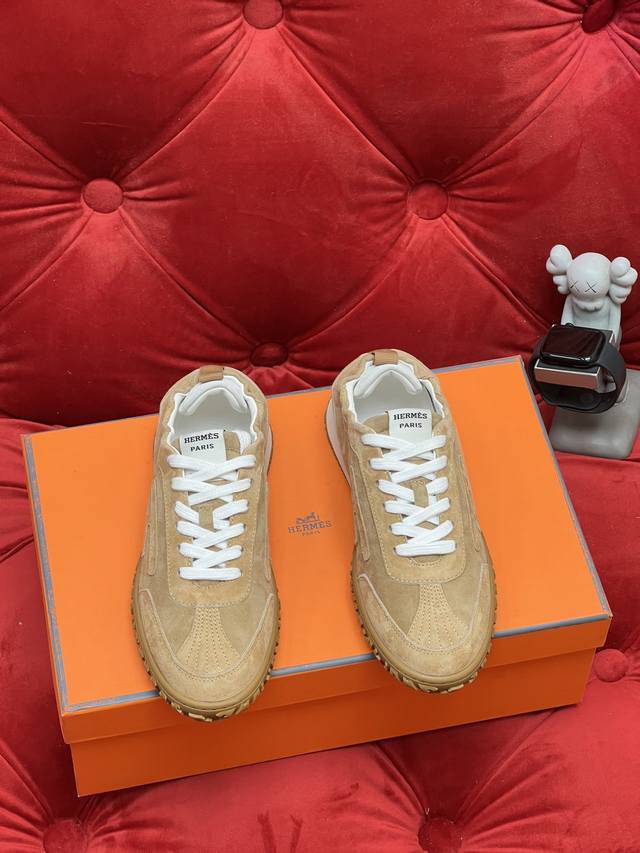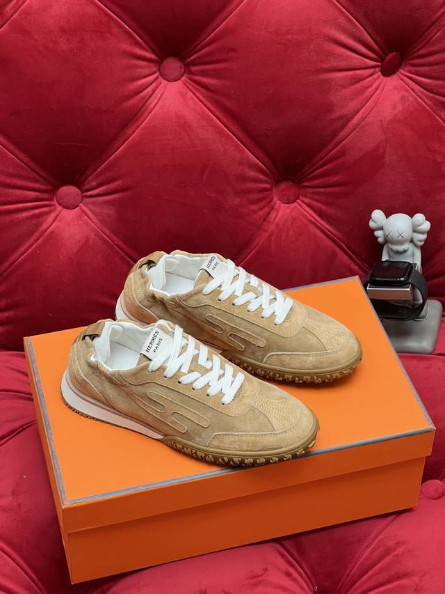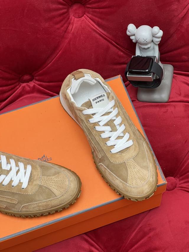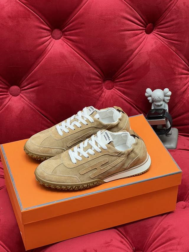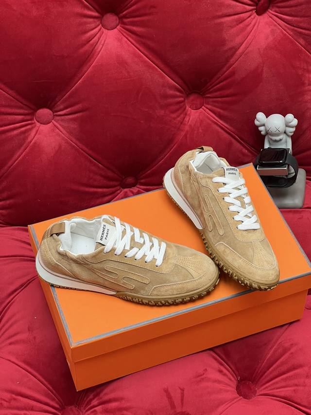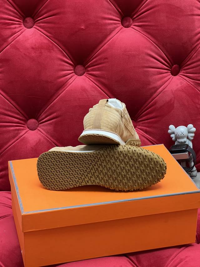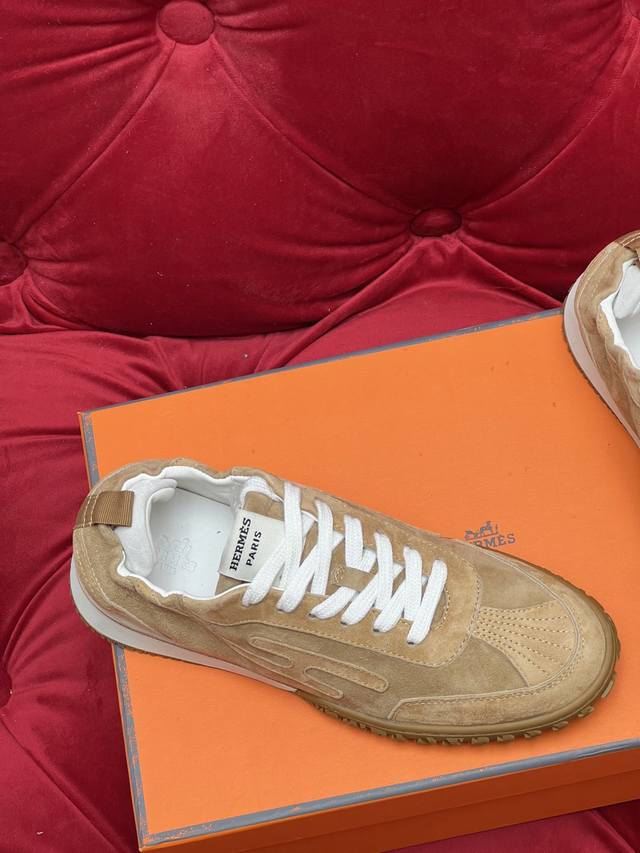 Exclusive Real Shot Top-Tier Import Version Men's 10 Hermes Jet Series Suede Sneakers Couple Style - Perfect for Everyday Commutes and Leisure Time All Year Round! Material: Original Custom Imported Top-Grain Suede Lining: Imported Soft Sheepskin Sole: Original Mold Anti-Slip Rubber Material Size: Women's 35-40 (40 made to order, no returns or exchanges); Men's 39-46 (46 made to order, no returns or exchanges).