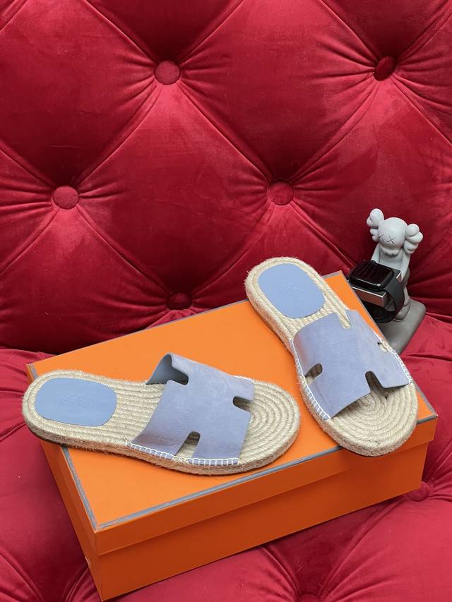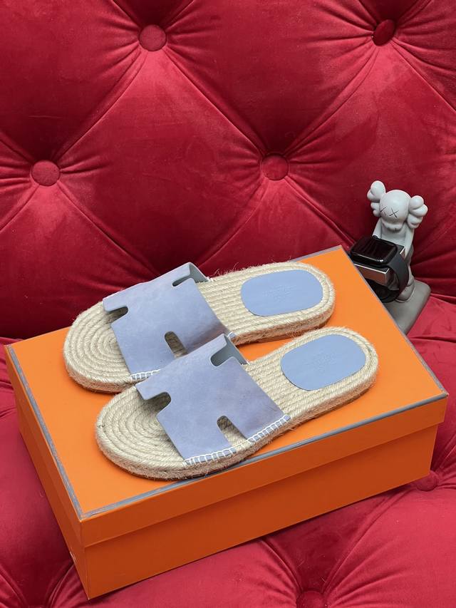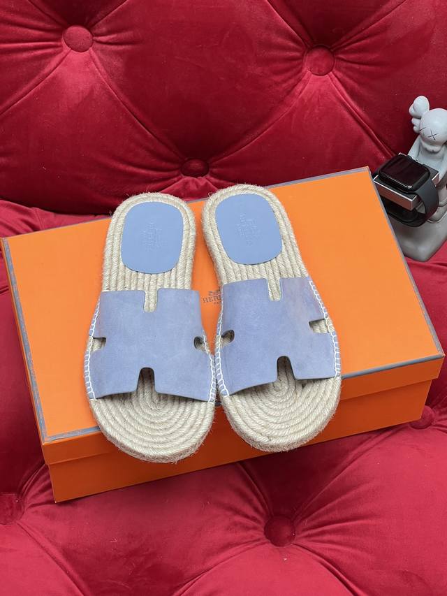 Exclusive Real Shot Top-Tier Version Hermes 25Ss Spring/Summer Newest Antigua Leather Straw Open-Toe Sandals - A Summer Must-Have! Experience the perfect combination of comfort and style in these sandals during the hot summer! Upper: Original cowhide leather with lychee grain. Insole: Original straw-woven cowhide. Outsole: Original genuine leather. Size: Men's 39-47, 45, 46, 47. Custom orders are non-refundable and non-exchangeable.