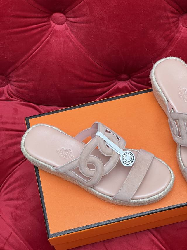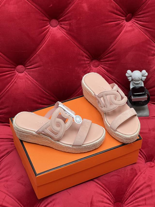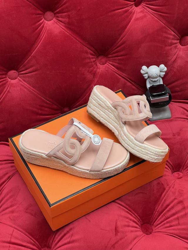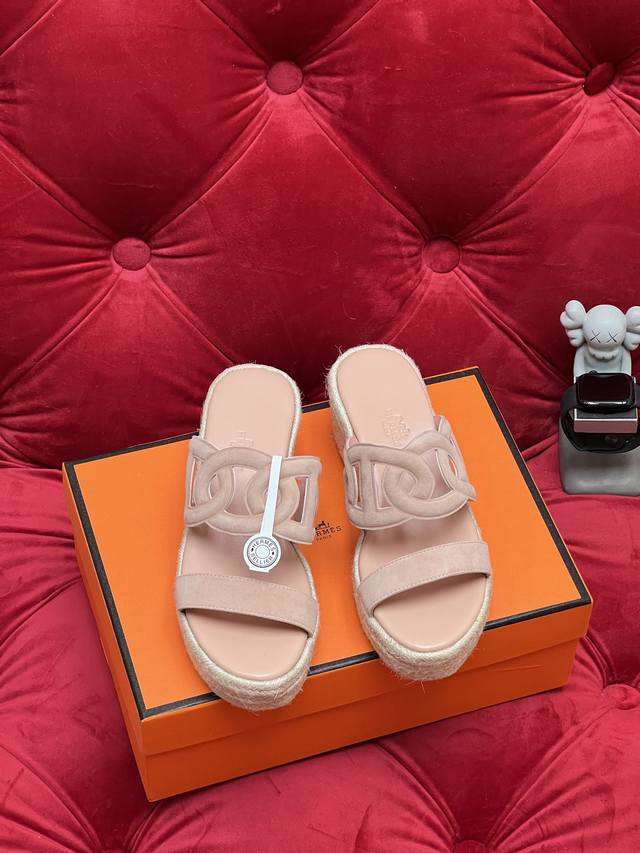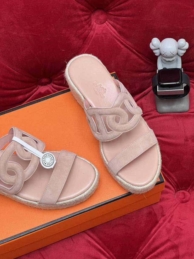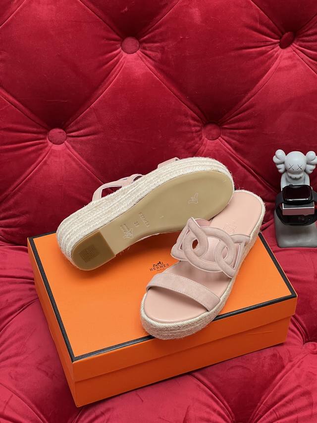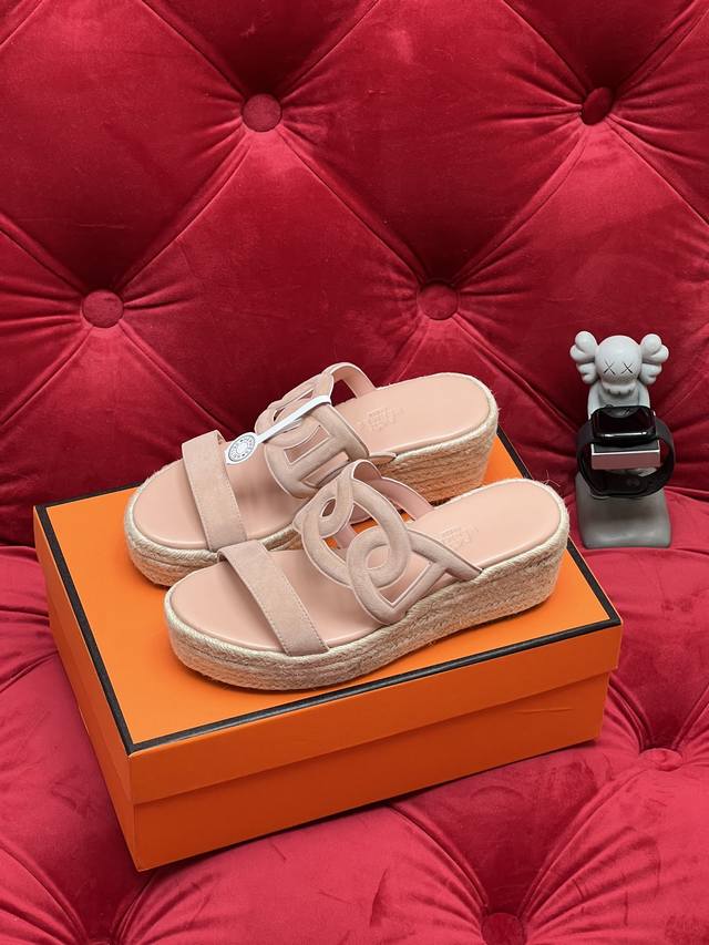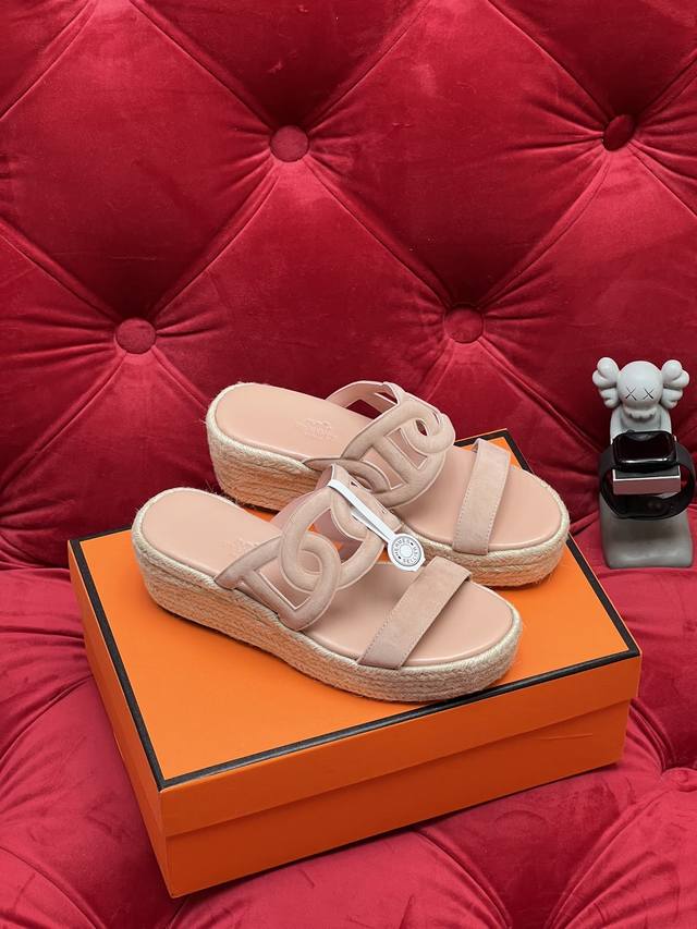 Exclusive Real Shots Top-Tier Version Herme*S Autumn/Winter New Arrival - These super trendy rope-trimmed platform sandals paired with colorful socks are really stylish! Upper: Imported calfskin Lining: Imported mixed sheepskin lining Outsole: Rope-trimmed PU platform with genuine leather outsole Size: 34-41 (34, 40, 41 are custom-made, no returns or exchanges)