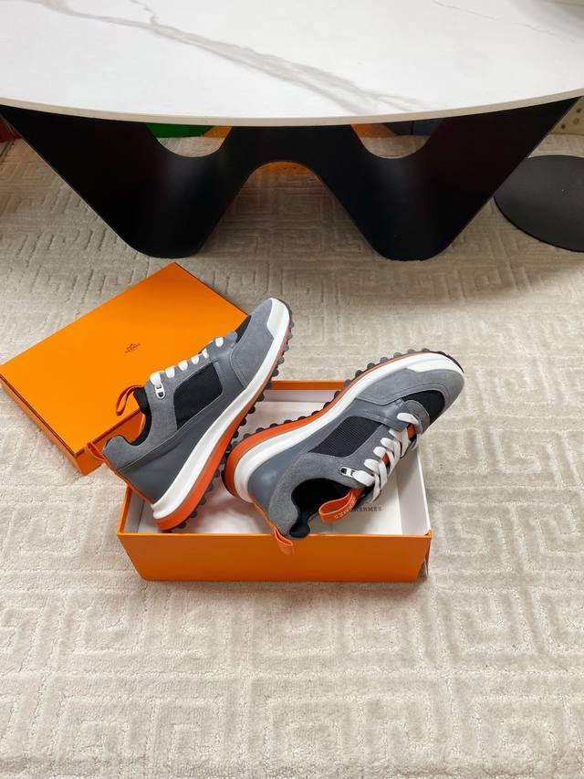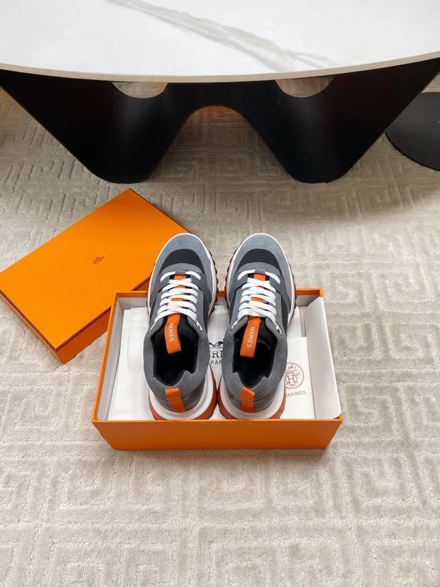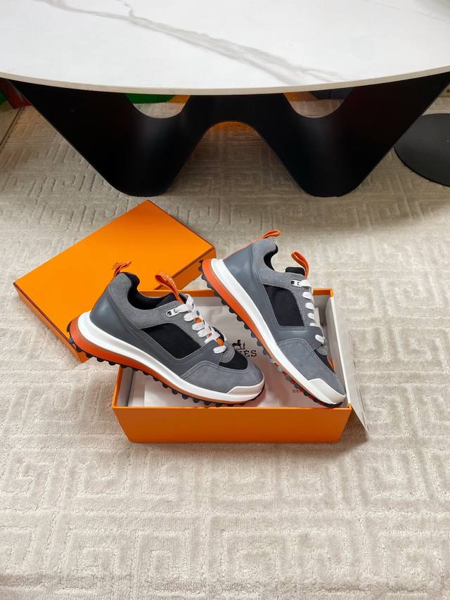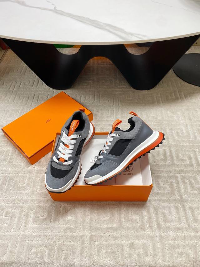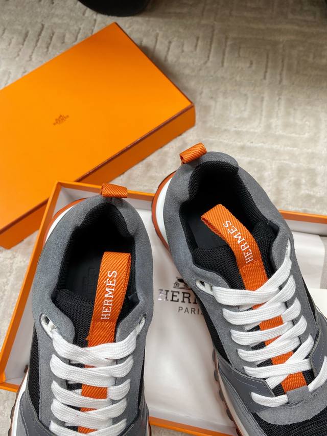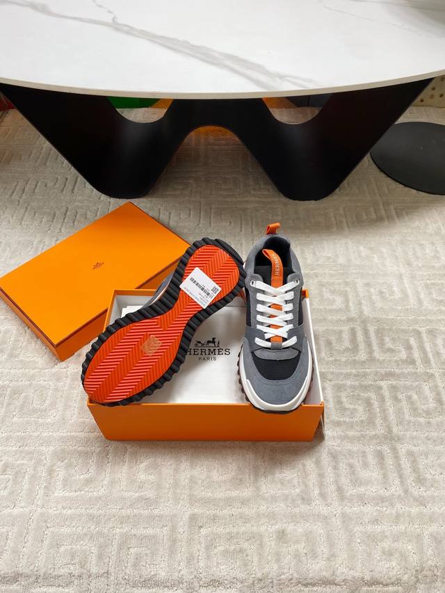Factory direct Hermes RNR20 sneakers prioritize comfort and style. The upper is made of calfskin and mesh, offering breathability and a premium feel. The thick sole provides cushioning, ensuring comfort even during long walks. Simple yet sophisticated, they pair easily with jeans or sportswear. Continuing classic craftsmanship, they combine functionality and luxury, making them an ideal choice for fashion enthusiasts! Sizes: 38-44, 45. Custom orders are non-refundable and non-exchangeable.