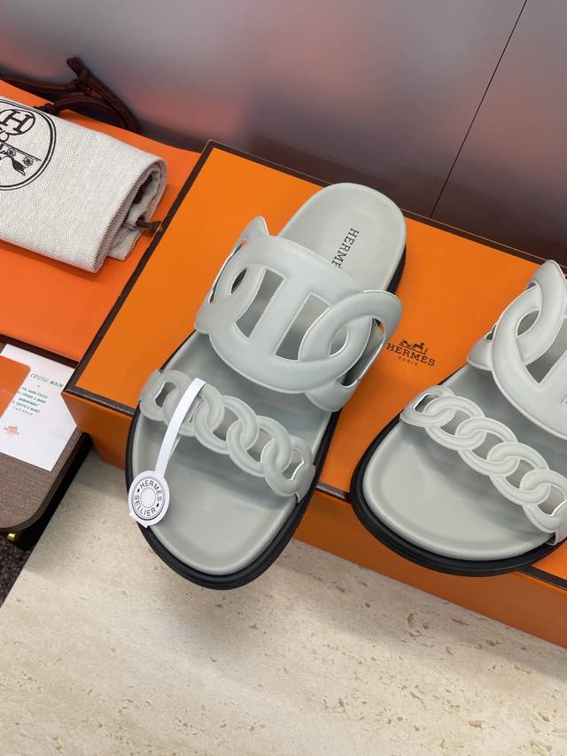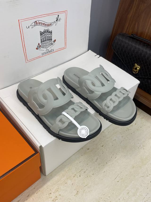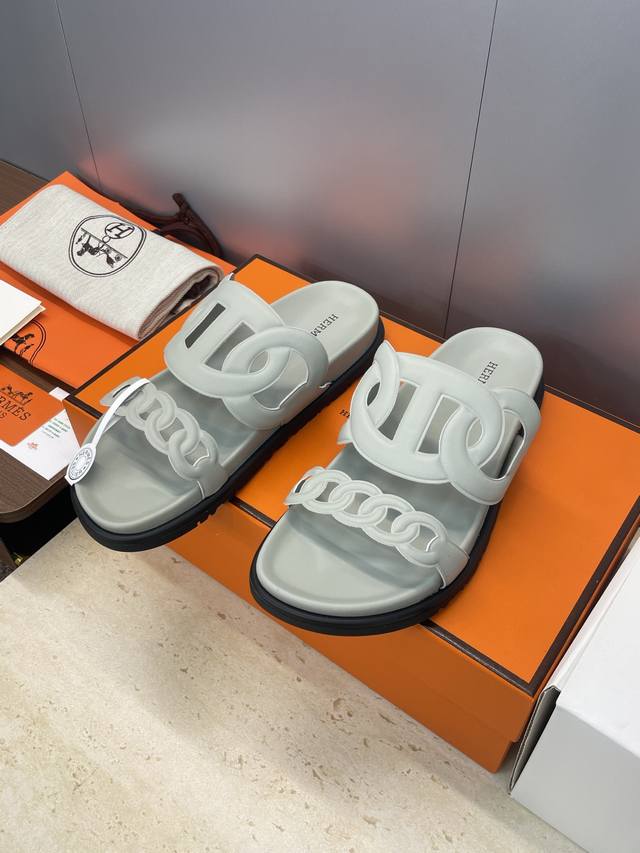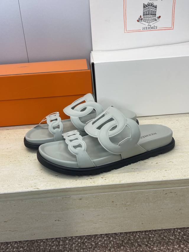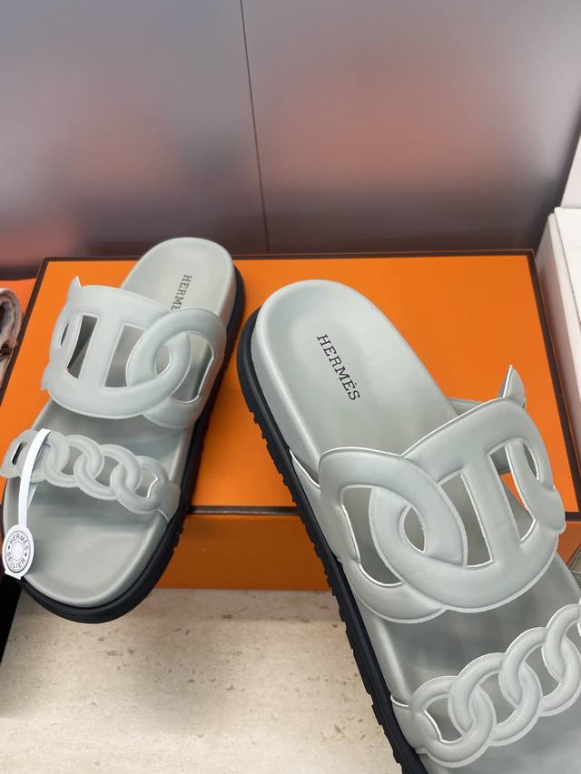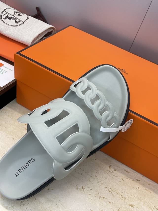 Factory direct price, comes with a full set of airplane boxes. Dongguan-made Hermes 2025 Spring/Summer New Extra Resort Style Color Block Slip-on Beach Shoes, Candy Color Flat Round Toe Open Toe Chaine D'Ancre Pig Nose Pattern Sandals. Material: Imported calfskin upper, imported suede, water-dyed cowhide lining, original molded outsole. Size: 35-43. Custom sizes 41, 42, 43 are non-refundable.