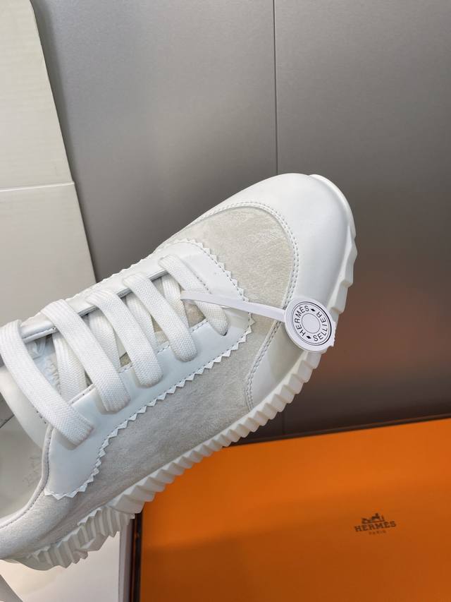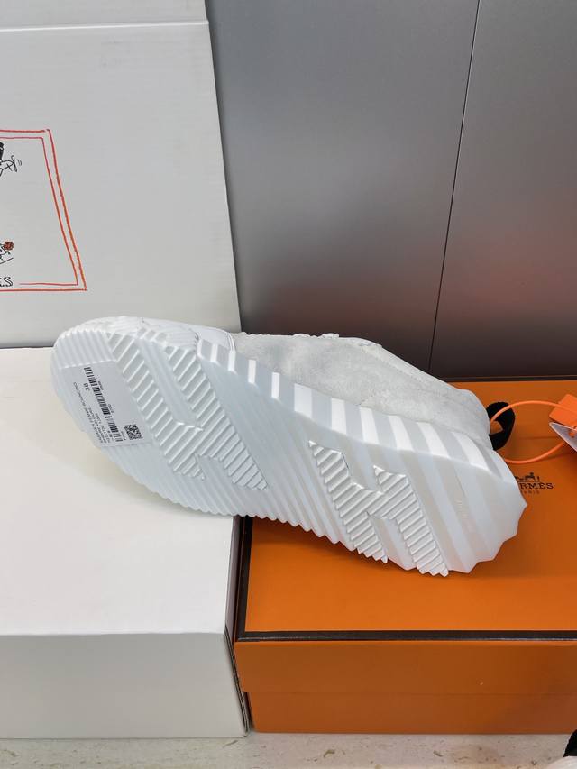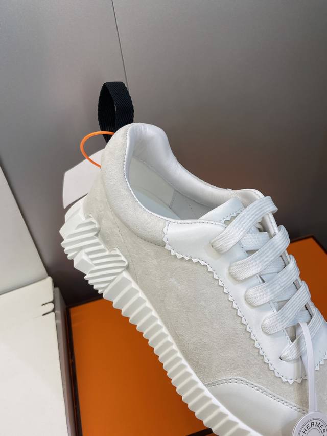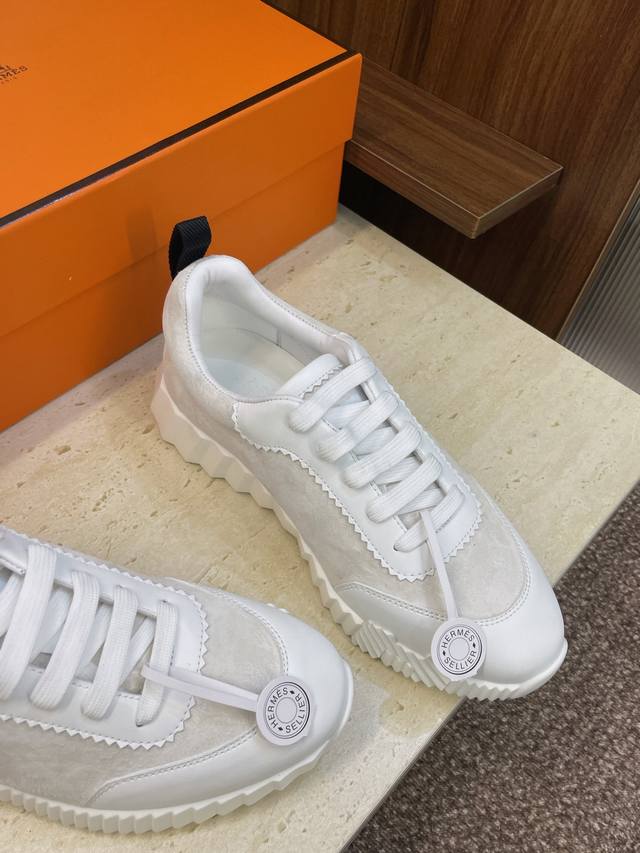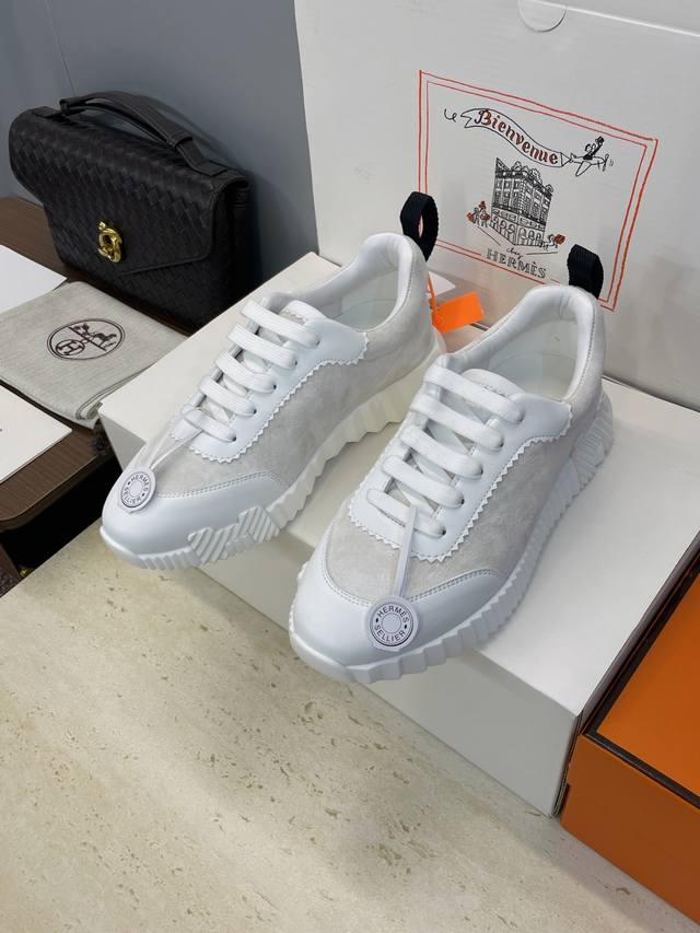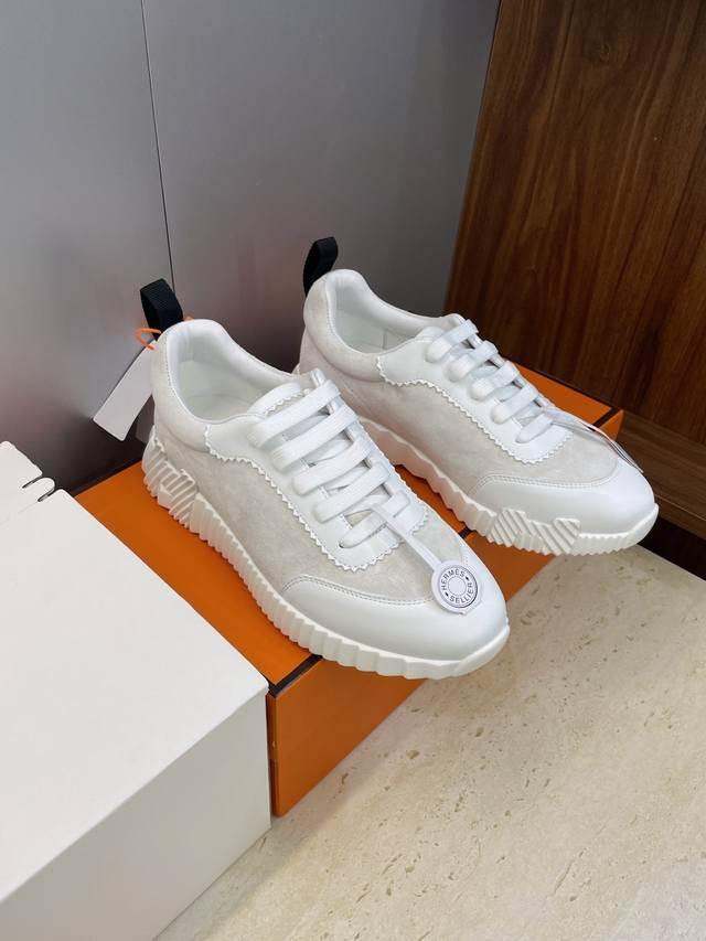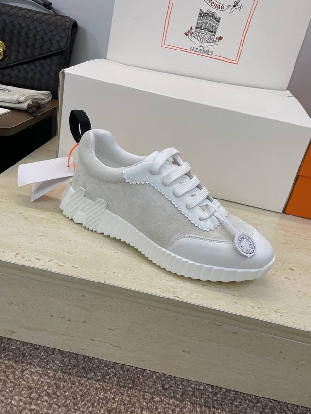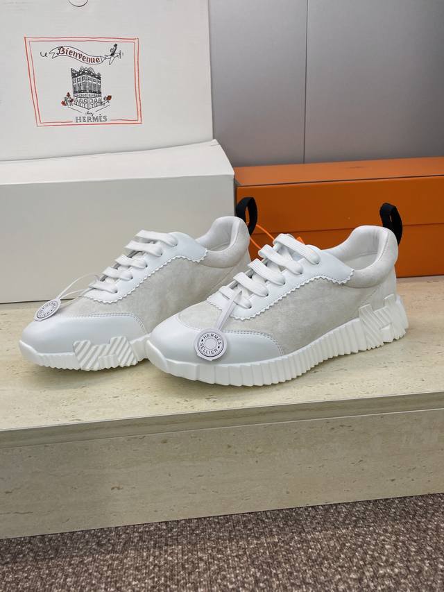 Factory direct price, comes with a full set of airplane boxes. Top-quality Hermes 2025 Fall/Winter classic couple's Bouuncing casual lace-up sneakers, H-brand thick-soled fashionable color-blocked running shoes. Material: Imported suede upper, imported calfskin + water-dyed sheepskin lining + original molded outsole. Sole thickness: 2.5cm. Size: Women's sizes 35-42, 40, 41, 42 (custom sizes, no returns/exchanges); Men's sizes 39-46, 39, 46 (custom sizes, no returns/exchanges).