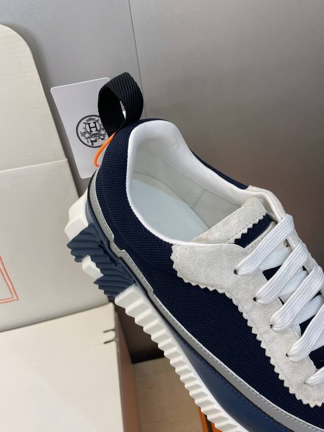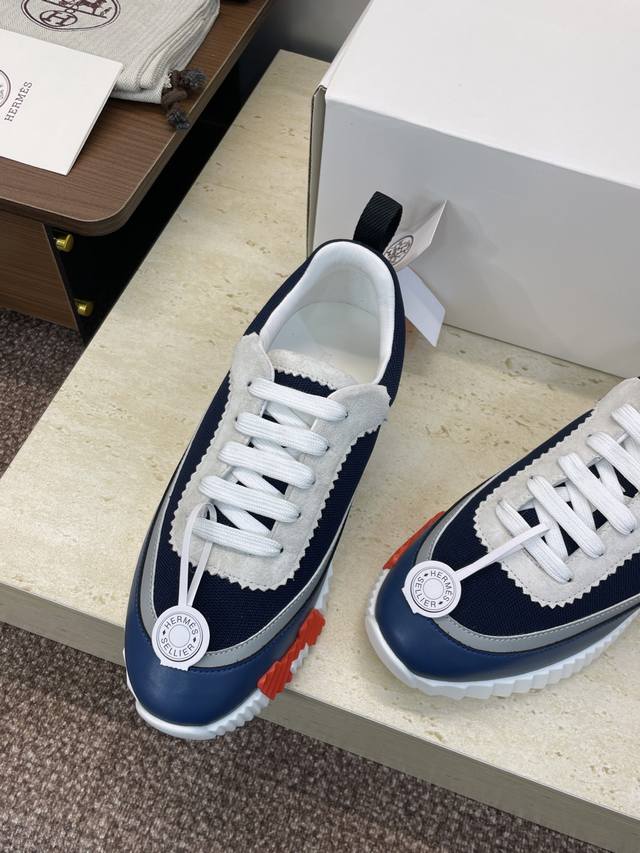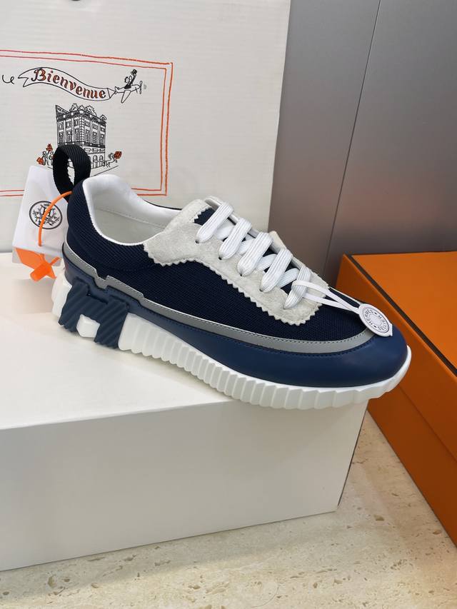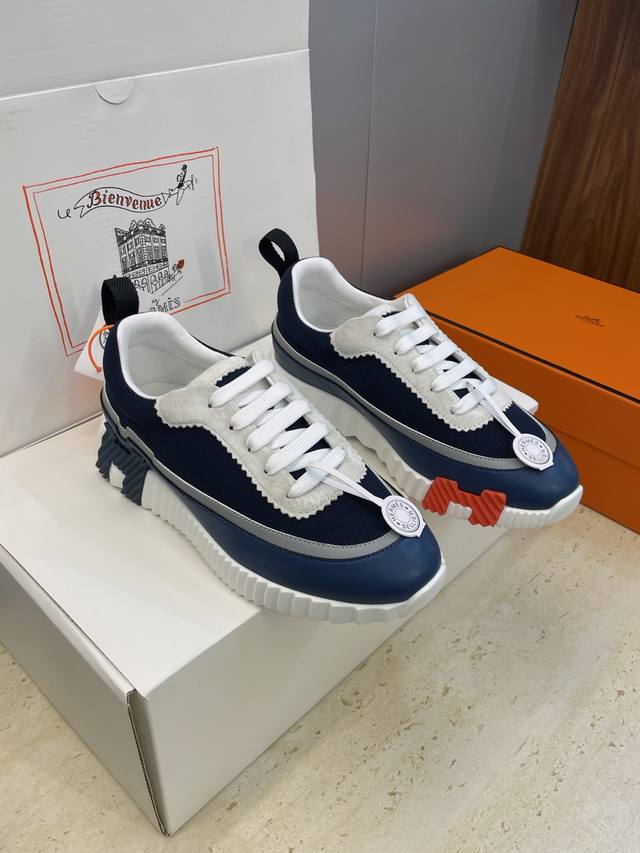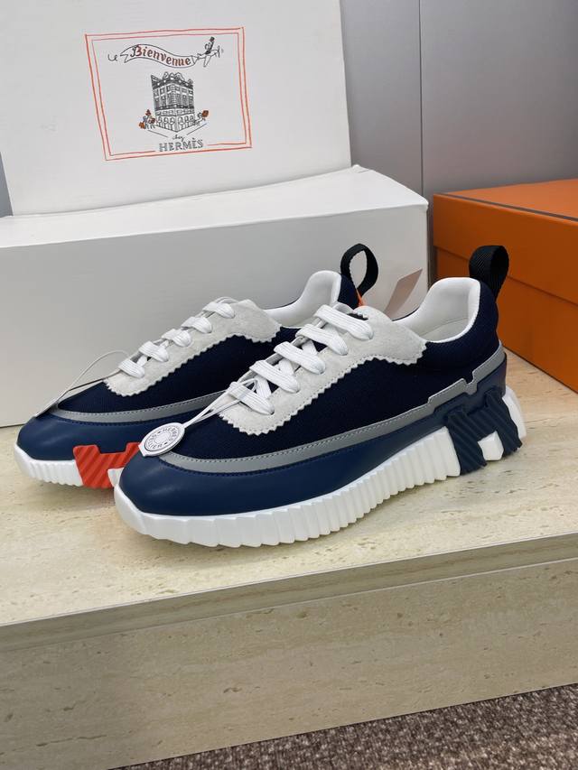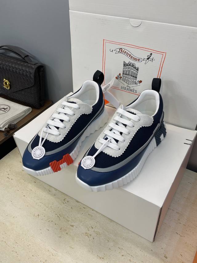 Factory direct price, comes with a full set of airplane boxes. Top-quality Hermes 2025 Autumn/Winter classic couple's Bouuncing casual lace-up versatile sneakers. High-quality Hermes platform running shoes with fashionable color blocking. Material: Imported environmentally friendly breathable mesh upper combined with imported suede calfskin + water-dyed sheepskin lining + original molded outsole. Sole thickness: 2.5cm. Size: Women's sizes 35-42, 40, 41, 42 (custom sizes, no returns/exchanges); Men's sizes 39-46, 39, 46 (custom sizes, no returns/exchanges).
