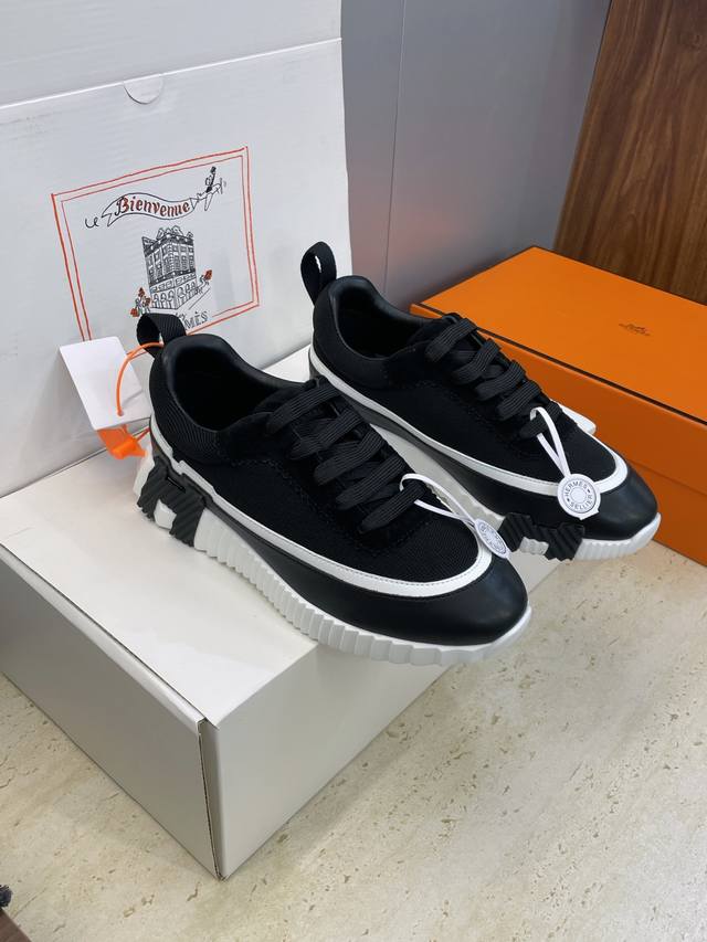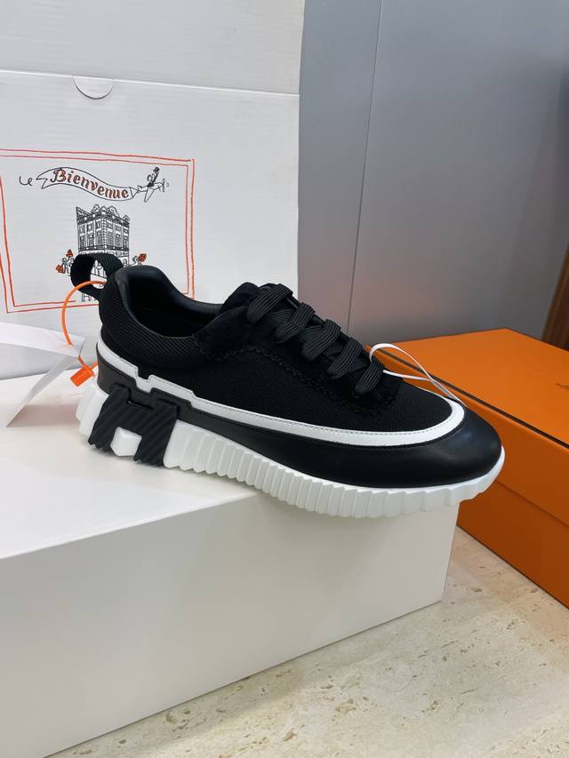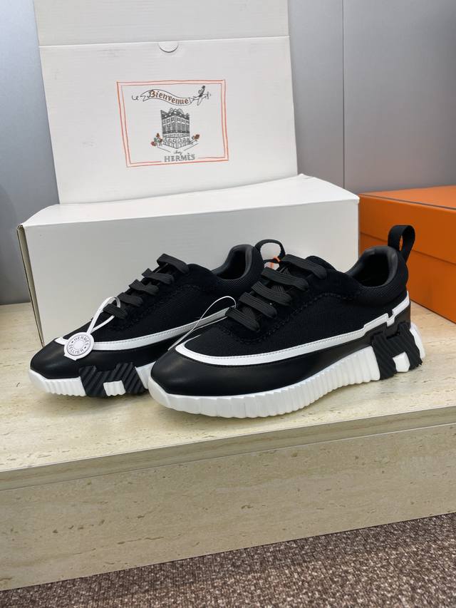 Factory direct price, comes with a full set of airplane boxes. Top-quality Hermes 2025 Autumn/Winter classic couple's Bouuncing casual lace-up versatile sneakers. High-quality Hermes platform running shoes with fashionable color blocking. Material: Imported environmentally friendly breathable mesh upper combined with imported suede calfskin + water-dyed sheepskin lining + original molded outsole. Sole thickness: 2.5cm. Size: Women's sizes 35-42, 40, 41, 42 (custom sizes, no returns/exchanges); Men's sizes 39-46, 39, 46 (custom sizes, no returns/exchanges).