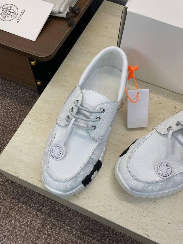 Factory direct price, comes with a full set of airplane boxes. Top-quality Hermes 2025 Fall/Winter classic couple's Bouuncing casual lace-up sneakers, H-brand thick-soled fashionable color-blocked running shoes. Material: Imported suede upper, imported calfskin + water-dyed sheepskin lining + original molded outsole. Sole thickness: 2.5cm. Size: Women's sizes 35-42, 40, 41, 42 (custom sizes, no returns/exchanges); Men's sizes 39-46, 39, 46 (custom sizes, no returns/exchanges).