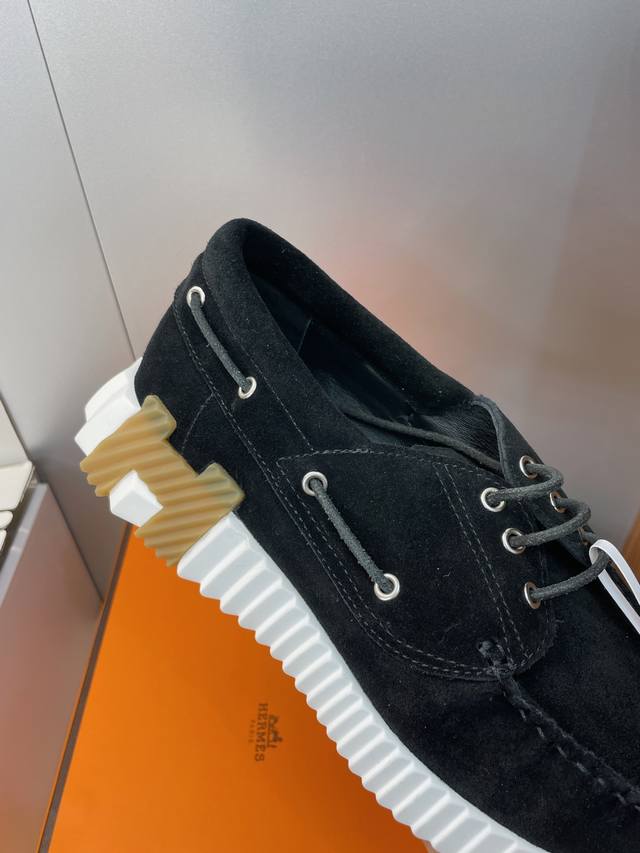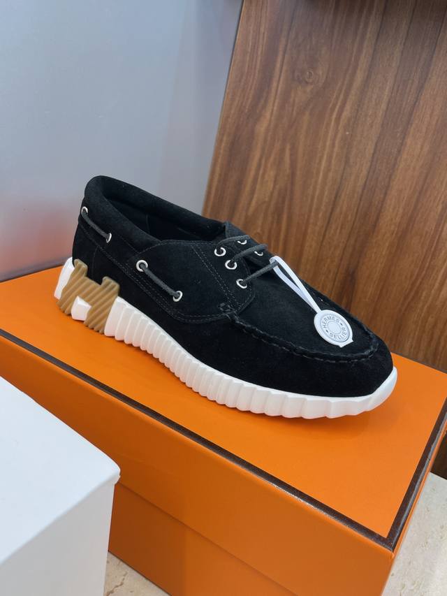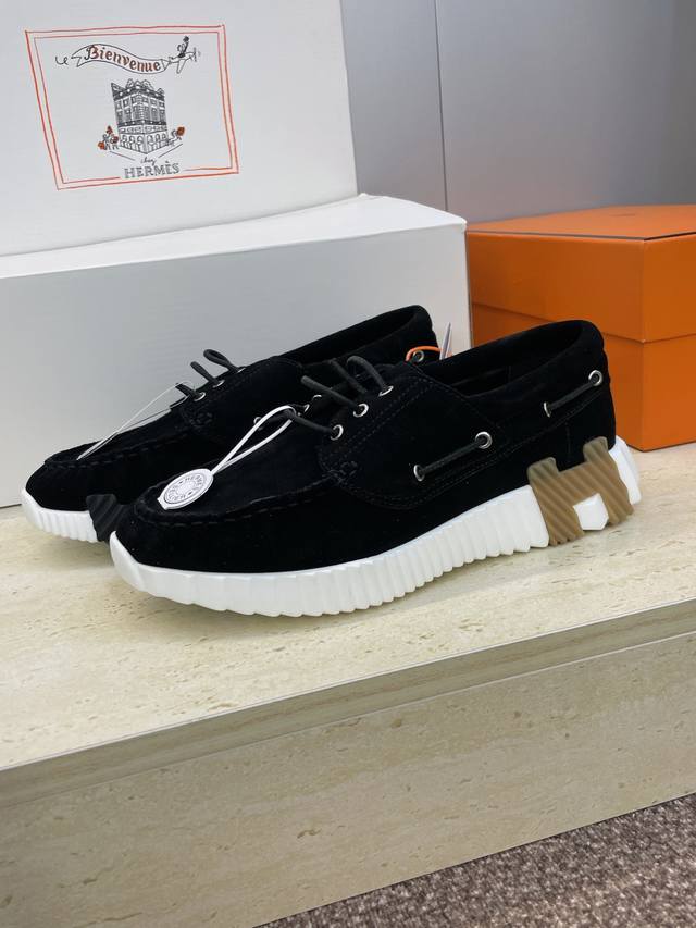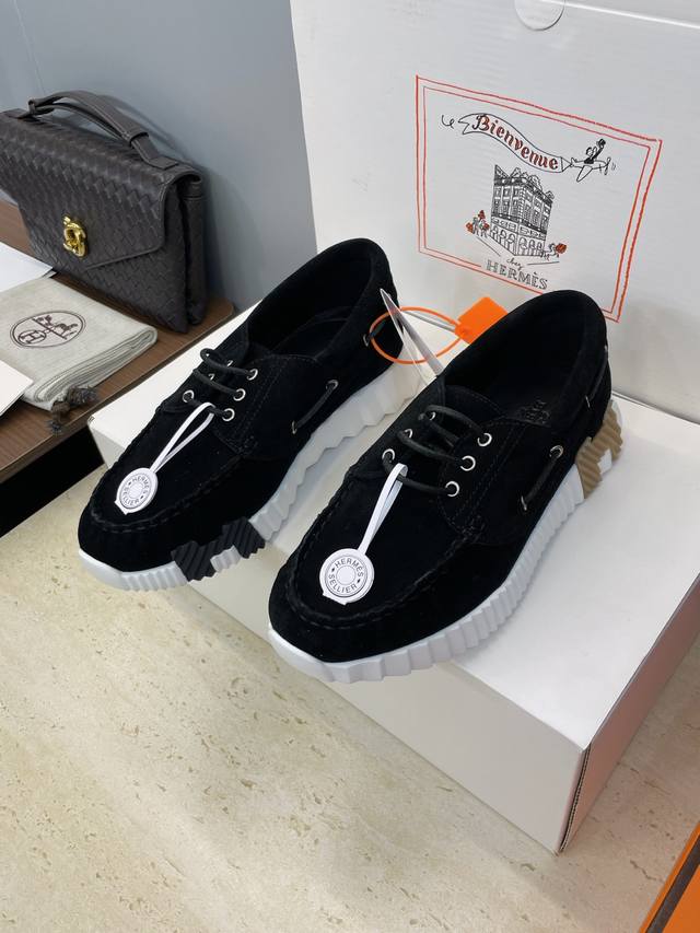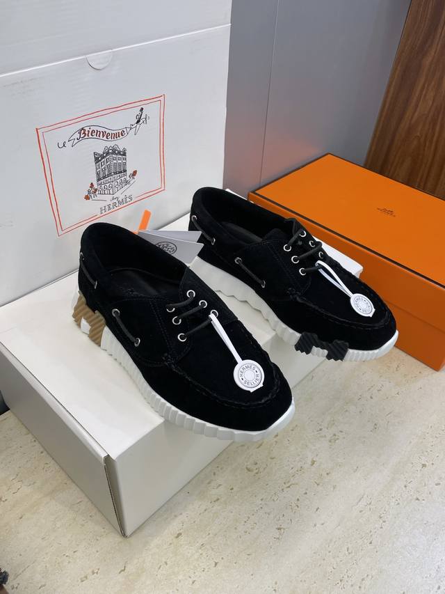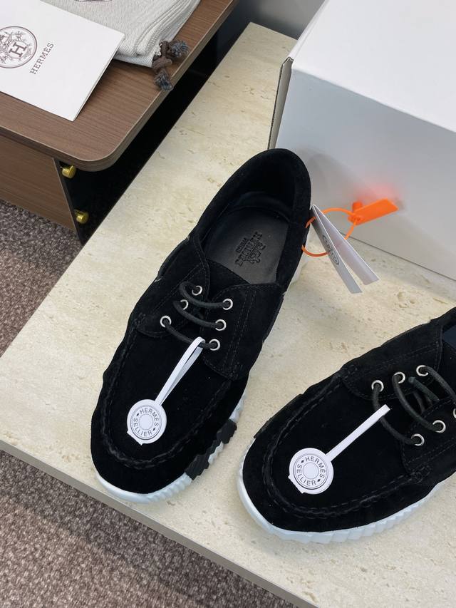 Factory direct price, comes with a full set of airplane boxes. Top-quality Hermes 2025 Fall/Winter classic couple's Bouuncing casual lace-up sneakers, H-brand thick-soled fashionable color-blocked running shoes. Material: Imported suede upper, imported calfskin + water-dyed sheepskin lining + original molded outsole. Sole thickness: 2.5cm. Size: Women's sizes 35-42, 40, 41, 42 (custom sizes, no returns/exchanges); Men's sizes 39-46, 39, 46 (custom sizes, no returns/exchanges).