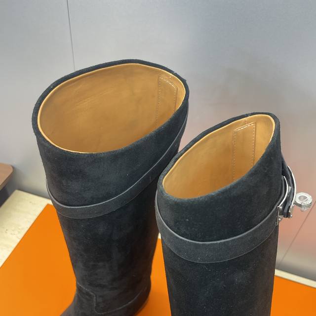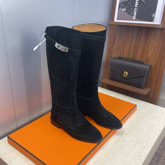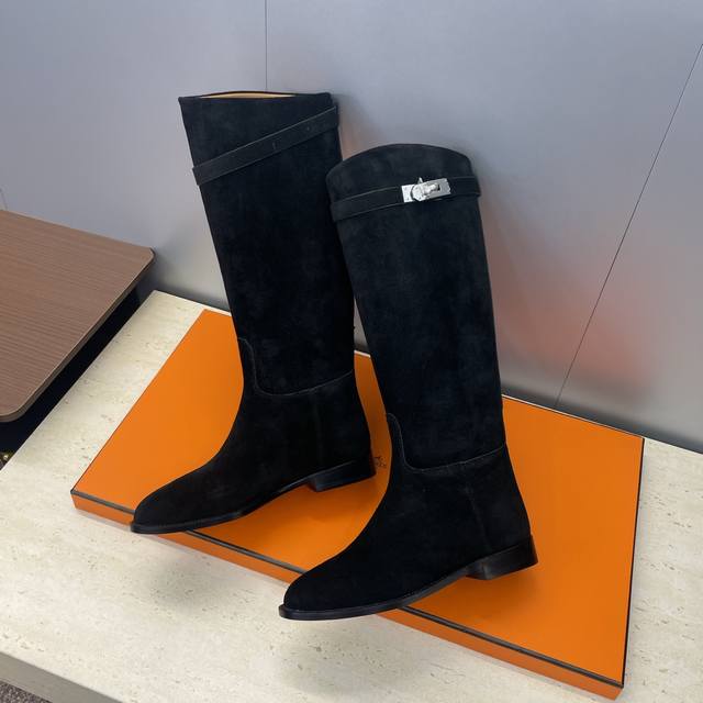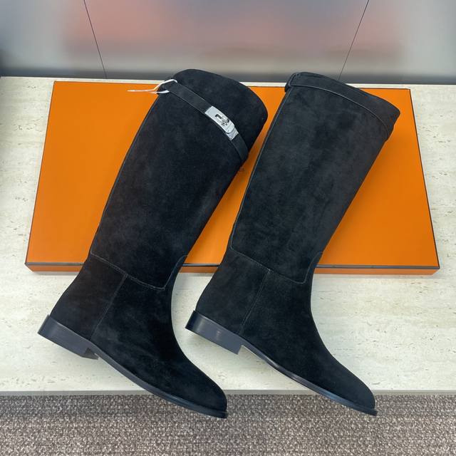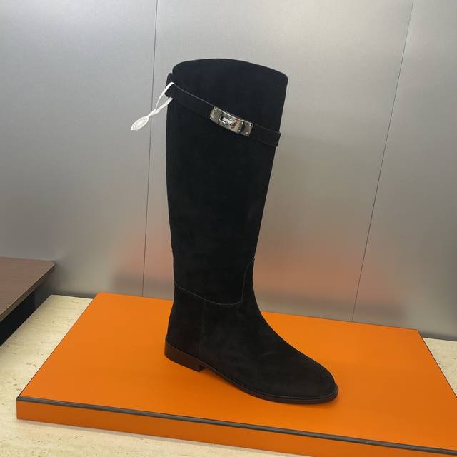 Factory direct price DDD Dongguan goods Hermes classic top-tier series Box Jumpling punk style Kelly buckle low heel high-top knee-high color-block women's long boots Hermes celebrity same style letter logo round toe slip-on motorcycle rider military boots DDD Material: Imported calfskin upper, imported suede + water-dyed cowhide lining + Italian genuine leather outsole DDD Heel height: 2.5Cm DDD Size: 34-43 34, 40, 41, 42, 43 Customized, no returns or exchanges DDD