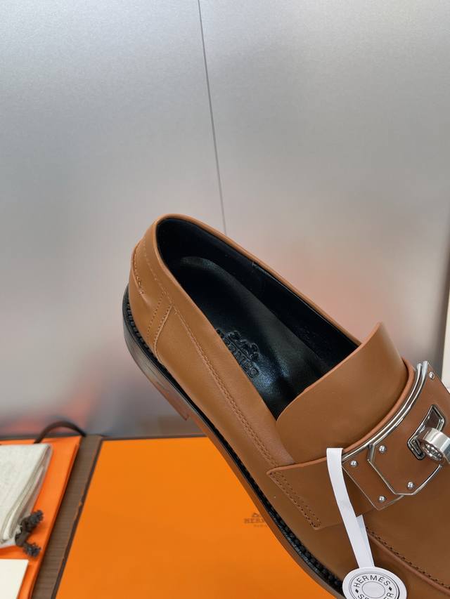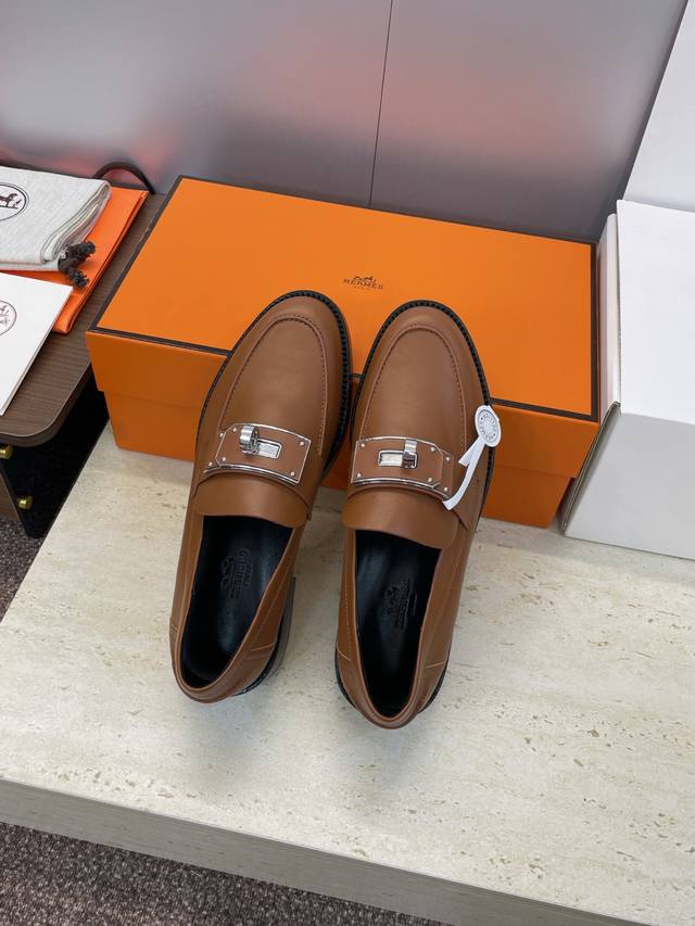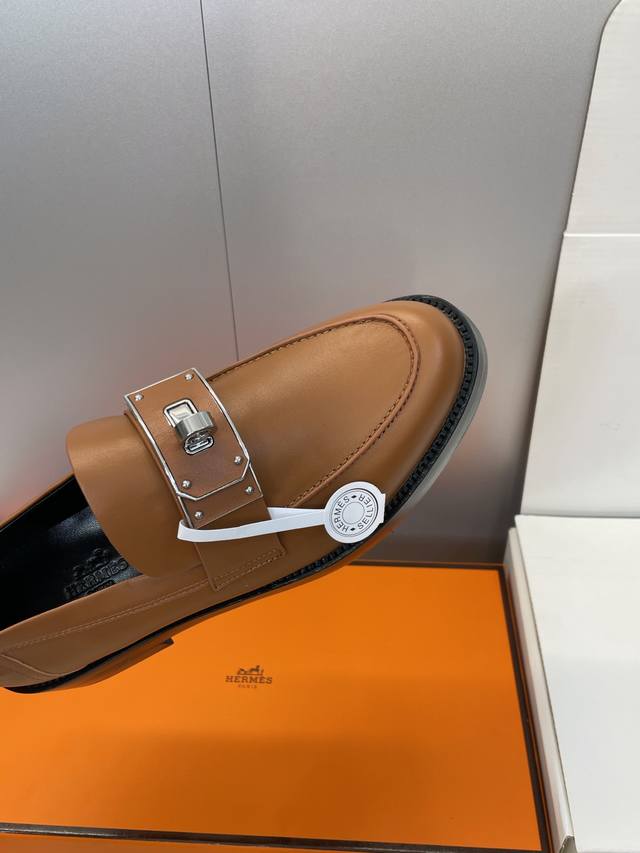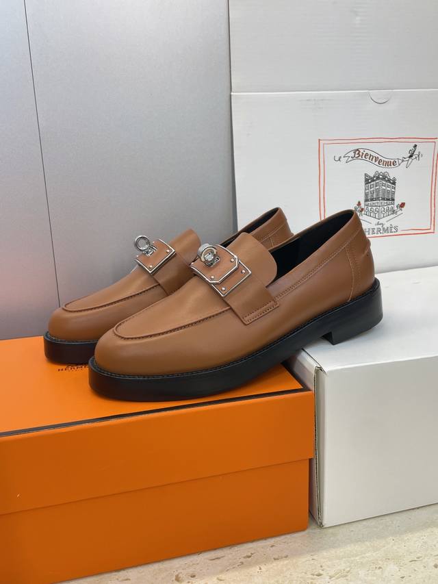 Factory direct price. Dongguan-made Hermes 2025 Autumn/Winter new Kelly buckle Loafers, color-blocked low-heeled women's shoes, thick-soled round toe, fashionable and casual. Material: Imported calfskin upper + water-dyed cowhide lining + original mold combination outsole. Heel height: 2.5cm. Size: 34-43 (34, 40, 41, 42, 43 - custom sizes, no returns or exchanges).