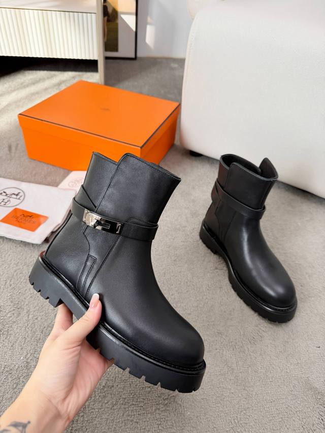 Factory direct wholesale of top-grain cowhide, cowhide lining, in stock. Original replica of the hot-selling Hermes Kelly buckle riding boots, 2025 classic upgraded version, all-cowhide upper. Wearing them makes you a queen. The upright boot shaft and irresistible last make them a classic among classics. The Hermes Kelly bag has been a fashion icon for generations, and these riding boots complement it perfectly. They sell out instantly every time they're released. The originator of riding boots in the fashion world. Sizes 35-41, colors as pictured. Packaging includes: original Hermes box, certificate of conformity, and cloth bag.