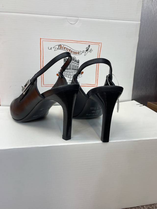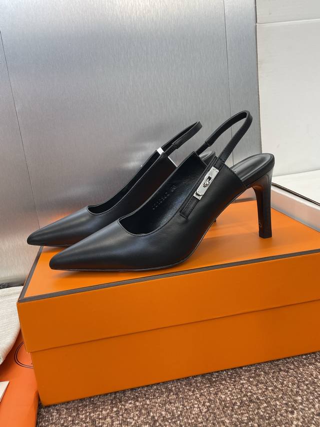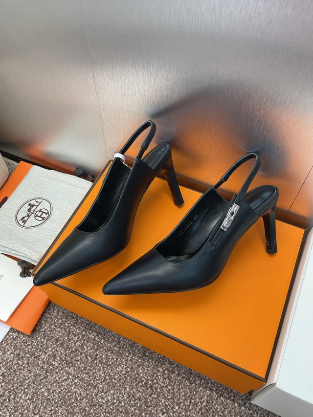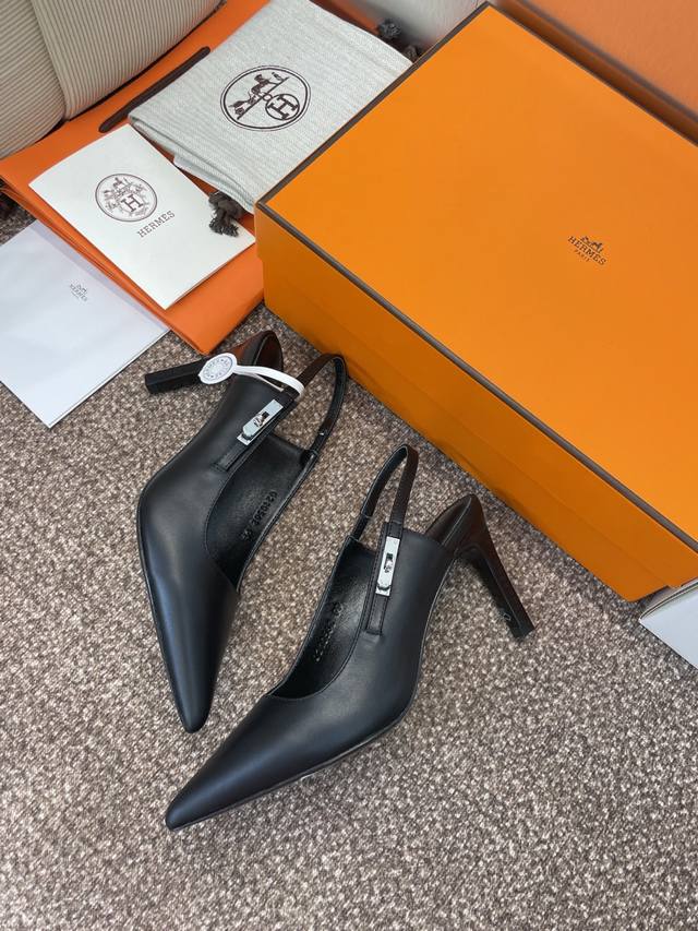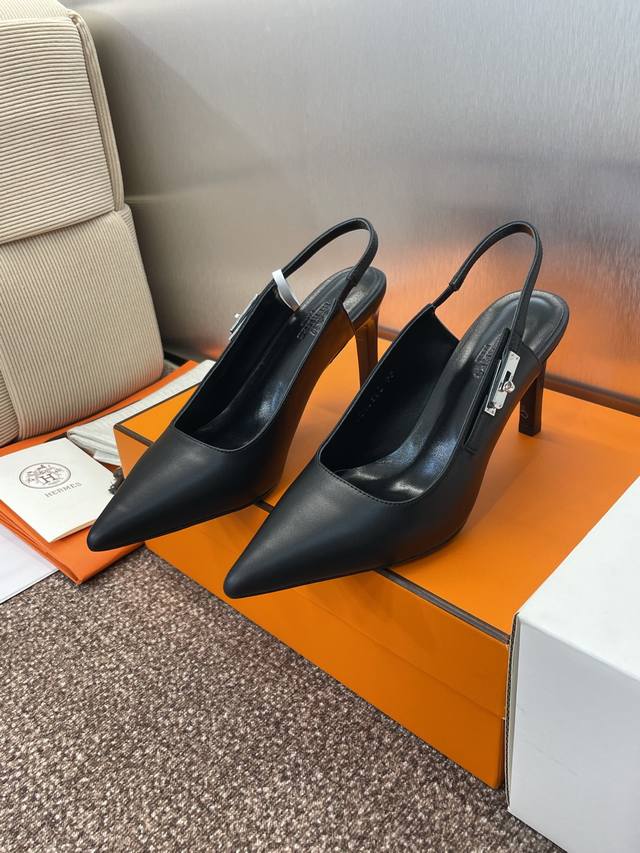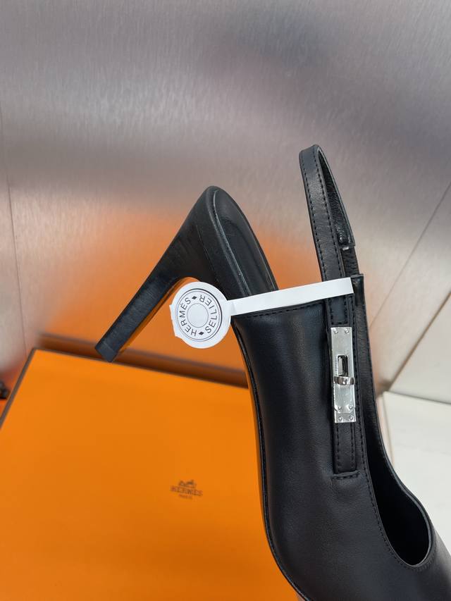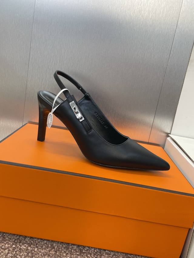 Dongguan goods purchasing Hermes 2025 Spring and Summer new Lover high-heeled color-blocked women's shoes H classic Kelly hardware belt low-heeled pointed back sandals