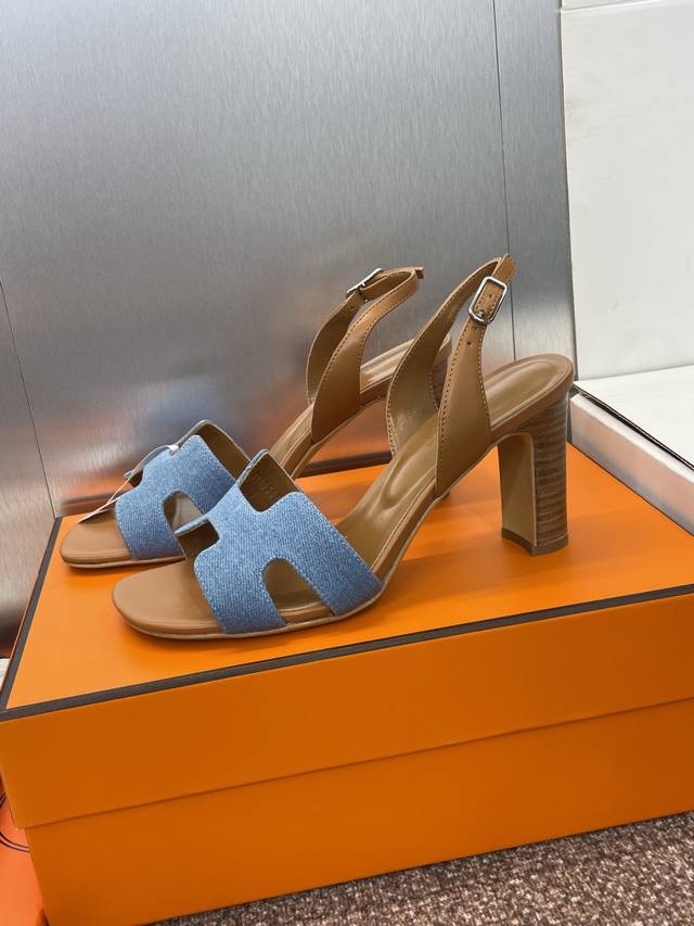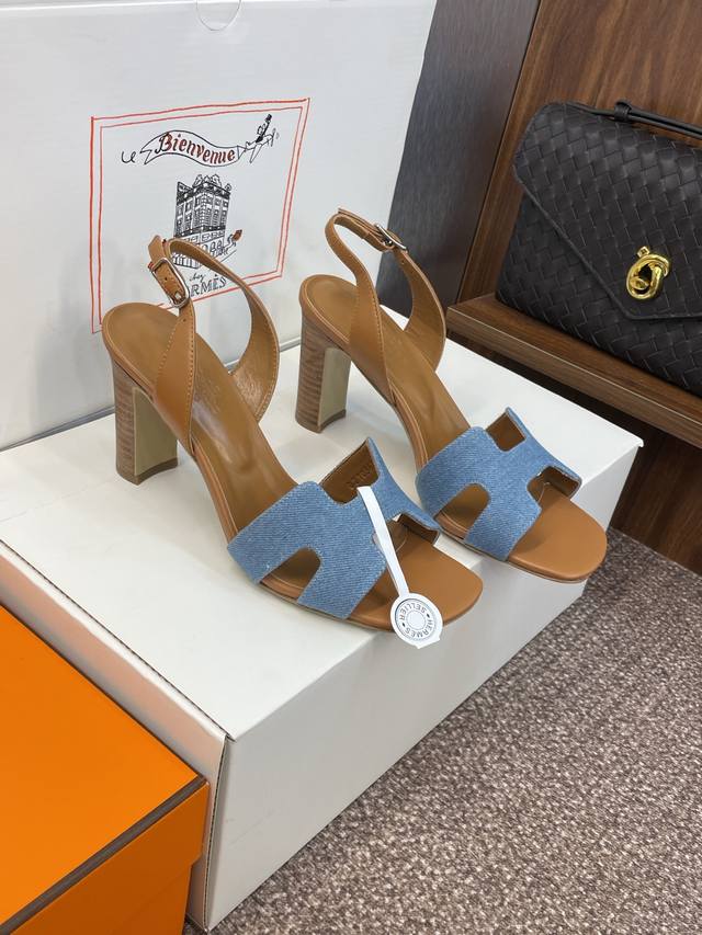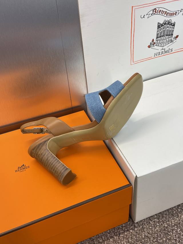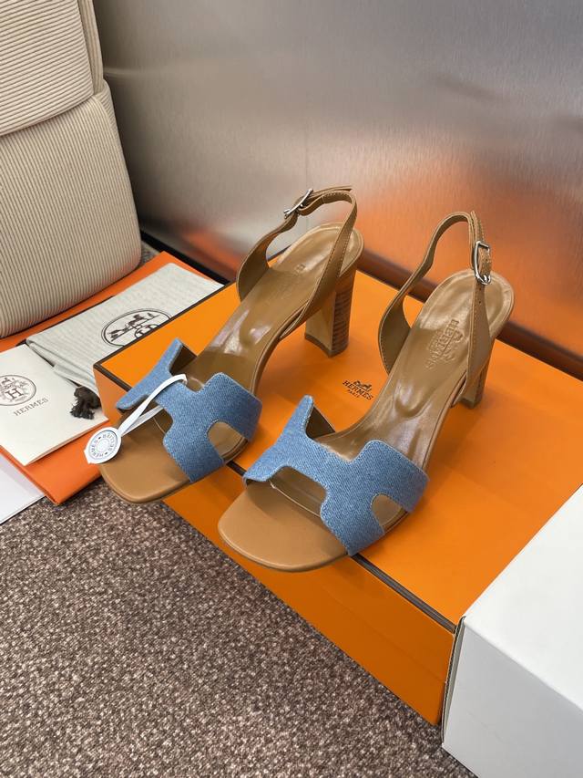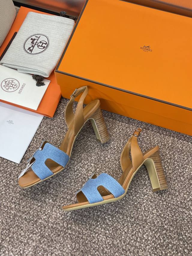 Dongguan-made purchasing-level Hermes Spring and Summer classic Joy thick-heeled color-blocked flip-flops for women H-family high-heeled round-toed open-toed jelly-colored slingback sandals